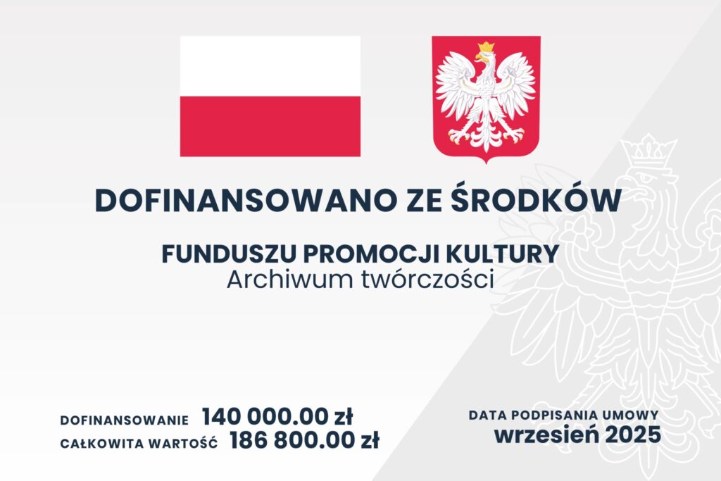 Dofinansowano ze środków Ministra Kultury i Dziedzictwa Narodowego pochodzących z Funduszu Promocji Kultury – państwowego funduszu celowego