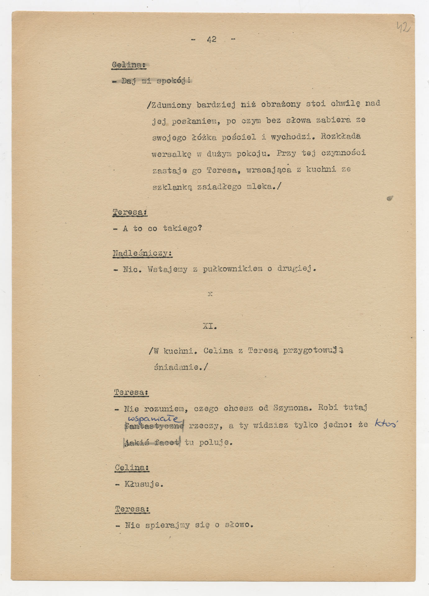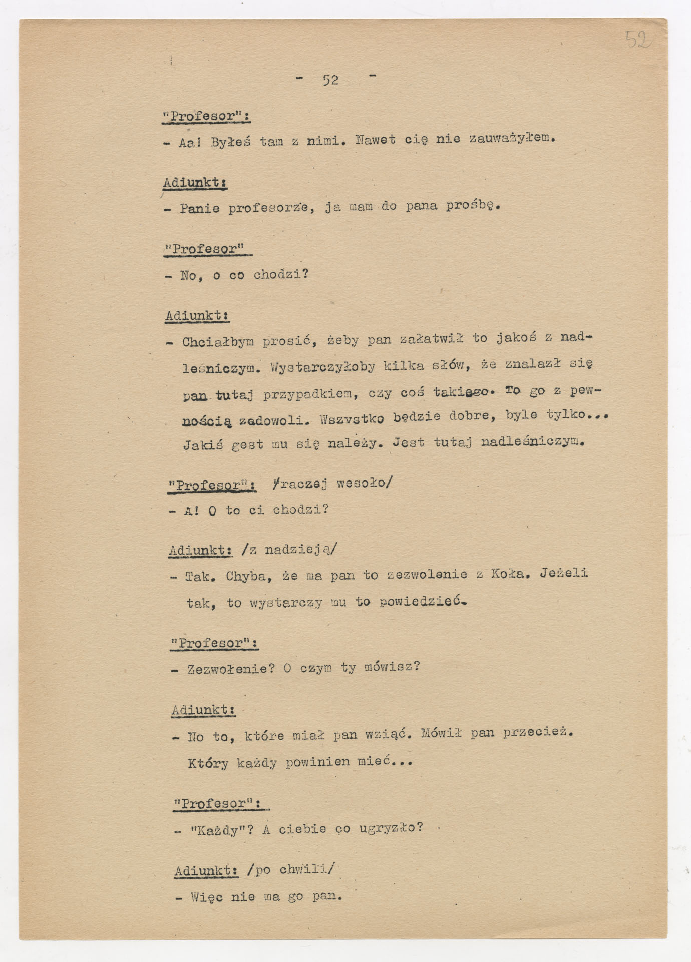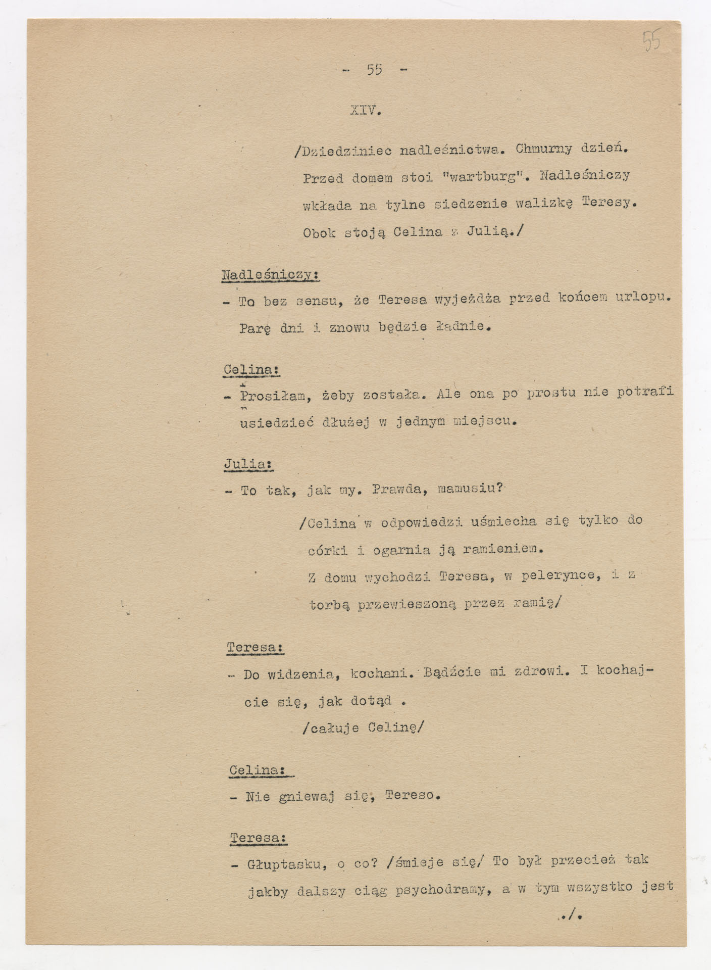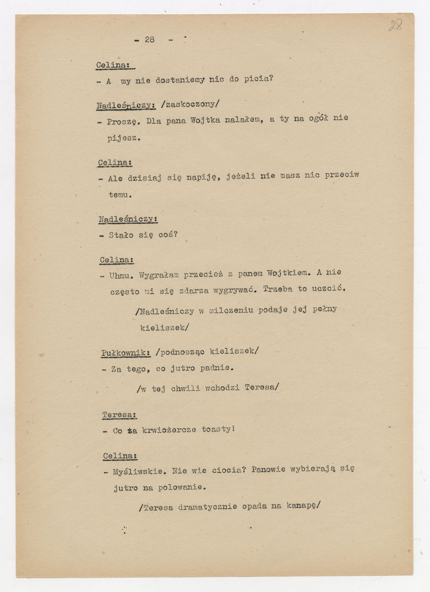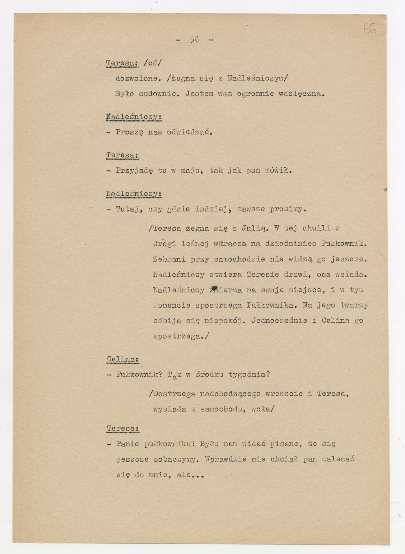 Maszynopis z adaptacją teatralną tekstu Zofii Posmysz “Wnyki” do teatru telewizji Krzysztofa Kieślowskiego “Wnyki”. Dokument ma postać wielostronicowego dialogowego scenariusza z didaskaliami, opisem miejsc, ruchu postaci, dźwięków i rekwizytów. Zawiera fragmenty w różnych redakcyjnych wersjach, miejscami z poprawkami, skreśleniami i dopisanymi wariantami kwestii.