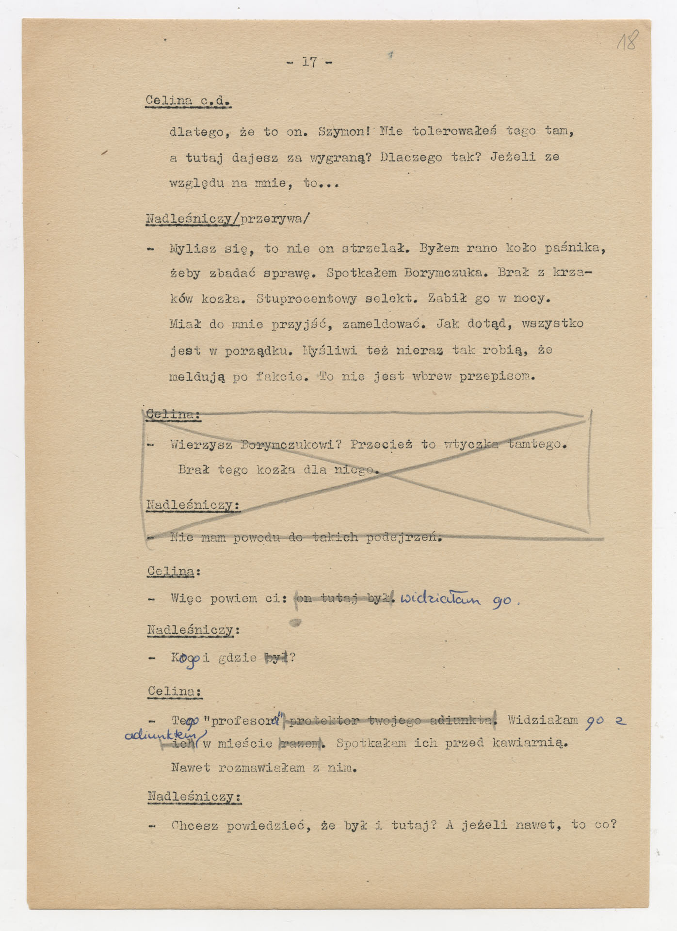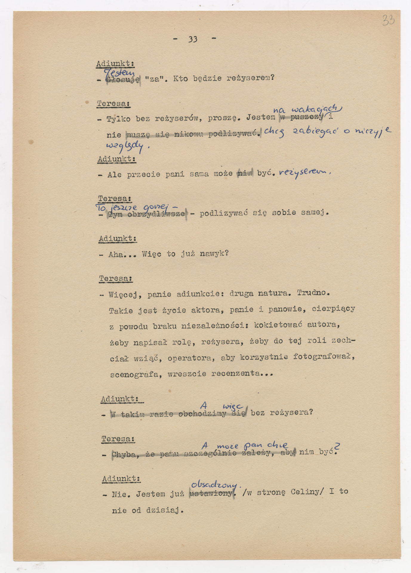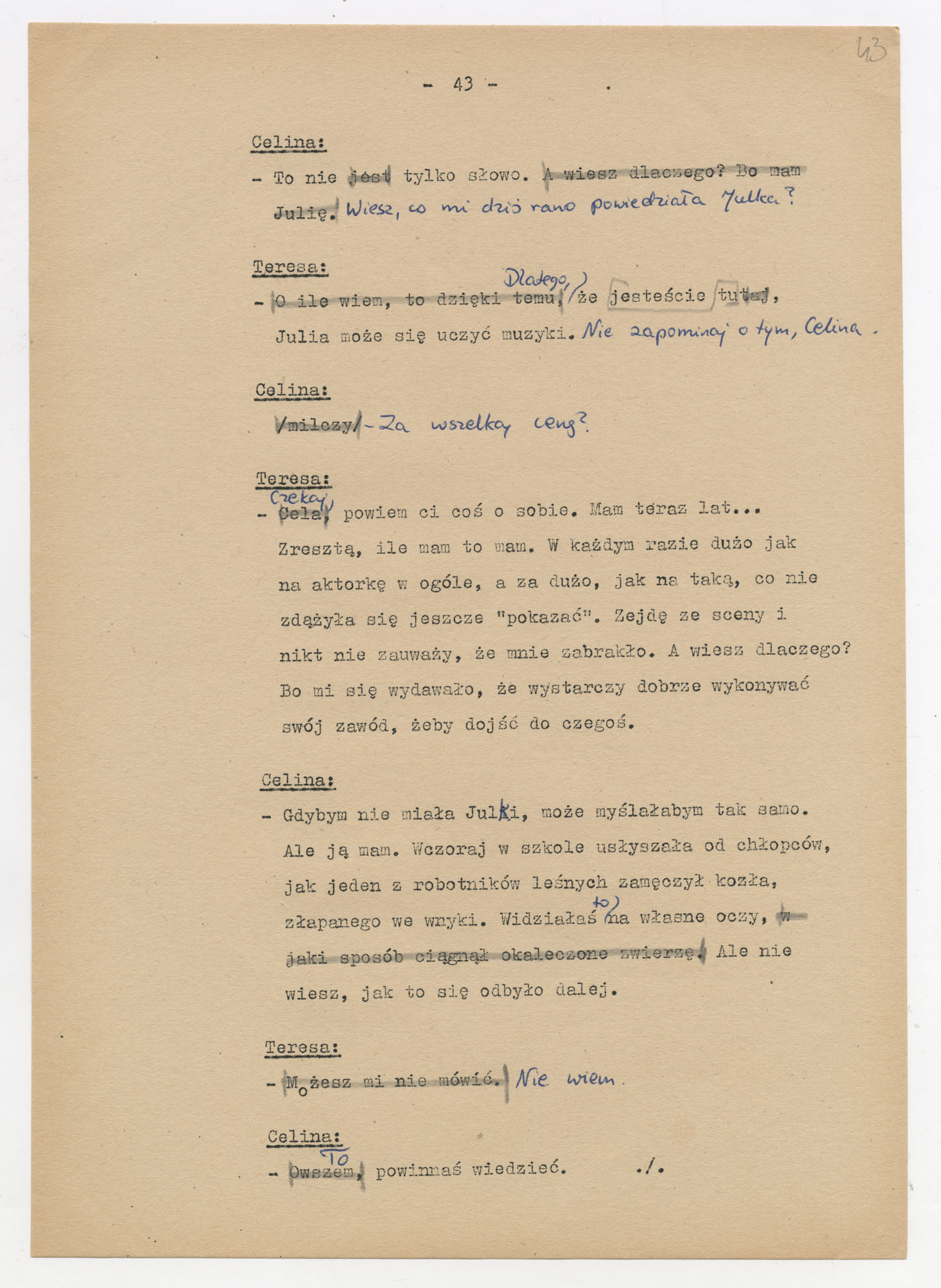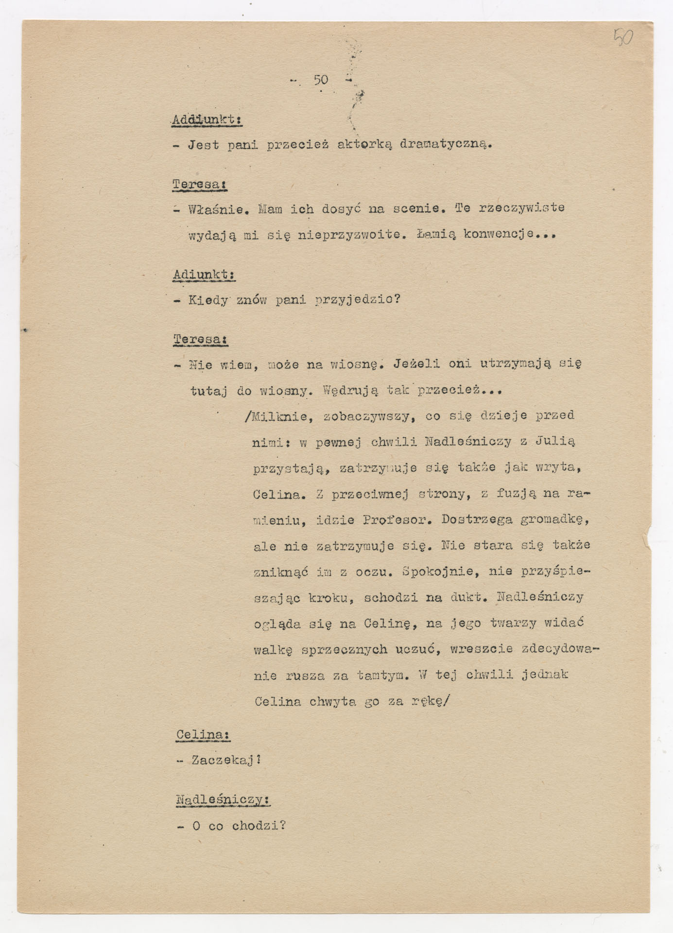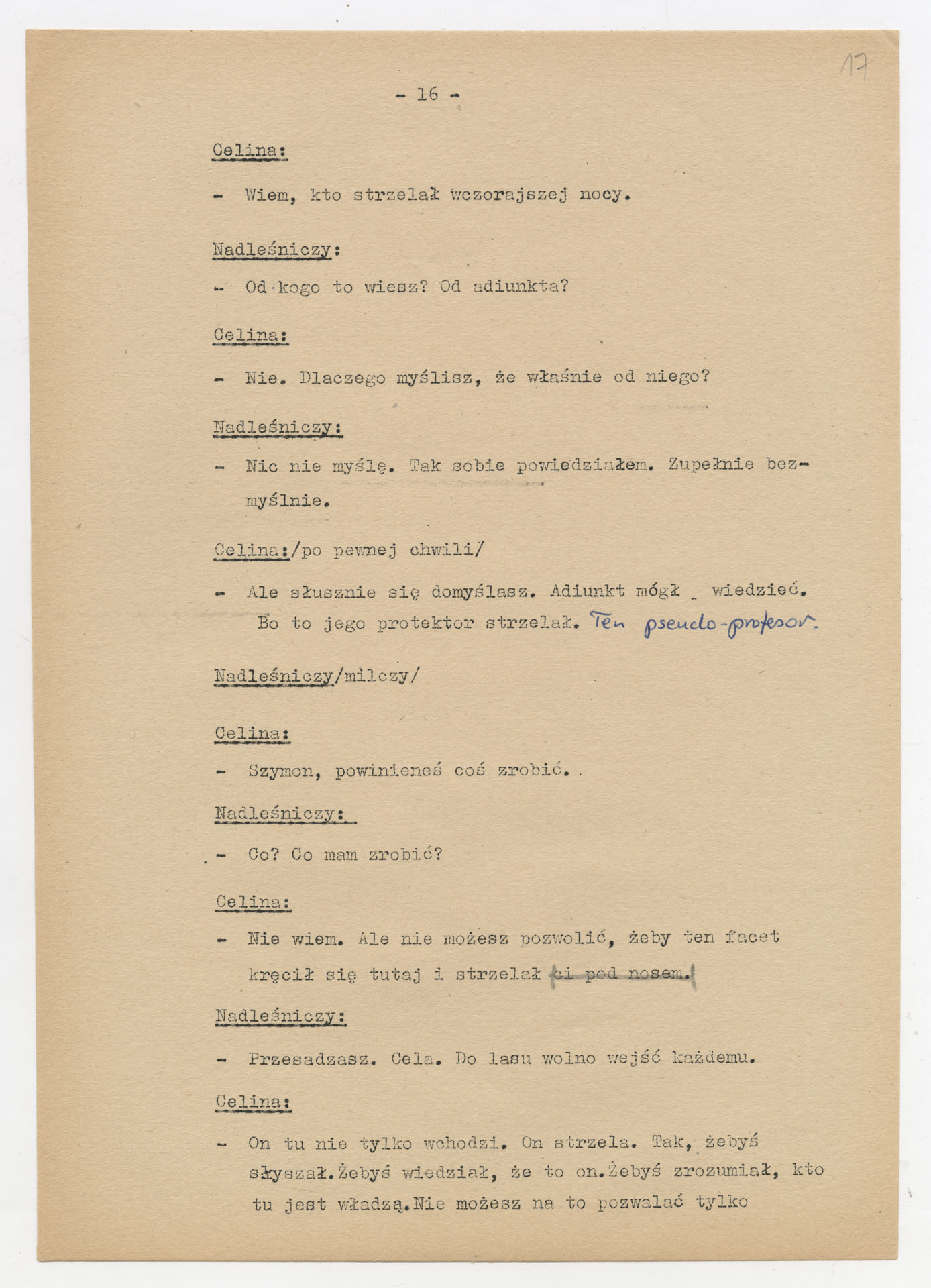Maszynopis z adaptacją teatralną tekstu Zofii Posmysz “Wnyki” do teatru telewizji Krzysztofa Kieślowskiego “Wnyki”. Dokument ma postać wielostronicowego dialogowego scenariusza z didaskaliami, opisem miejsc, ruchu postaci, dźwięków i rekwizytów. Zawiera fragmenty w różnych redakcyjnych wersjach, miejscami z poprawkami, skreśleniami i dopisanymi wariantami kwestii.