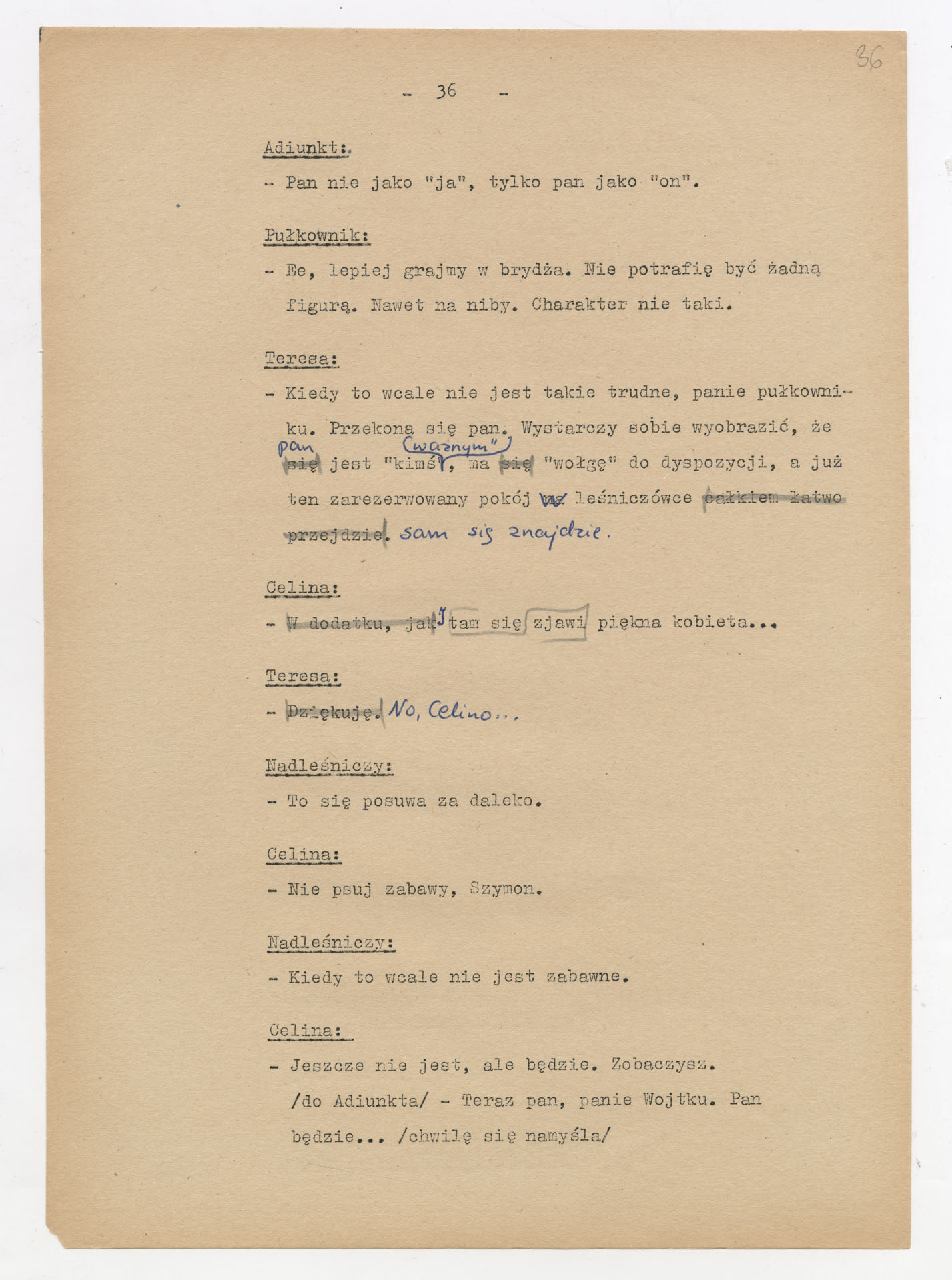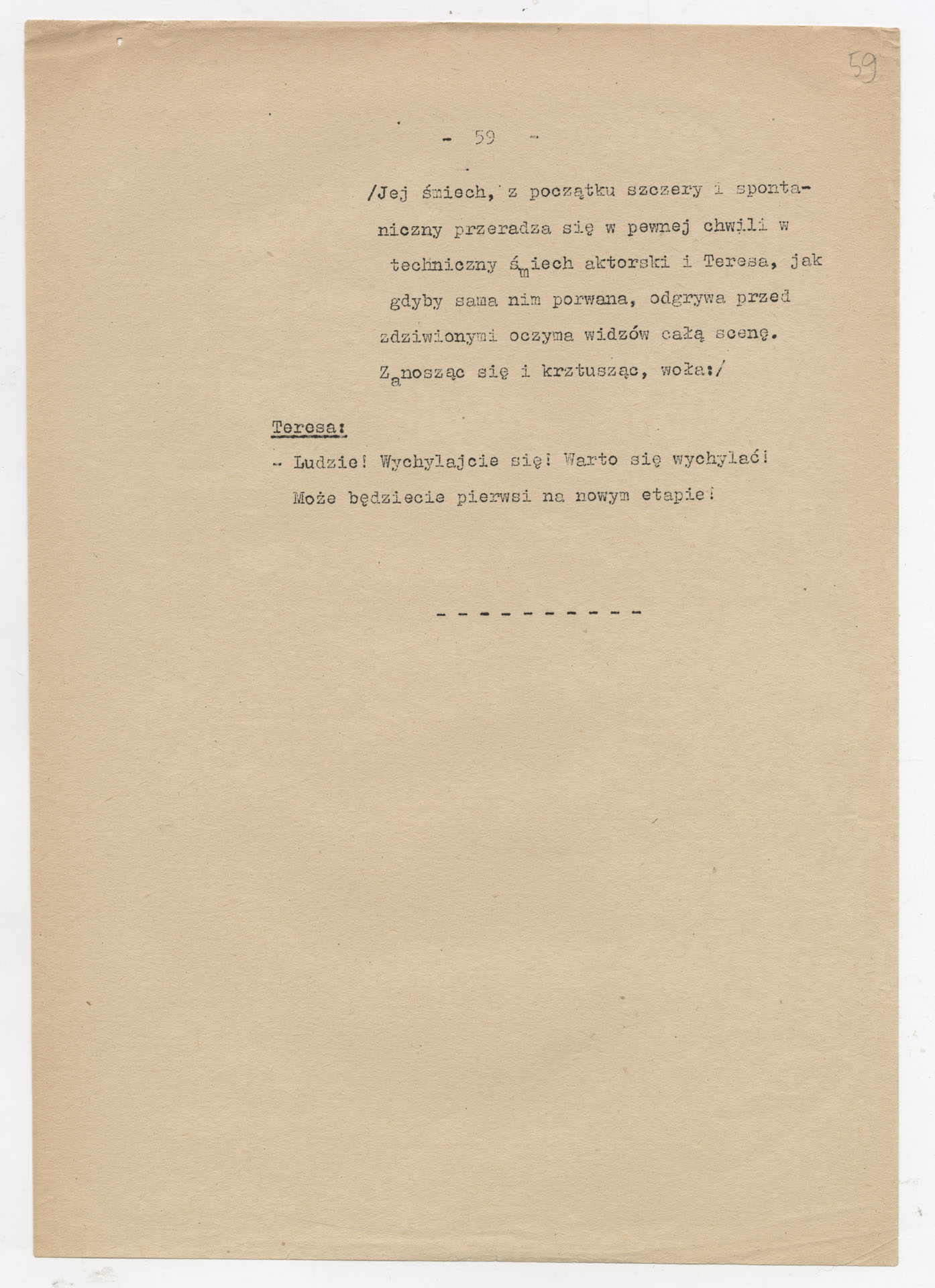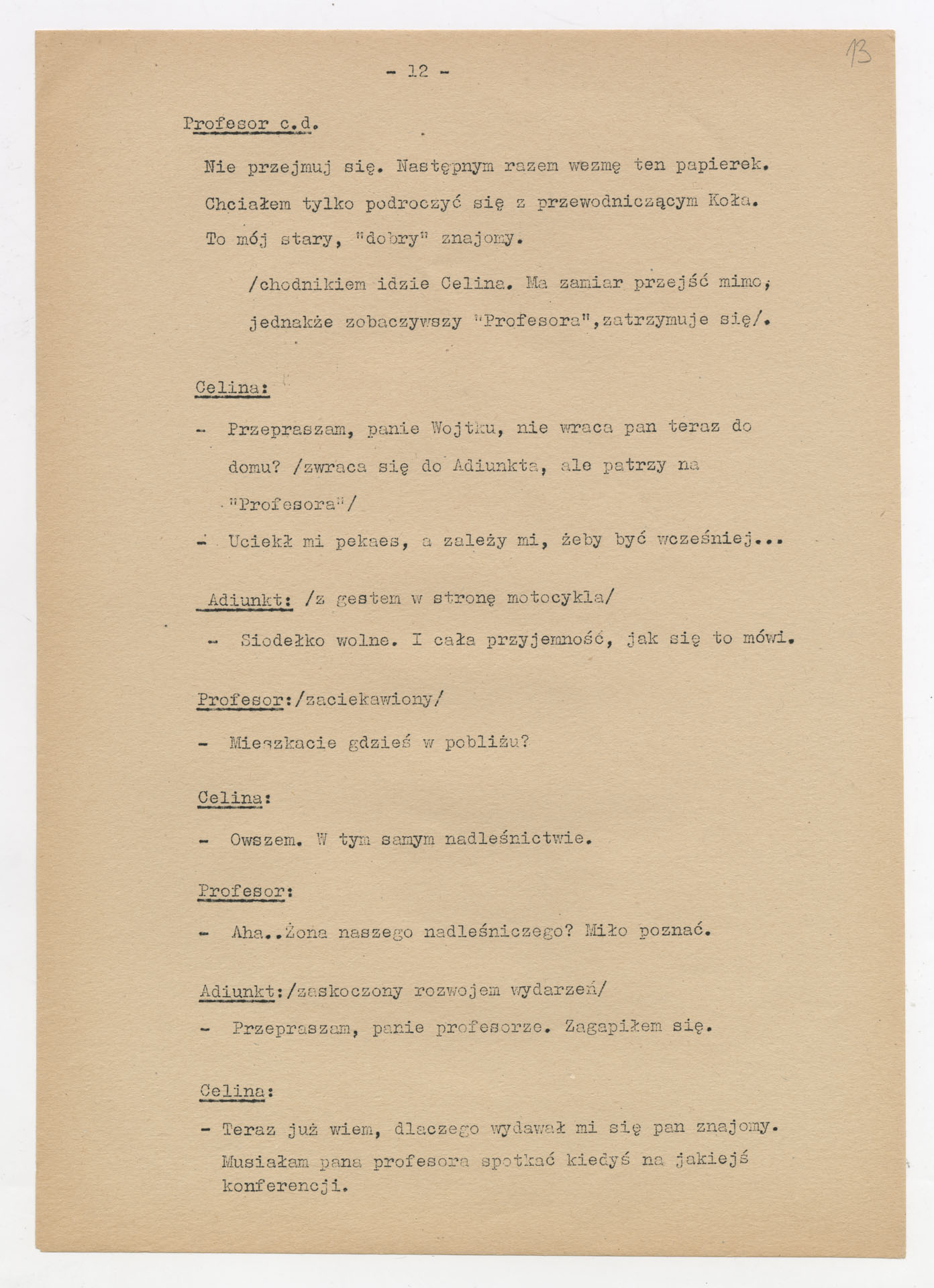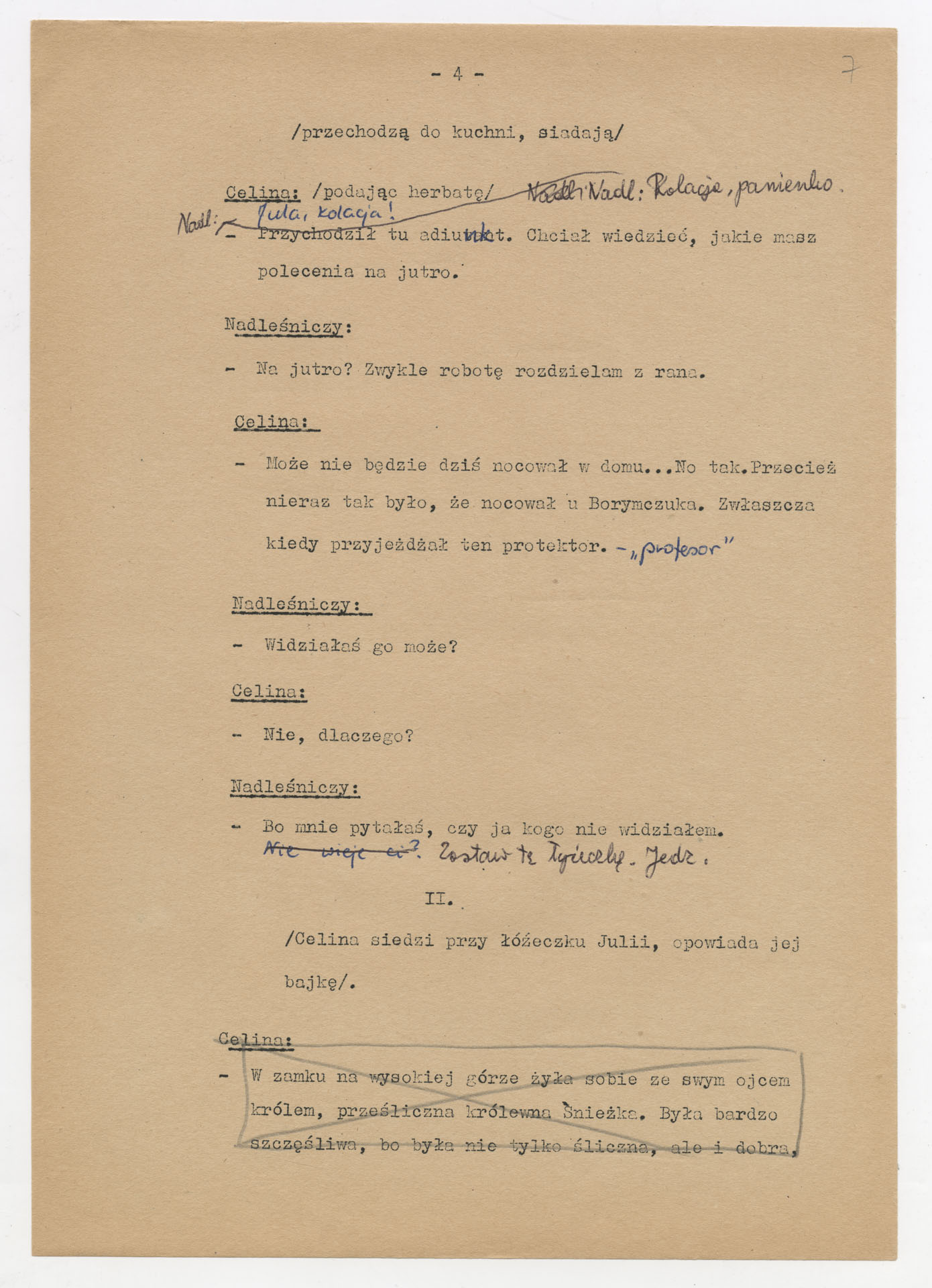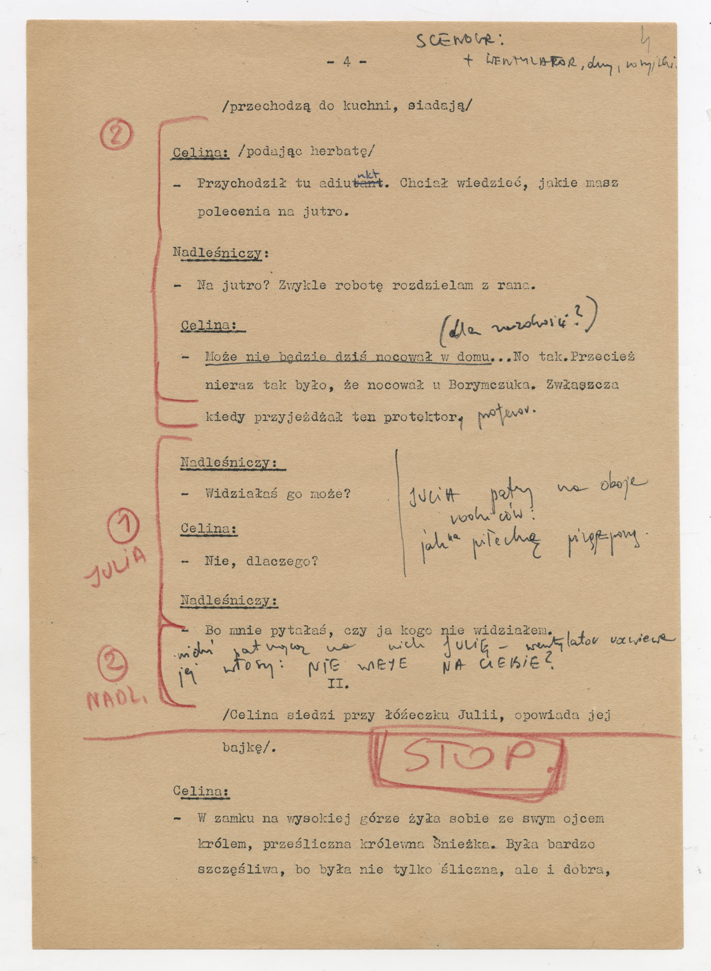 Maszynopis z adaptacją teatralną tekstu Zofii Posmysz “Wnyki” do teatru telewizji Krzysztofa Kieślowskiego “Wnyki”. Dokument ma postać wielostronicowego dialogowego scenariusza z didaskaliami, opisem miejsc, ruchu postaci, dźwięków i rekwizytów. Zawiera fragmenty w różnych redakcyjnych wersjach, miejscami z poprawkami, skreśleniami i dopisanymi wariantami kwestii.