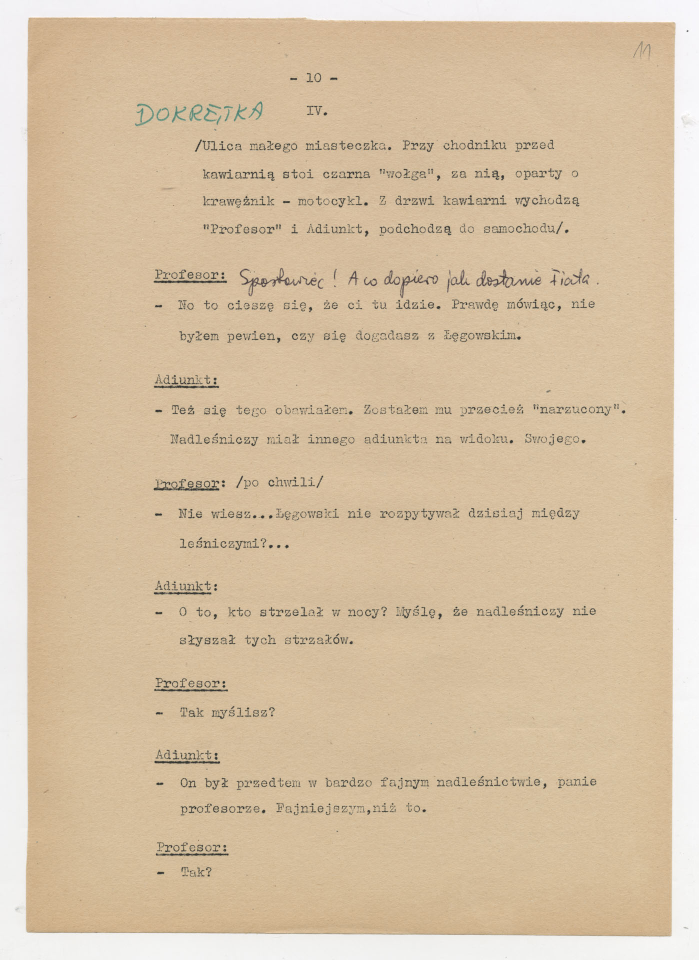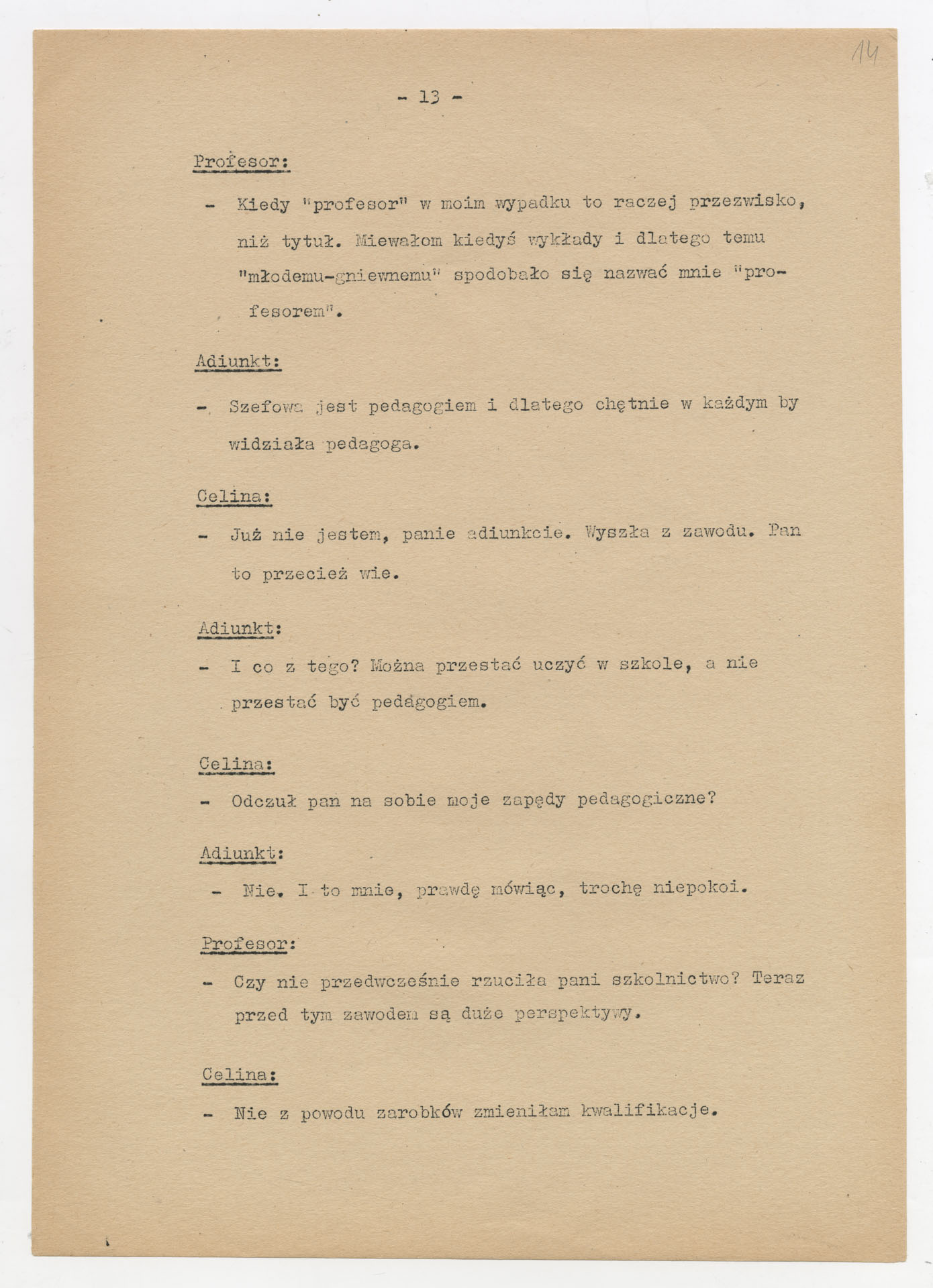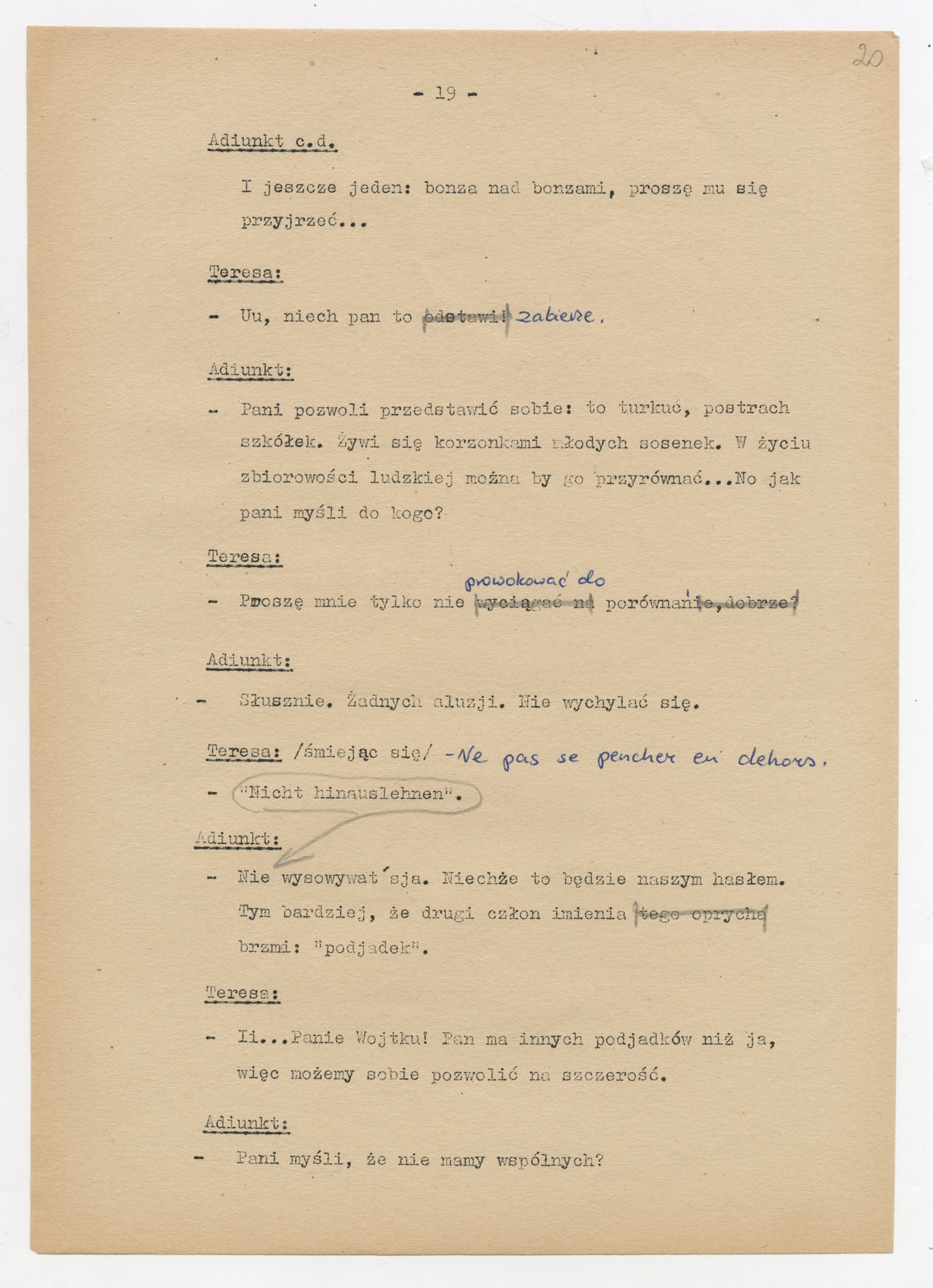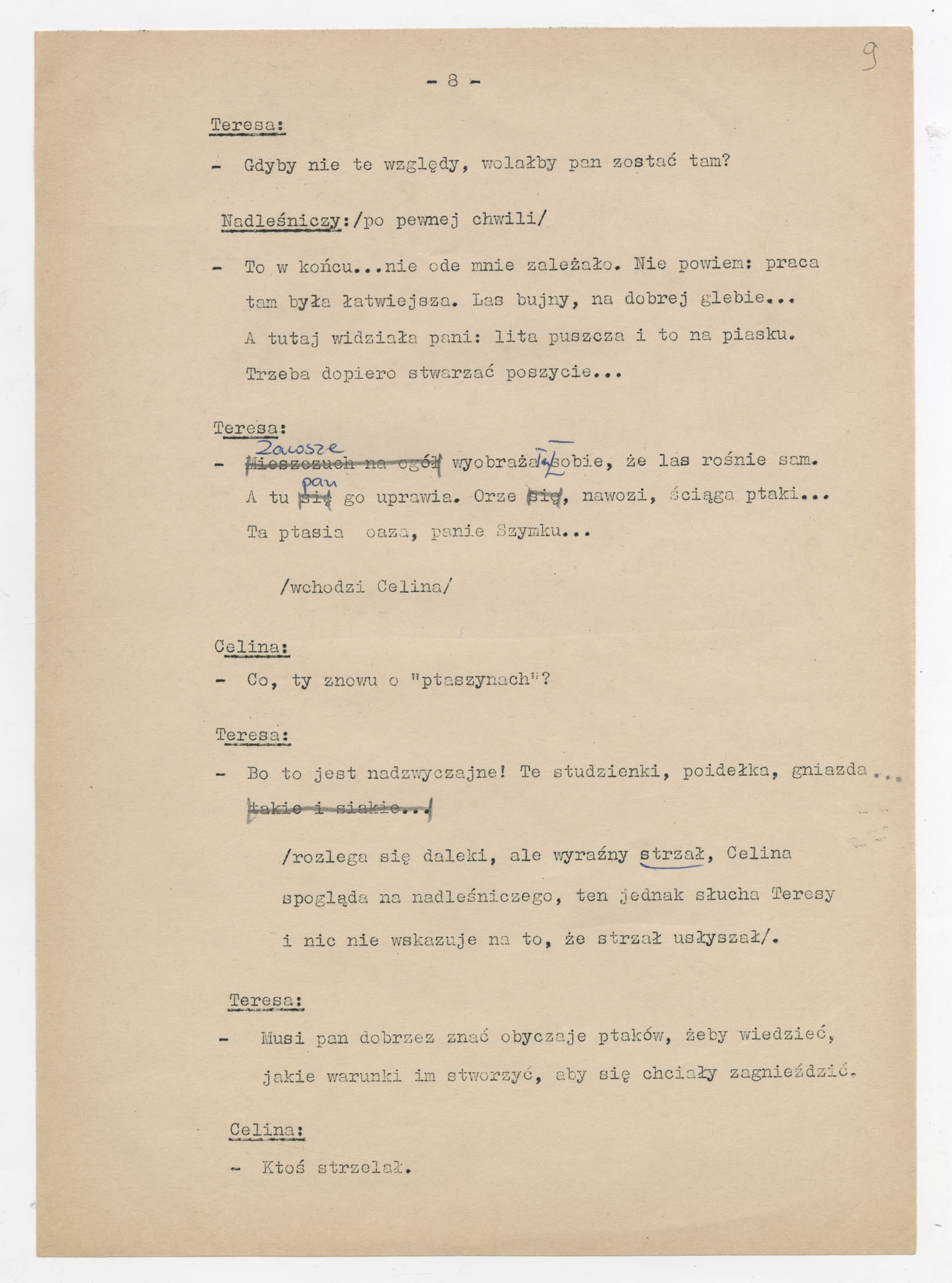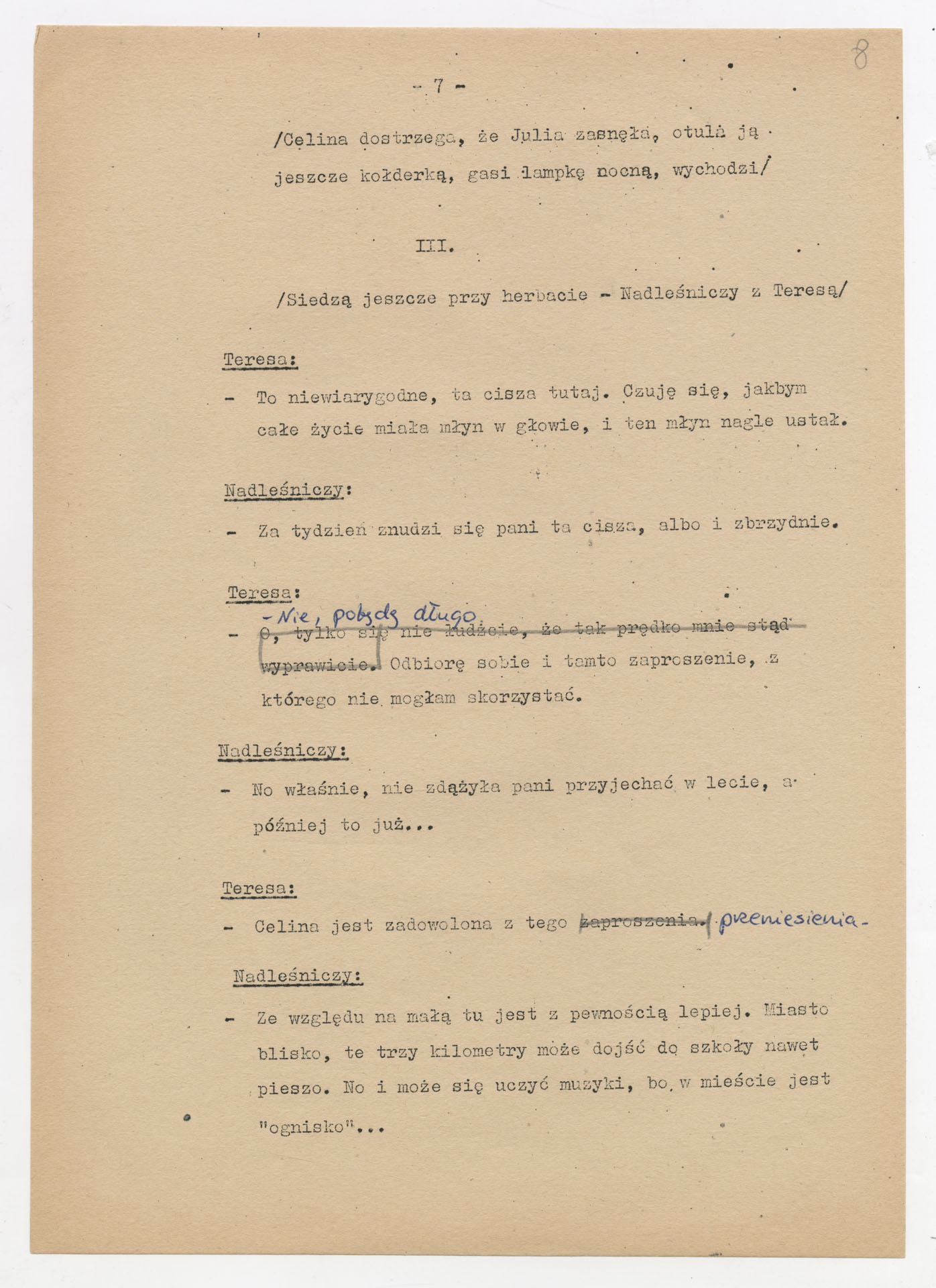 Maszynopis z adaptacją teatralną tekstu Zofii Posmysz “Wnyki” do teatru telewizji Krzysztofa Kieślowskiego “Wnyki”. Dokument ma postać wielostronicowego dialogowego scenariusza z didaskaliami, opisem miejsc, ruchu postaci, dźwięków i rekwizytów. Zawiera fragmenty w różnych redakcyjnych wersjach, miejscami z poprawkami, skreśleniami i dopisanymi wariantami kwestii.