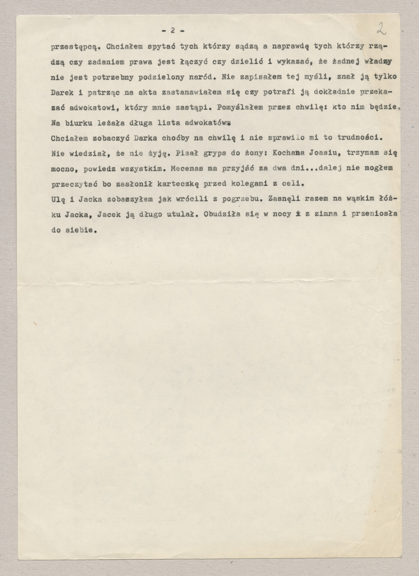 Kopia maszynopisu z pierwszym monologiem Antka (Antoniego Zyro) do filmu Krzysztofa Kieślowskiego “Bez końca” (1984). Nosi on tu jeszcze pierwotny tytuł “Szczęśliwy koniec”. Zdjęcia do tego filmu zrealizował Jacek Petrycki. Film został wyprodukowany przez Zespół Filmowy Tor. Scenariusz został napisany wspólnie przez Krzysztofa Kieślowskiego i Krzysztofa Piesiewicza. Od tego filmu zaczęła się współpraca obu autorów i trwała do śmierci Kieślowskiego w 1996 roku. Zawiera odręczne poprawki i notatki autora.