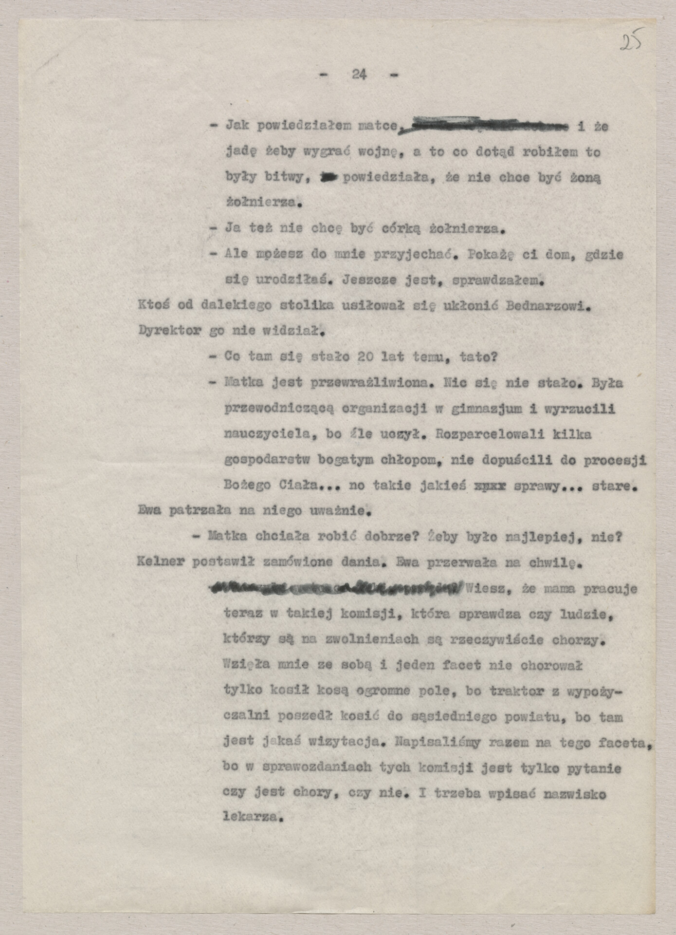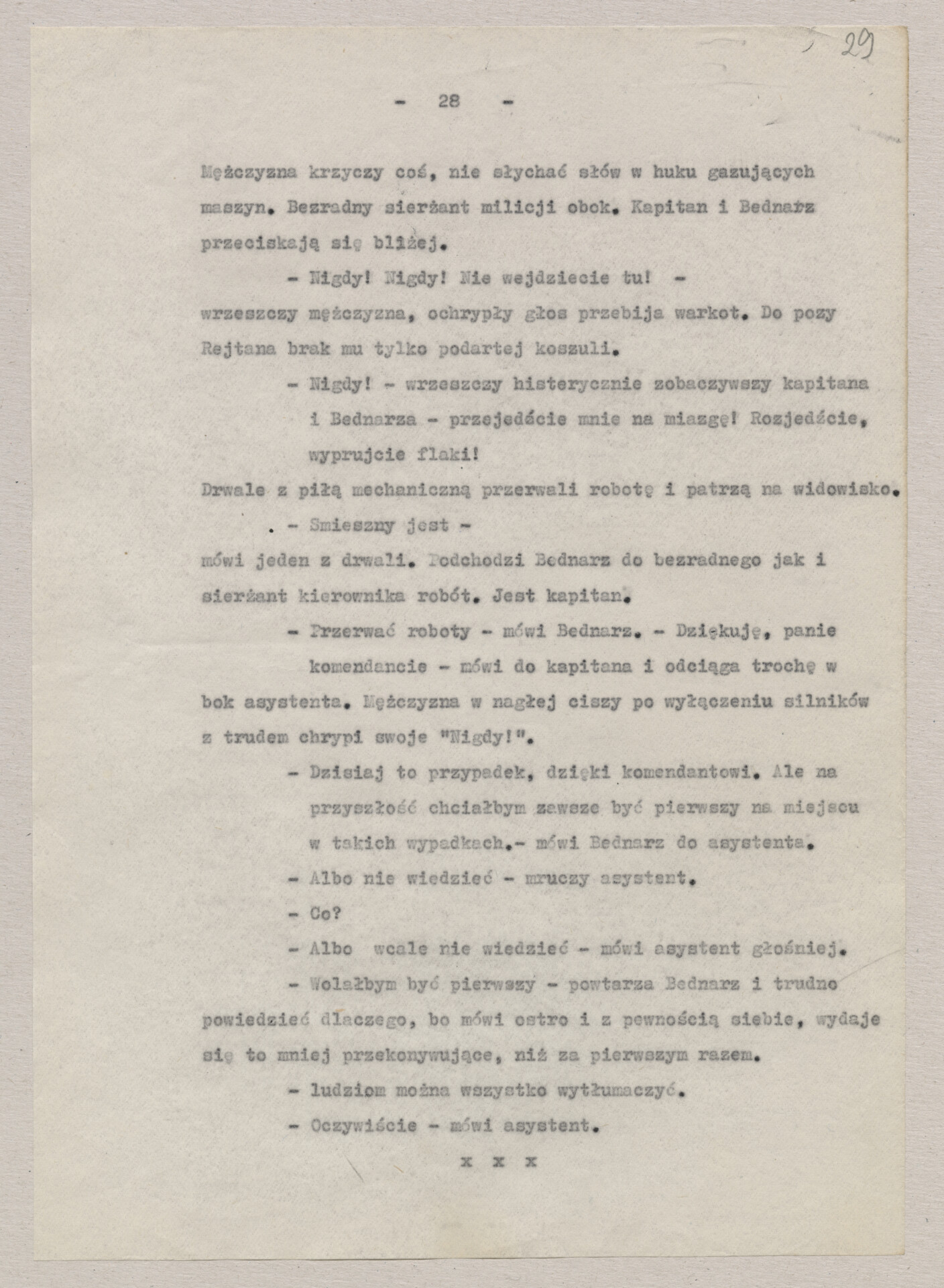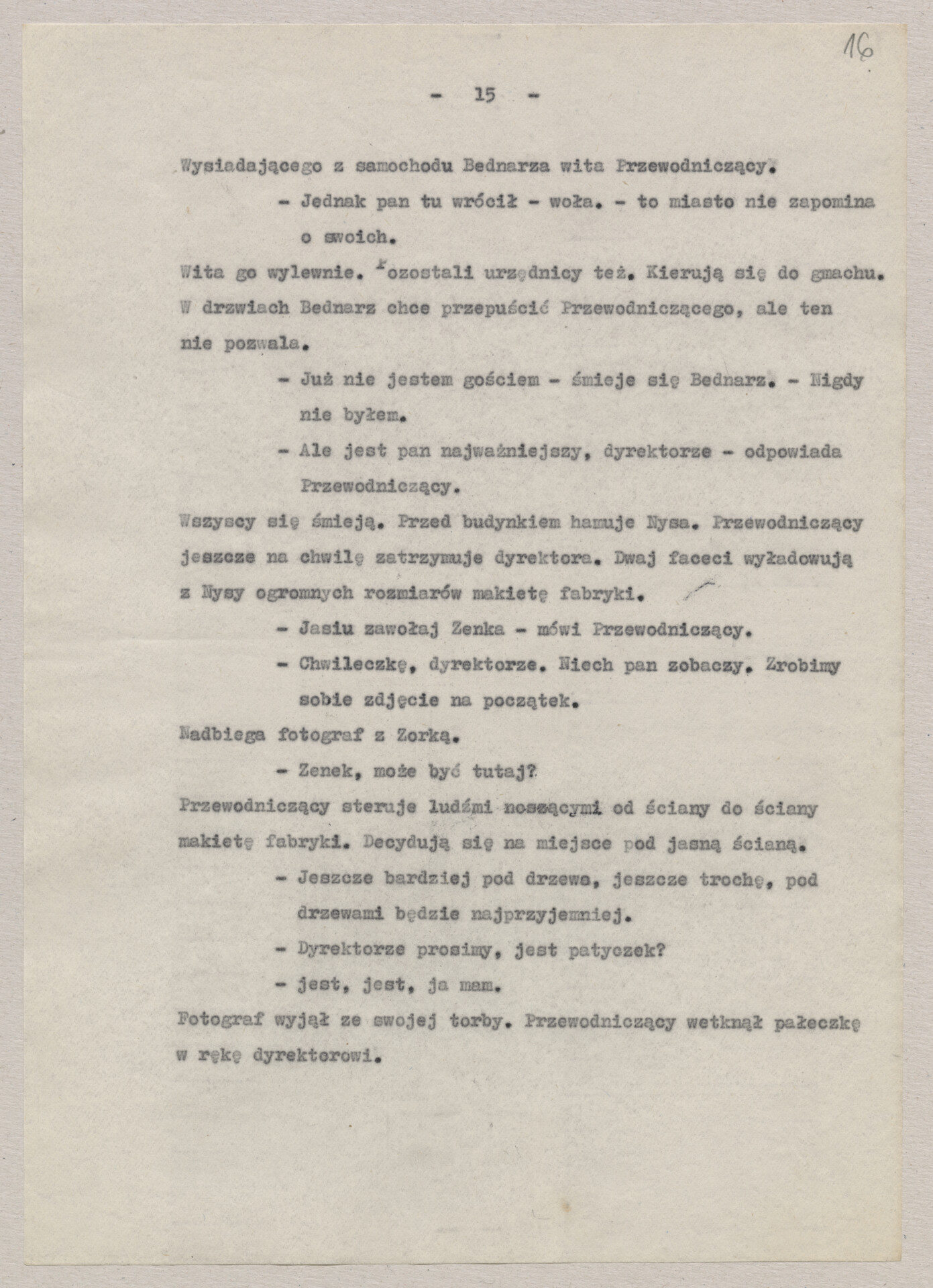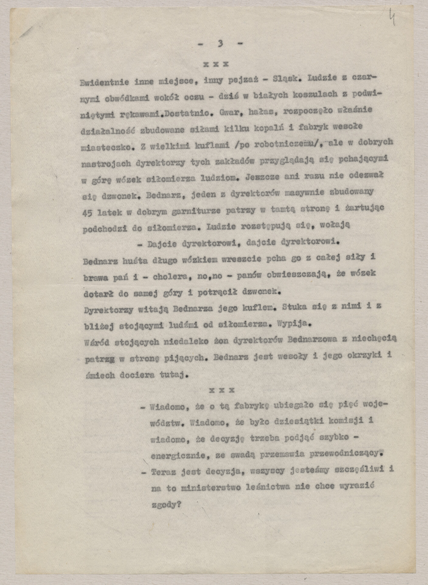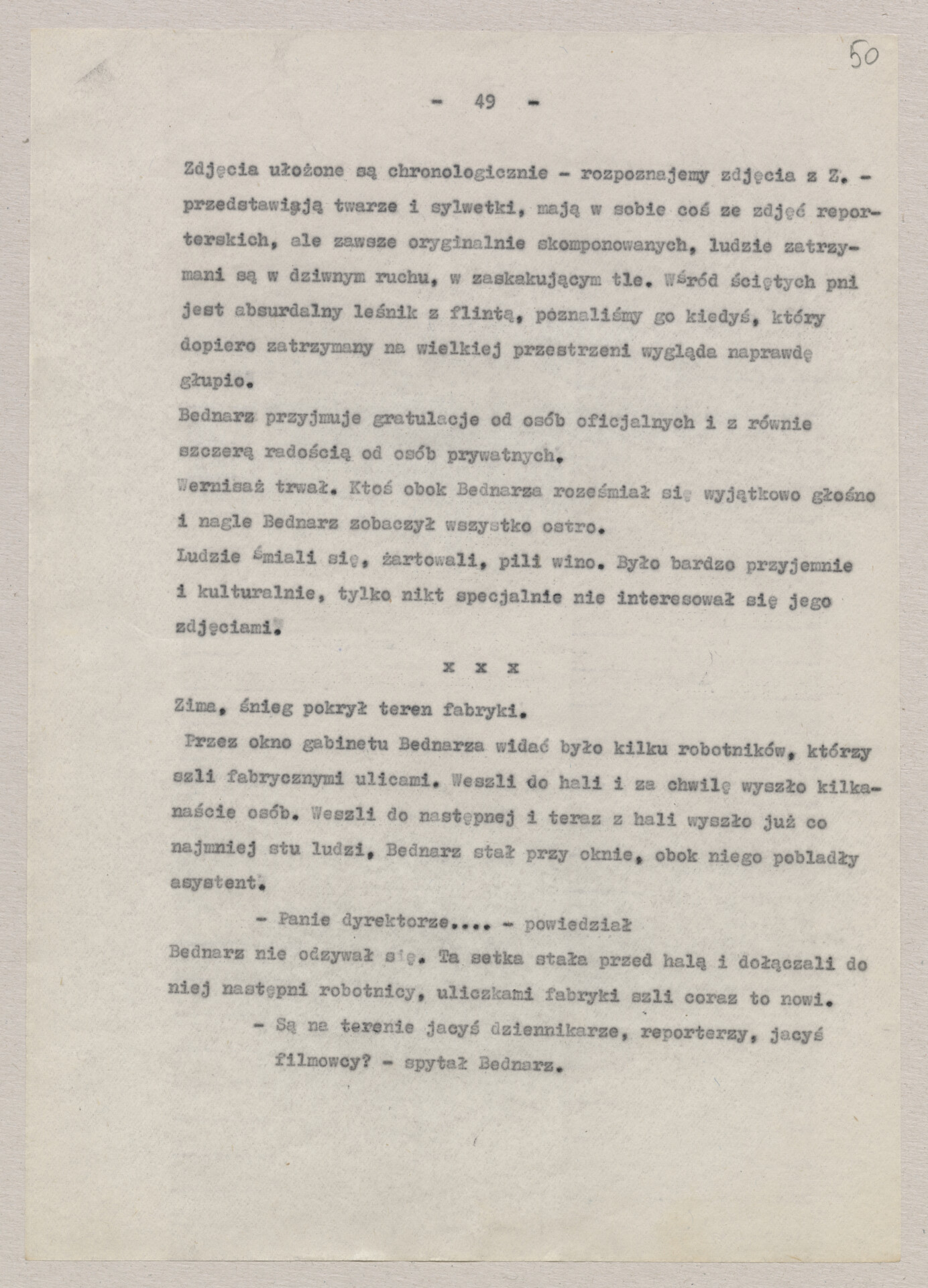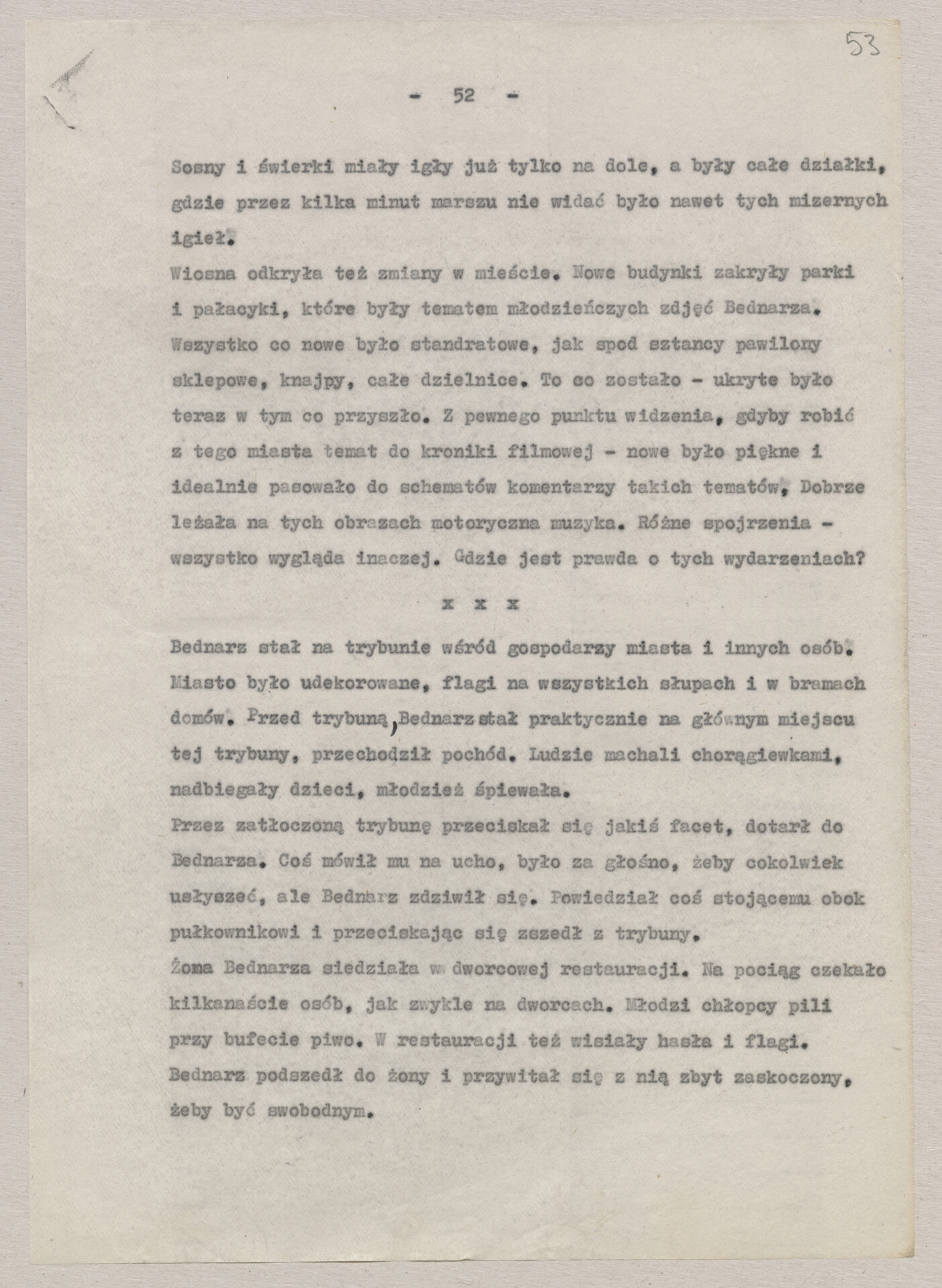 Kopia maszynopisu ze scenariuszem do filmu Krzysztofa Kieślowskiego “Blizna” (1976). Początkowo scenariusz nosił tytuł “Koszty własne”, później tytuł zmieniono na “Nasz człowiek”. Scenariusz napisany przez Krzysztofa Kieślowskiego powstał na bazie reportażu Romualda Karasia o budowie Zakładów Azotowych w Puławach, co było pomysłem Witolda Zalewskiego, kierownika literackiego “Toru”. Scenariusz został złożony w 1974 roku w Zespole Filmowym “Tor”. Inna wersja tego dokumentu ma sygnaturę ATKK-BLI-I-004.