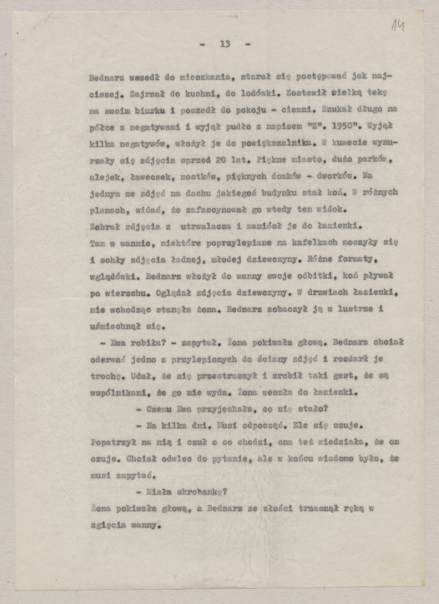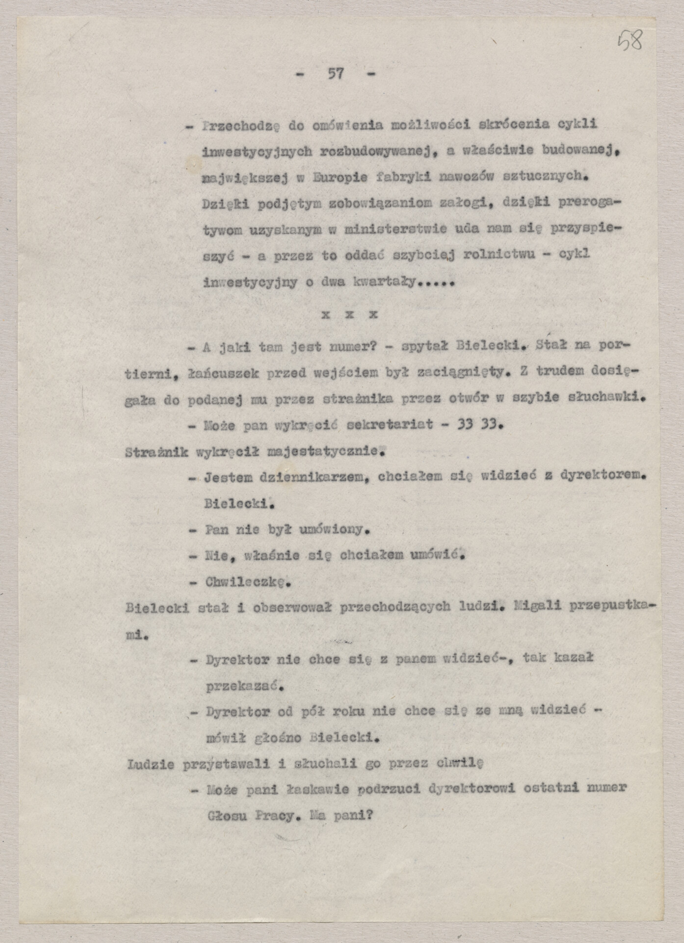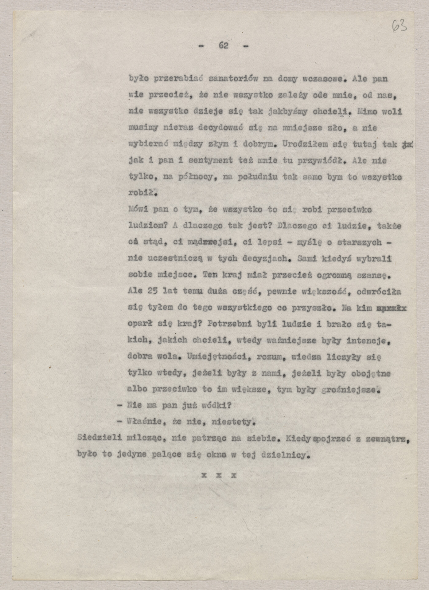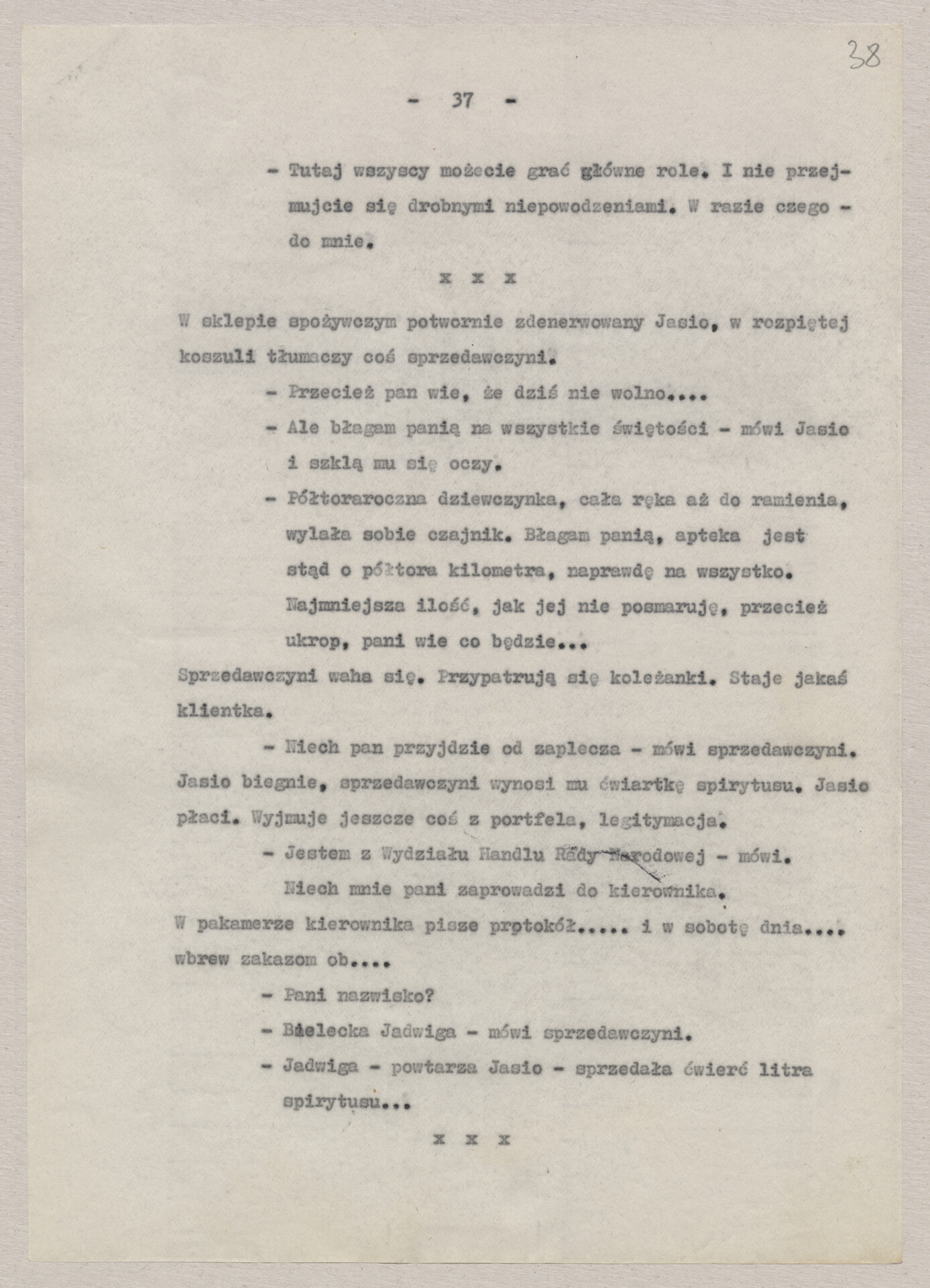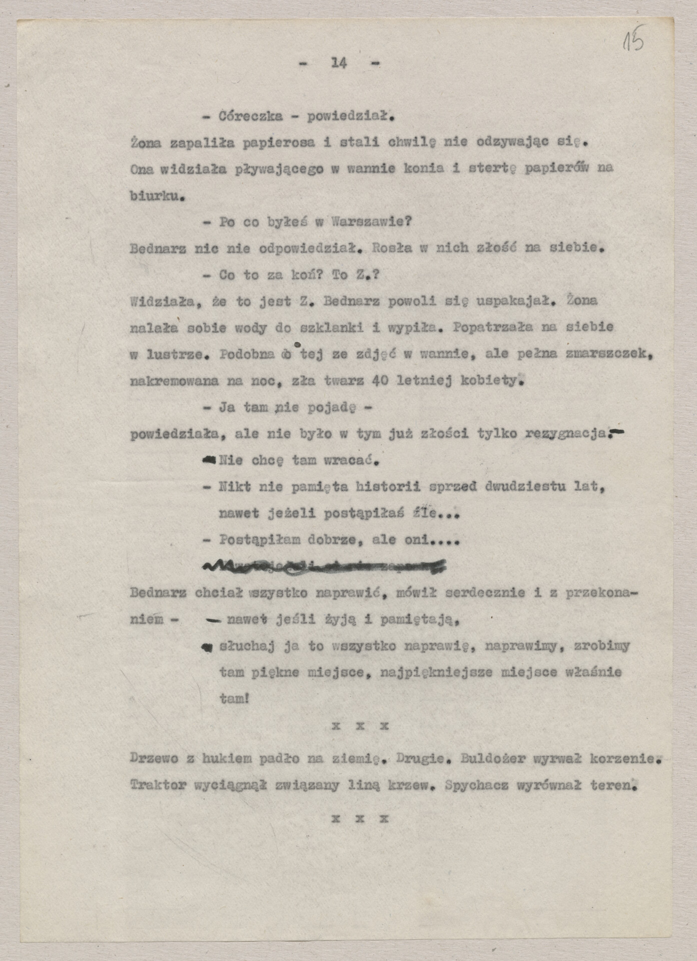 Kopia maszynopisu ze scenariuszem do filmu Krzysztofa Kieślowskiego “Blizna” (1976). Początkowo scenariusz nosił tytuł “Koszty własne”, później tytuł zmieniono na “Nasz człowiek”. Scenariusz napisany przez Krzysztofa Kieślowskiego powstał na bazie reportażu Romualda Karasia o budowie Zakładów Azotowych w Puławach, co było pomysłem Witolda Zalewskiego, kierownika literackiego “Toru”. Scenariusz został złożony w 1974 roku w Zespole Filmowym “Tor”. Inna wersja tego dokumentu ma sygnaturę ATKK-BLI-I-004.