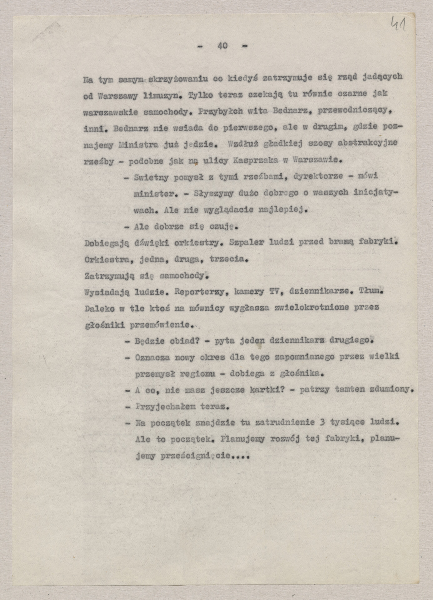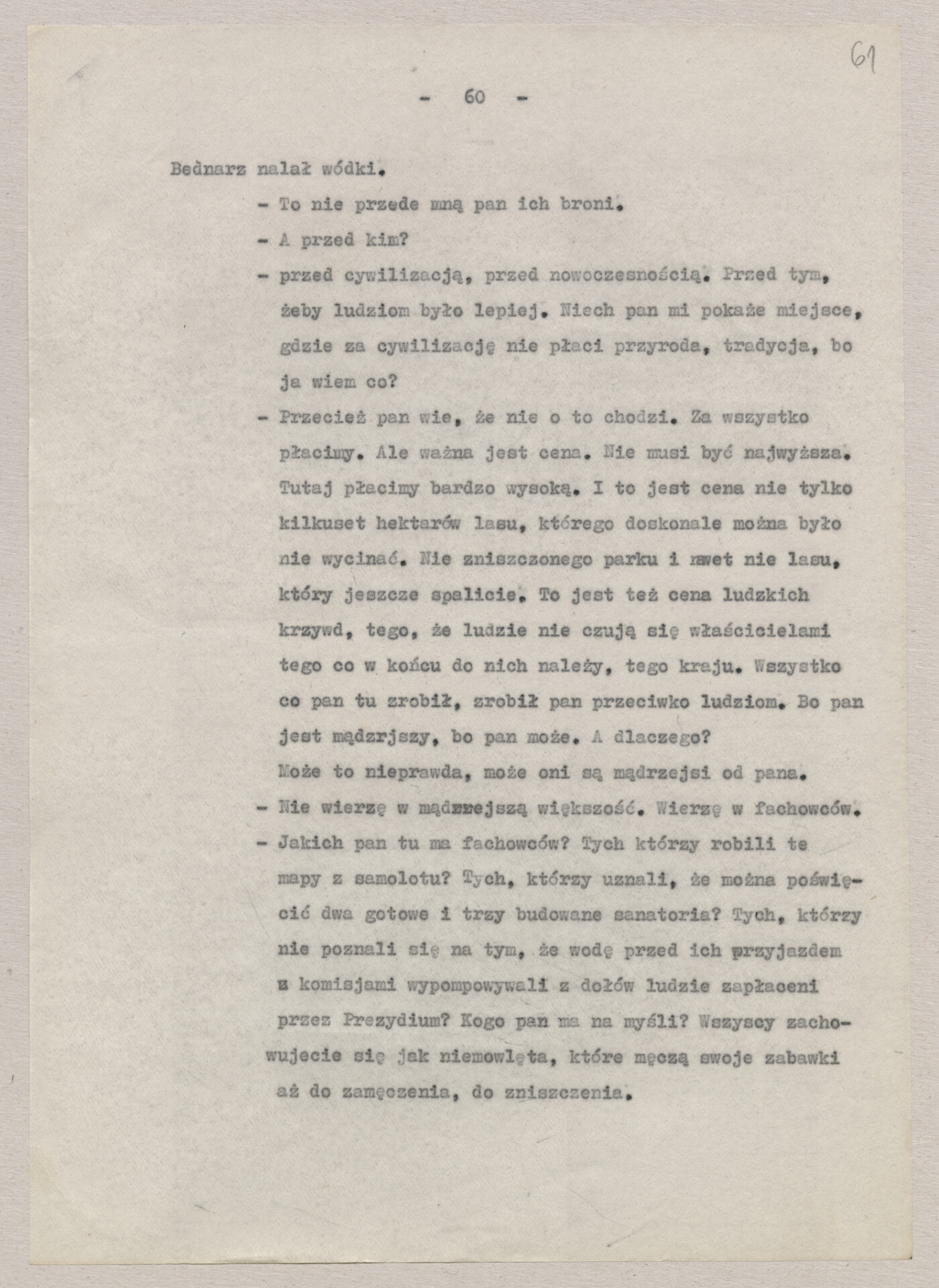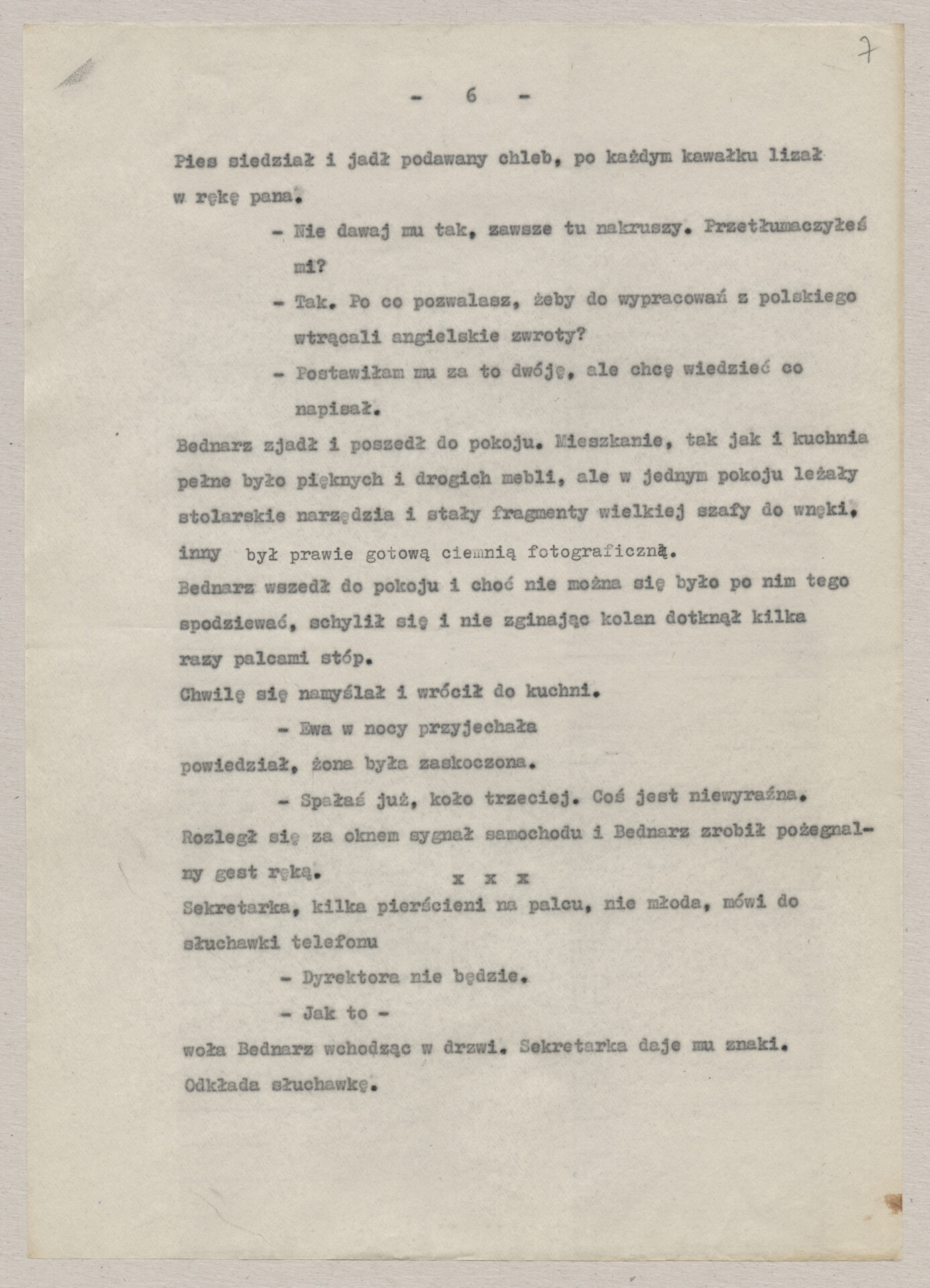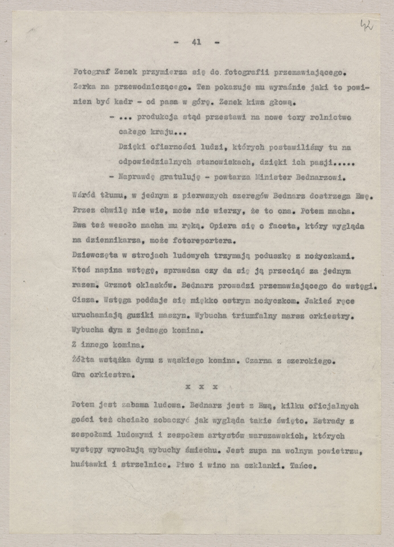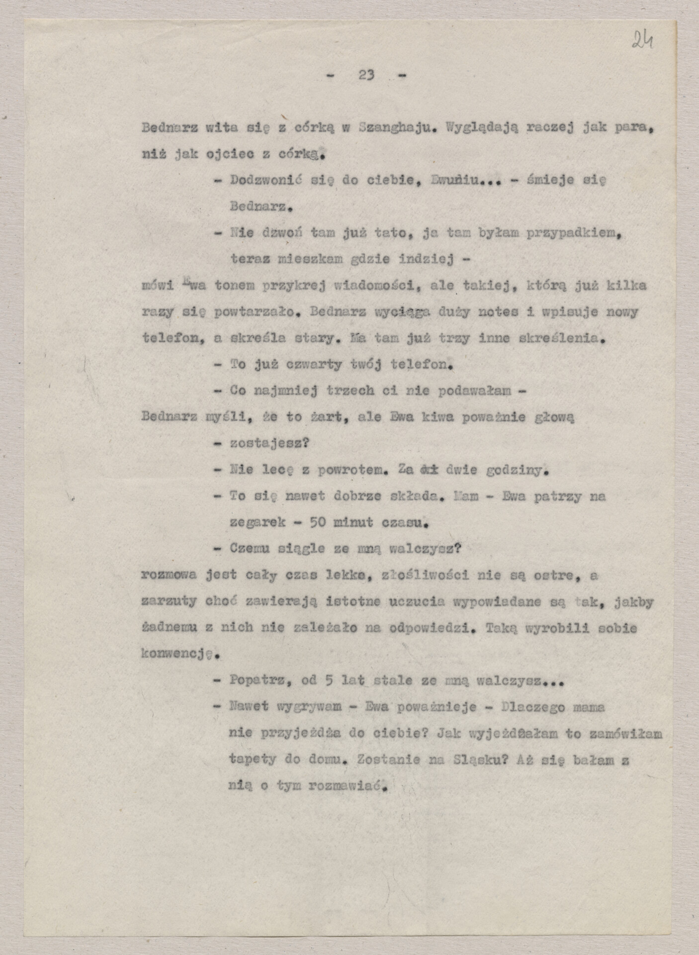 Kopia maszynopisu ze scenariuszem do filmu Krzysztofa Kieślowskiego “Blizna” (1976). Początkowo scenariusz nosił tytuł “Koszty własne”, później tytuł zmieniono na “Nasz człowiek”. Scenariusz napisany przez Krzysztofa Kieślowskiego powstał na bazie reportażu Romualda Karasia o budowie Zakładów Azotowych w Puławach, co było pomysłem Witolda Zalewskiego, kierownika literackiego “Toru”. Scenariusz został złożony w 1974 roku w Zespole Filmowym “Tor”. Inna wersja tego dokumentu ma sygnaturę ATKK-BLI-I-004.