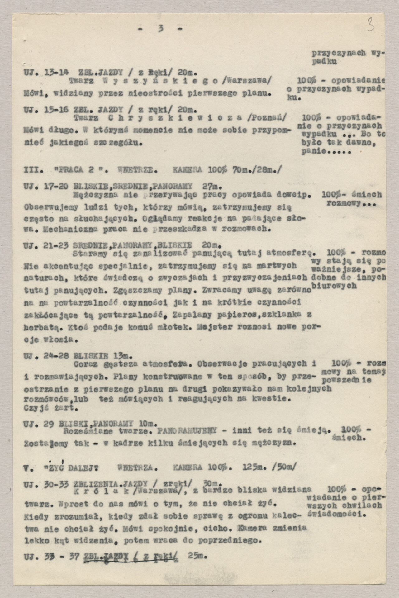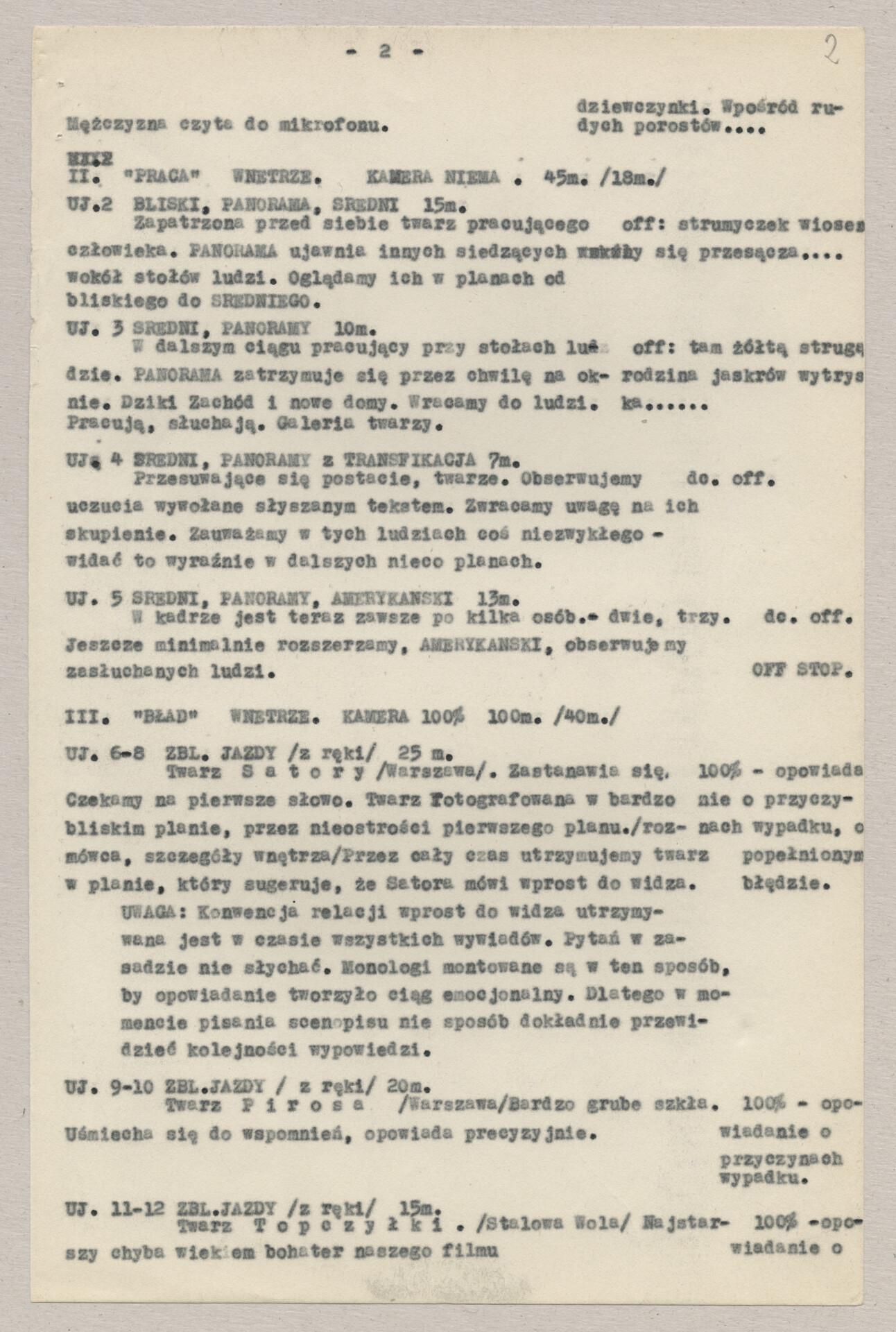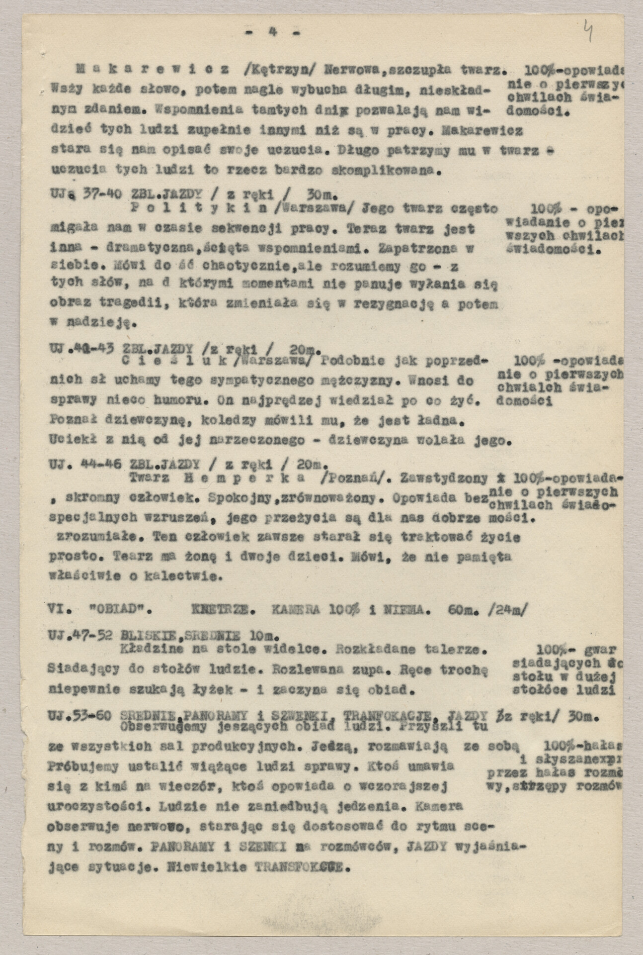Kopia maszynopisu ze scenopisem do filmu Krzysztofa Kieślowskiego “Byłem żołnierzem” (1970). Zanim film nosił ten tytuł, praca nad nim trwała pod roboczymi tytułami “Świat jeden dla wszystkich” i “Ociemniali”. Film został zrealizowany wspólnie z Andrzejem Titkowem, kolegą reżysera ze Szkoły Filmowej w Łodzi. Produkcja odbyła się poza macierzystą Wytwórnią Filmów Dokumentalną, w Wytwórni Filmowej “Czołówka”. Autorami scenopisu w dwóch aktach są Krzysztof Kieślowski i Stanisław Niedbalski.