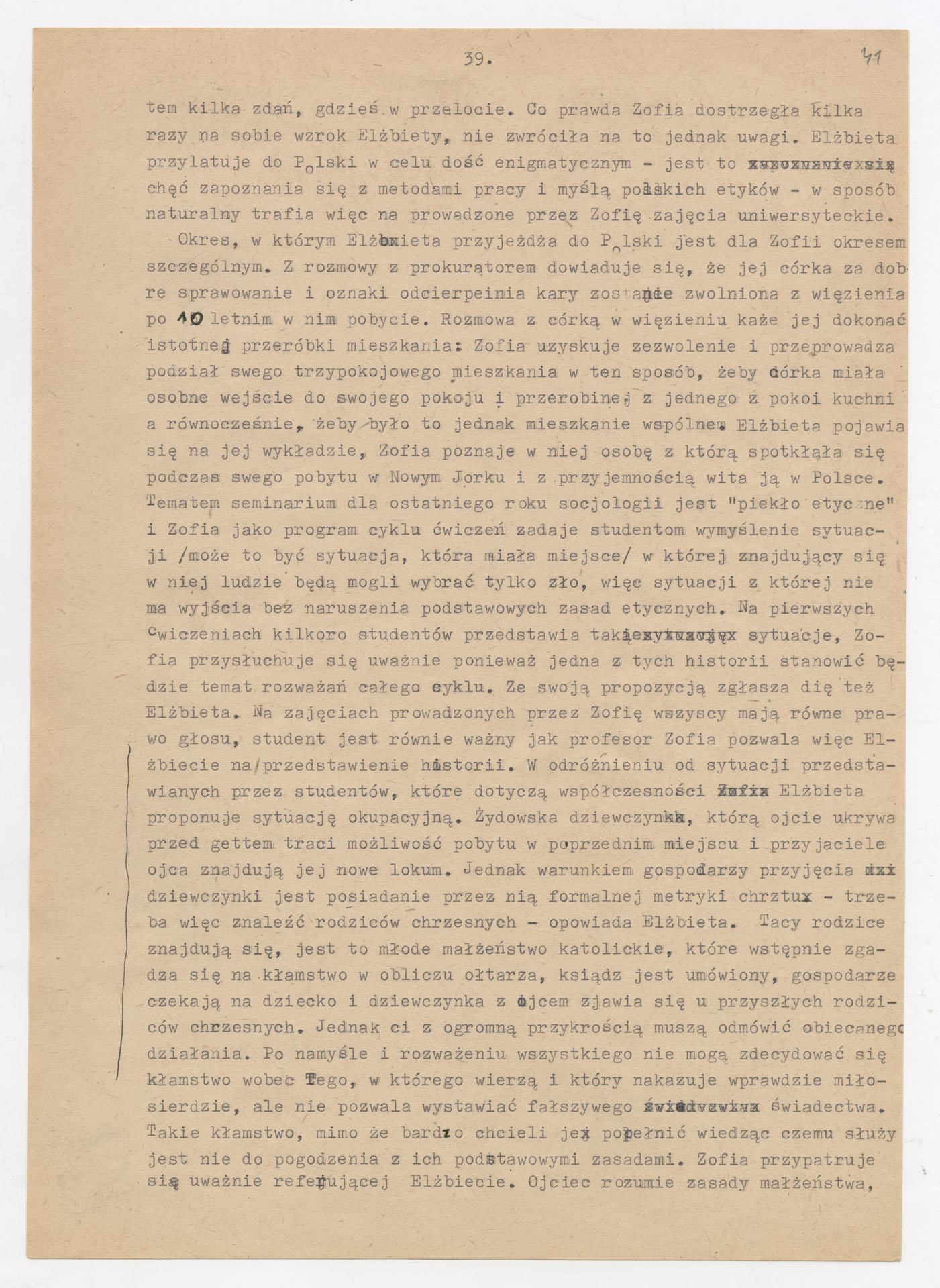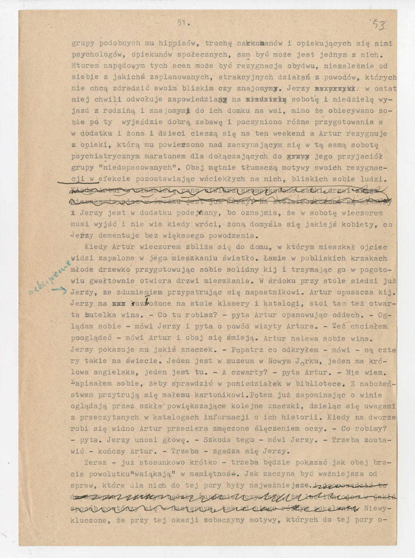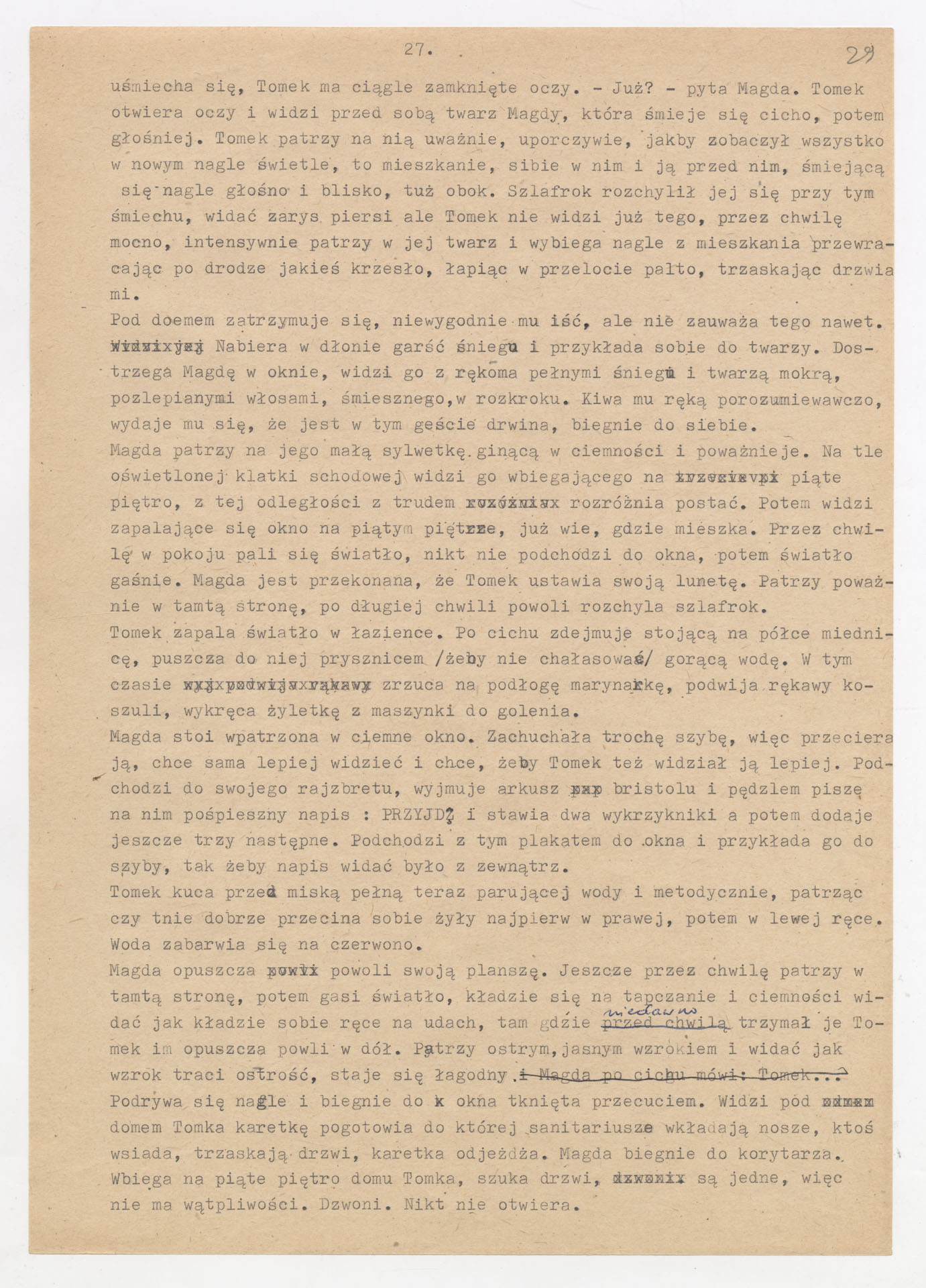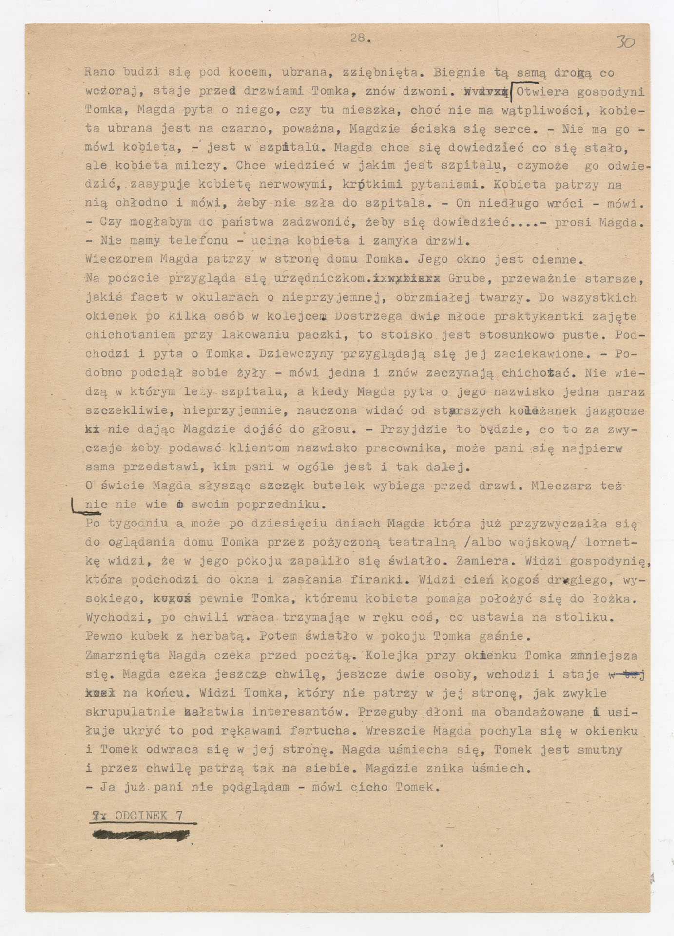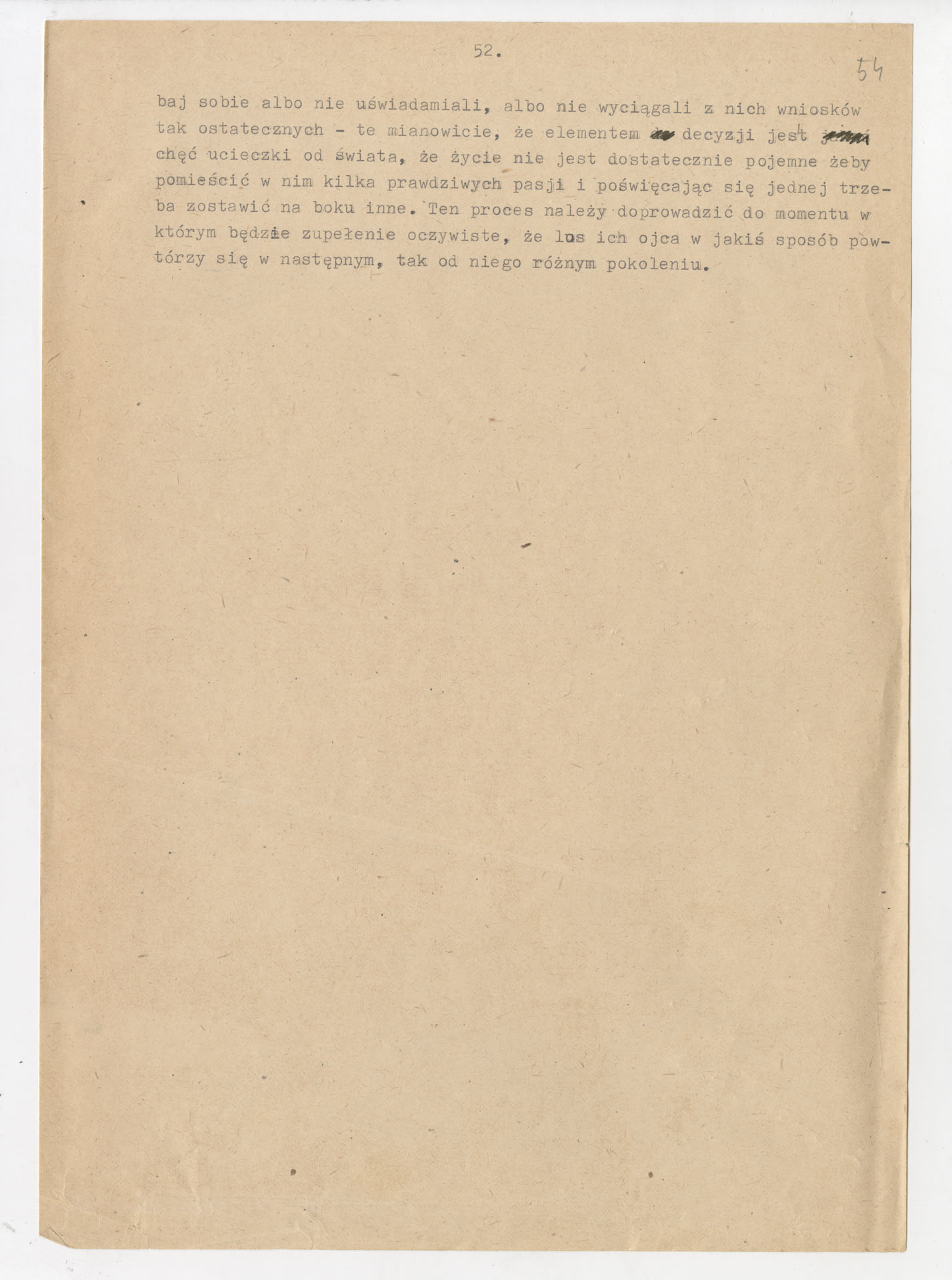 Maszynopis z propozycją cyklu telewizyjnego “Dekalog” autorstwa Krzysztofa Kieślowskiego i Krzysztofa Piesiewicza, który stał się podstawą telewizyjnego cyklu filmowego “Dekalog” (1988-1989), zrealizowanego według scenariuszy obu autorów i wyprodukowanego przez Zespół Filmowy Tor dla Telewizji Polskiej. Dokument nosi tytuł “Dekalog – propozycja cyklu / serialu TV. 10 odcinków godzinnych” i ma postać wielostronicowego maszynopisu. Zawiera część wstępną – esejowy opis założeń artystycznych cyklu (refleksje o współczesnym kryzysie rozróżnienia dobra i zła, o roli Dziesięciu Przykazań jako najstarszego zbioru norm etycznych) – oraz szczegółowe konspekty wszystkich dziesięciu odcinków, oznaczonych nagłówkami “Odcinek 1”, “Odcinek 2”, “Odcinek 10”. Każdy z nich przedstawia zarys fabuły z głównymi bohaterami, sytuacjami dramatycznymi, relacjami rodzinnymi i zawodowymi, a także sygnalizuje związek z jednym z przykazań (bez dosłownego przywoływania go w tytule). Tekst ma charakter materiału koncepcyjnego: zapisany ciągłą prozą, bez numeracji scen, służy jako punkt wyjścia do późniejszych nowel i scenariuszy odcinków, określając tonację całego cyklu (odejście od publicystyki i polityki na rzecz opowieści o odpowiedzialności, winie, miłości, wierze i przypadkach kształtujących ludzkie losy).