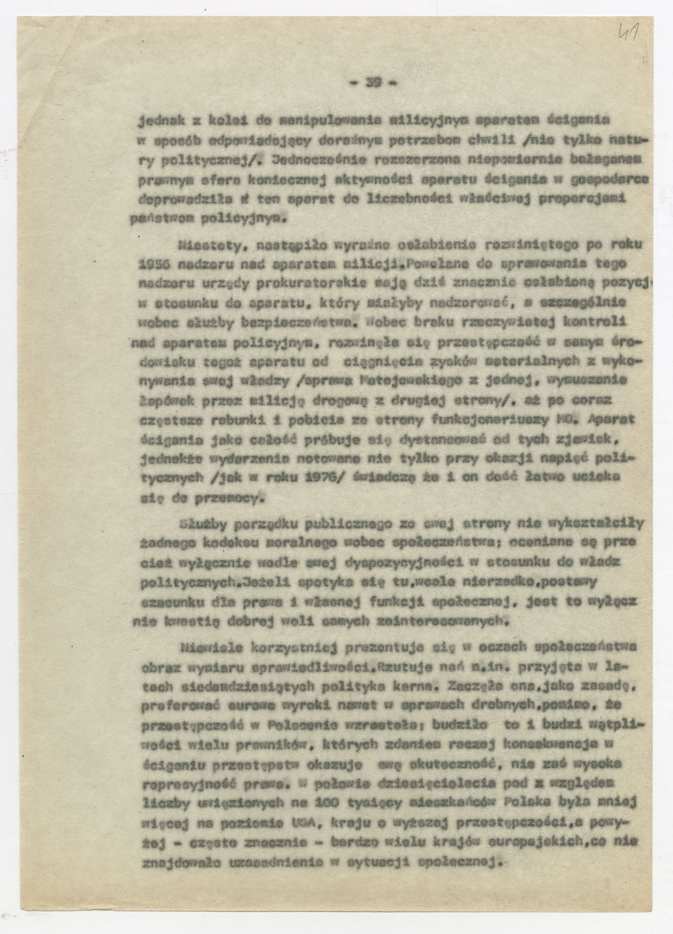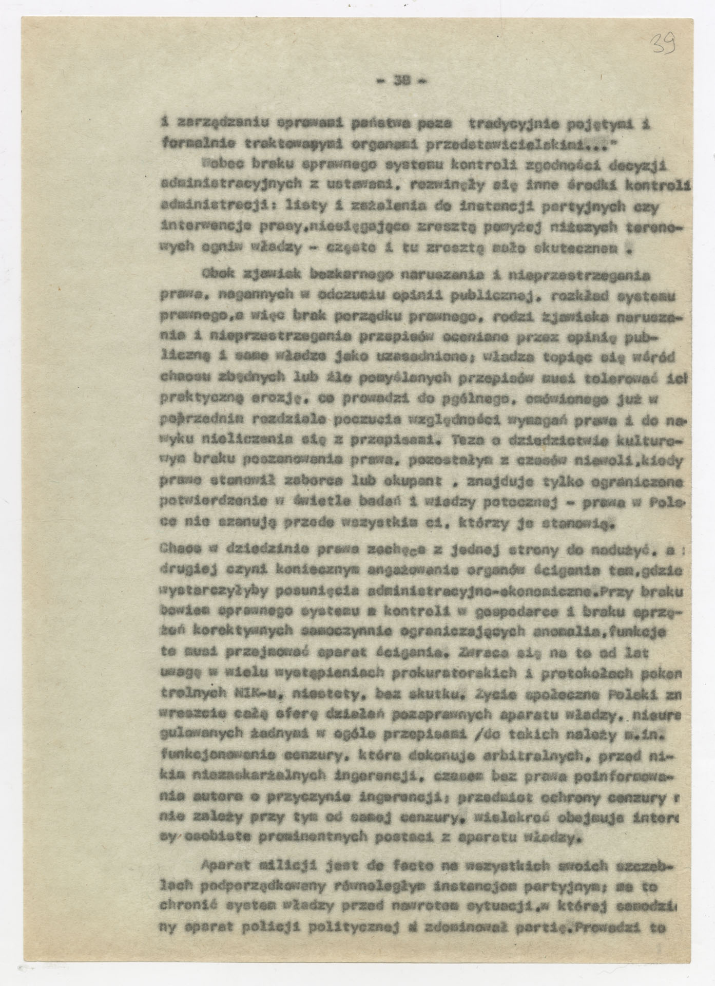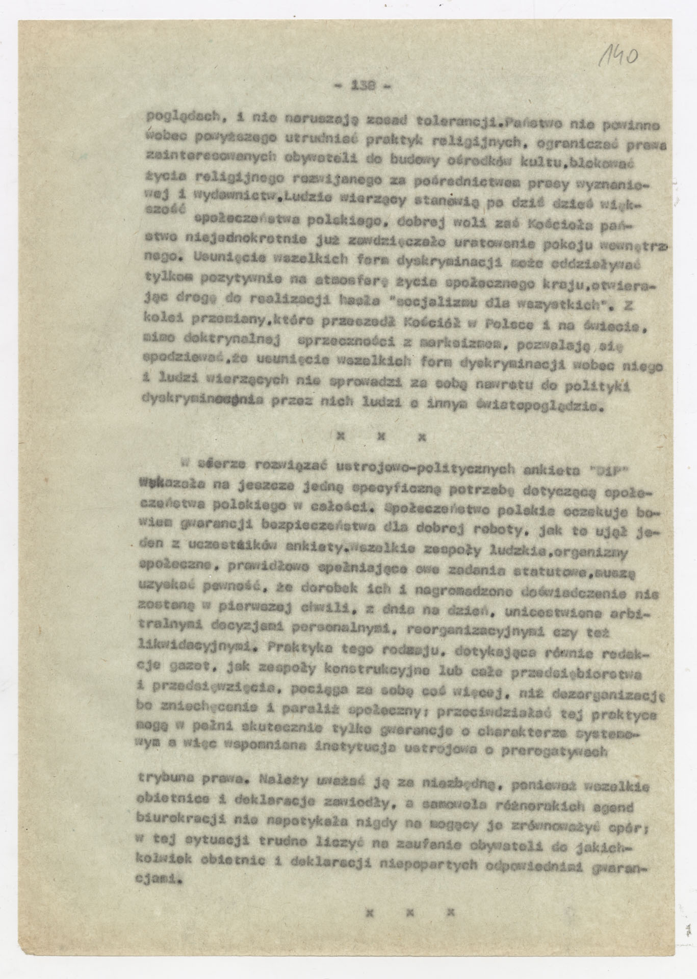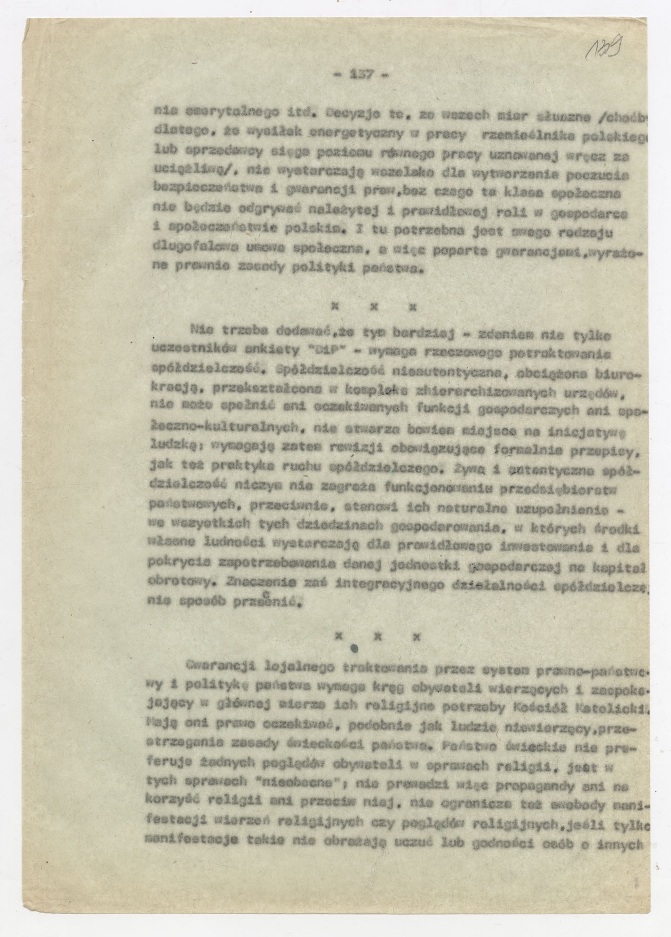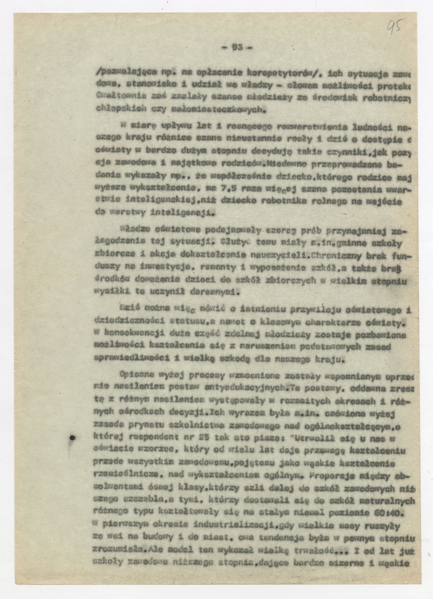 Maszynopis z opracowaniem wyników ankiety środowiskowej dotyczącej sytuacji społeczno-politycznej i kulturalnej w Polsce, związanej z pracami konwersatorium “Doświadczenie i przyszłość”. Tekst ma postać eseju analitycznego, podzielonego na części poświęcone diagnozie kryzysu gospodarczego, mechanizmom władzy, relacjom państwo-partia-społeczeństwo oraz kondycji środowisk twórczych i inteligenckich. Autorzy omawiają przyczyny narastającej frustracji i bierności, wskazują na niespójność oficjalnej polityki kulturalnej, centralizm decyzyjny i rozbieżność między deklaracjami a praktyką. W dalszych fragmentach formułują postulaty zmian: zwiększenia udziału obywateli w podejmowaniu decyzji, otwarcia debaty publicznej, odejścia od propagandowego języka i stworzenia realnych warunków rozwoju kultury. Dokument ma charakter roboczej ekspertyzy programowej, przygotowanej jako baza do dalszych dyskusji i działań.