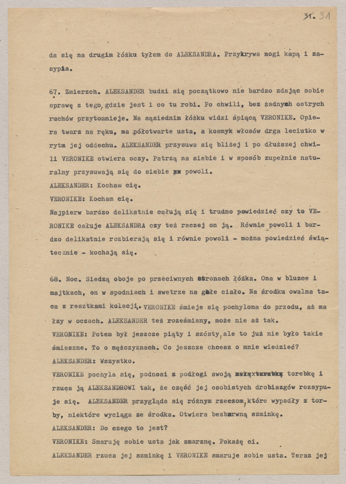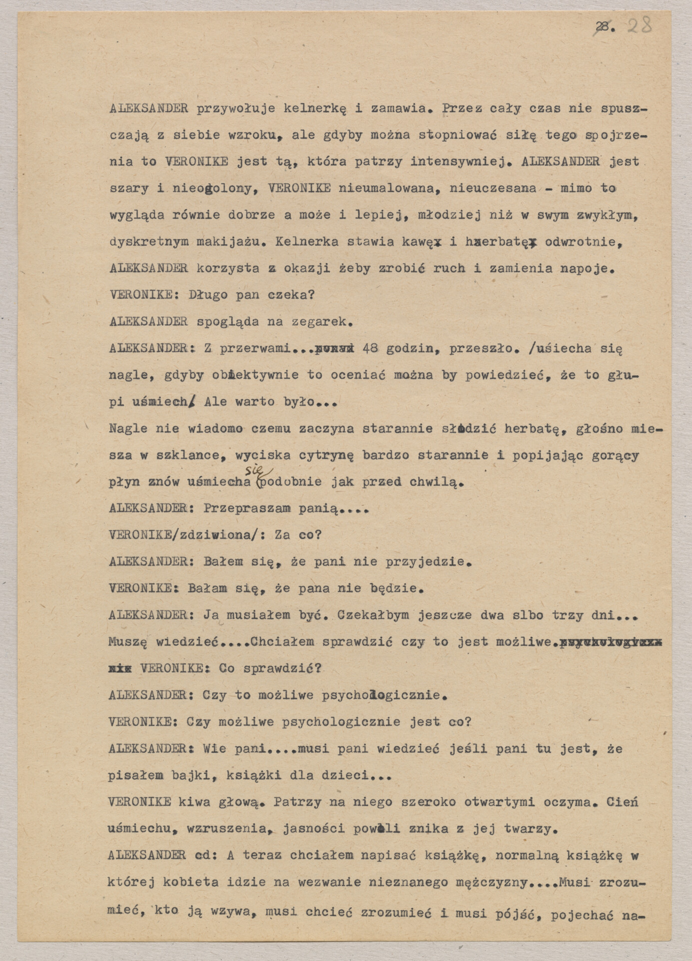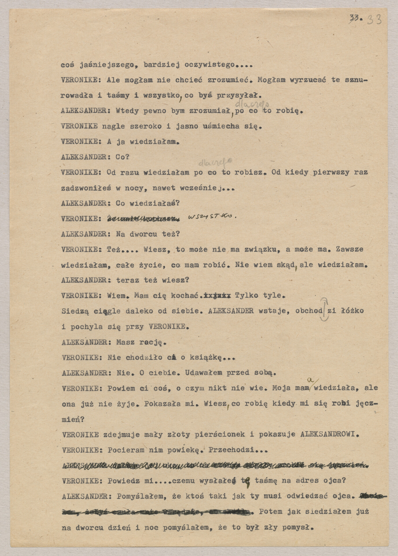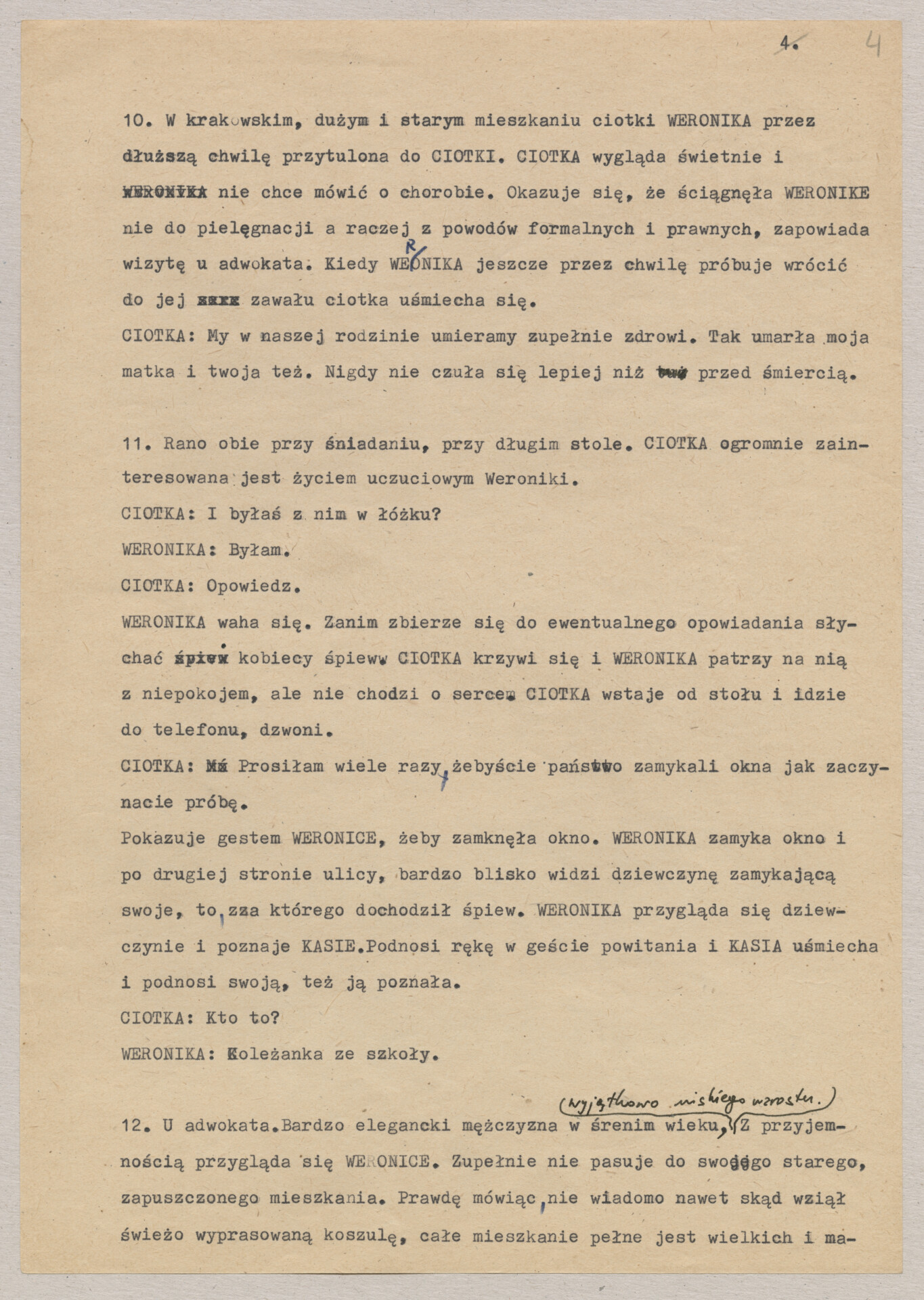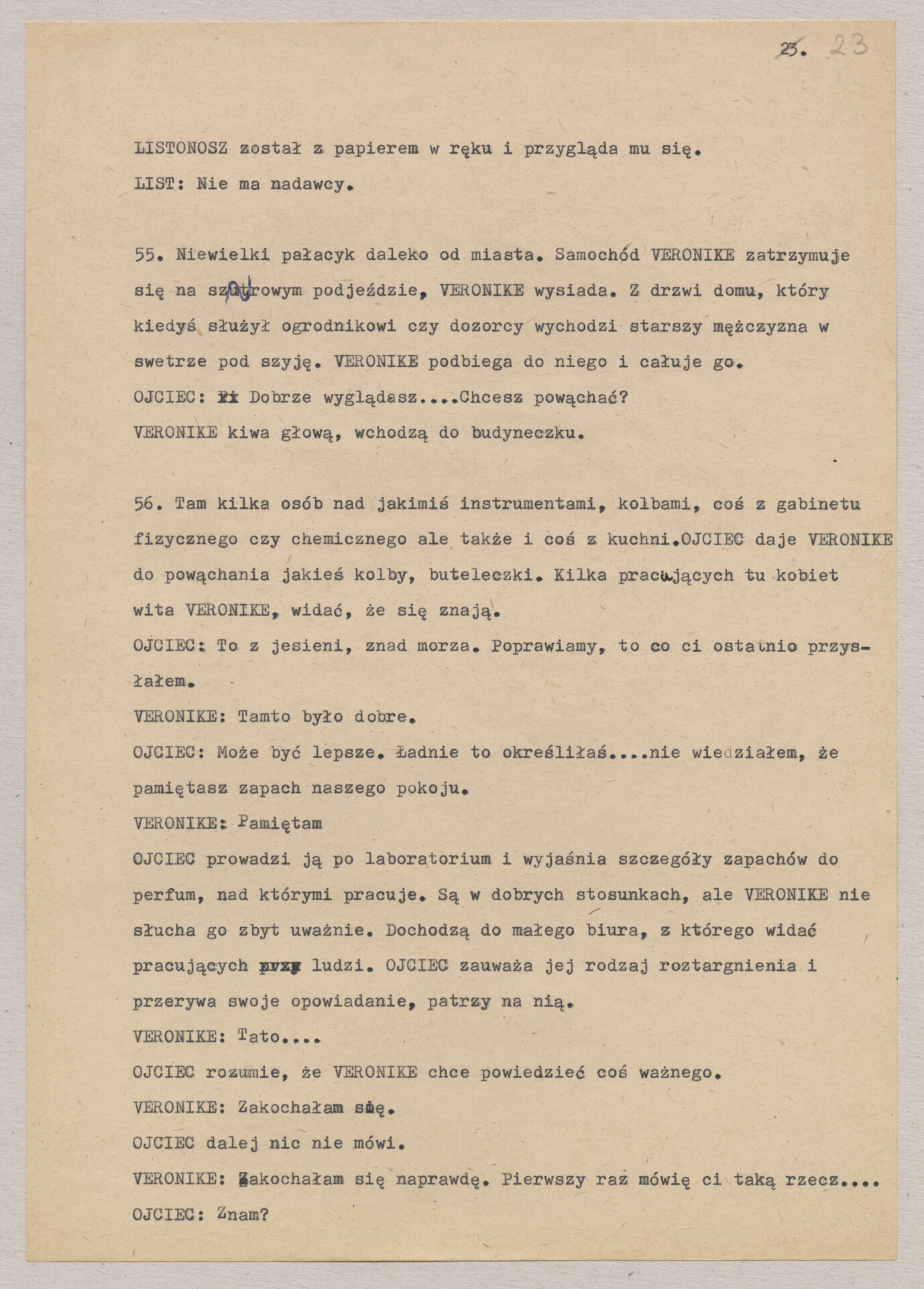 Maszynopis treatmentu do filmu Krzysztofa Kieślowskiego “Podwójne życie Weroniki” (1991) – pierwszego zagranicznego filmu reżysera. W momencie pracy nad filmem posługiwano się tytułem “Chórzystka”. Autorami scenariusza są Krzysztof Piesiewicz i Krzysztof Kieślowski, którzy przedstawiają opowieść o dwóch identycznych kobietach, Polce i Francuzce (obie role grane przez Irène Jacob), które w niewytłumaczalny sposób odczuwają swoją wzajemną obecność. Dokument zawiera odręczne notatki autora.