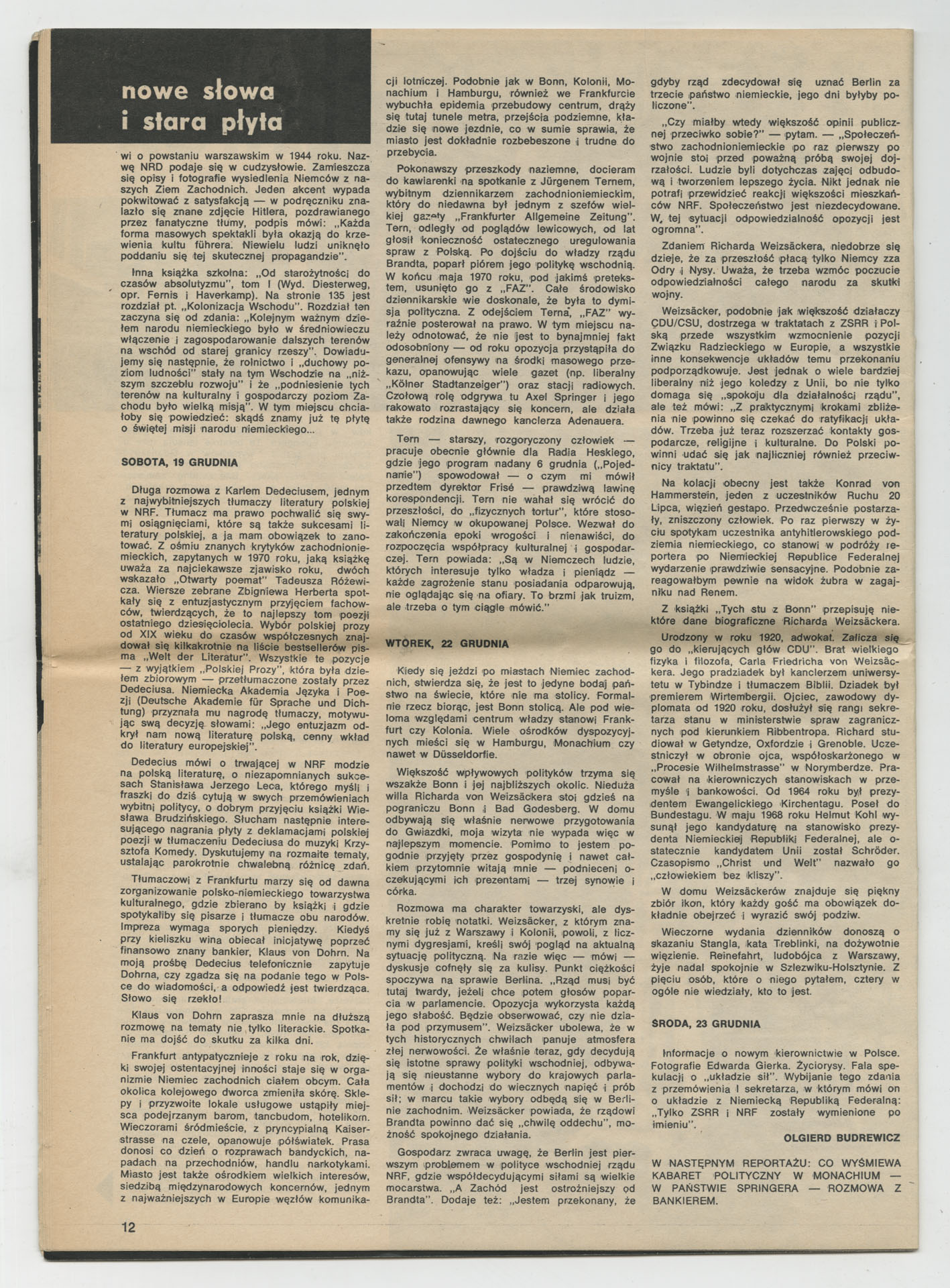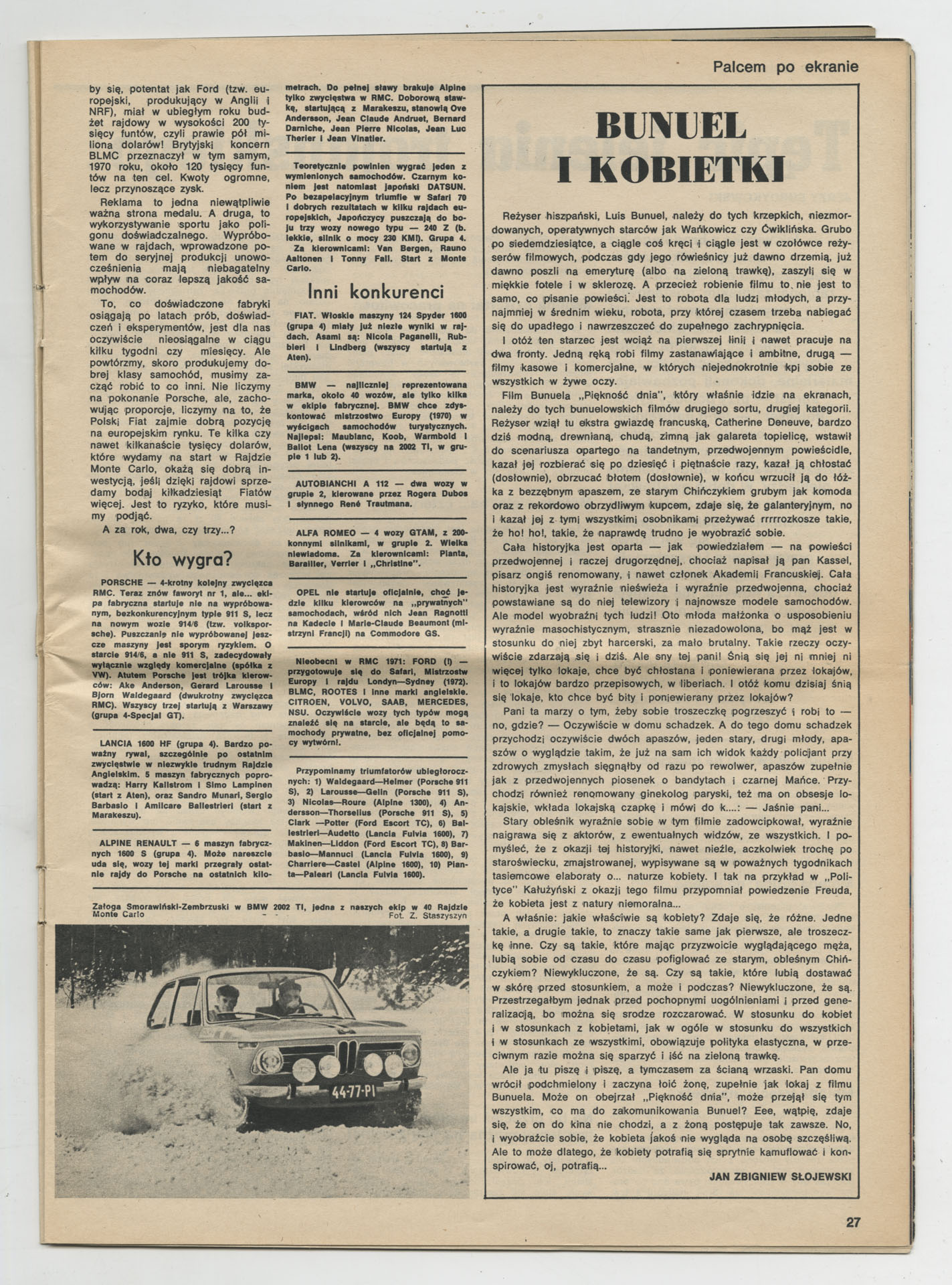 Wydruk z magazynem “Perspektywy” odnoszący się do filmu Krzysztofa Kieślowskiego “Przed rajdem” (1971) wyprodukowanego przez Wytwórnię Filmów Dokumentalnych. Zdjęcia do tego filmu realizowali Piotr Kwiatkowski i Jacek Petrycki. Film stanowi relację z przygotowań czołowego polskiego automobilisty Krzysztofa Komornickiego do udziału w rajdzie Monte Carlo 1971.