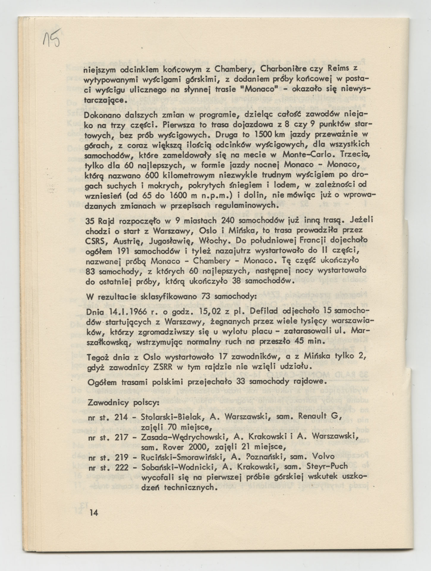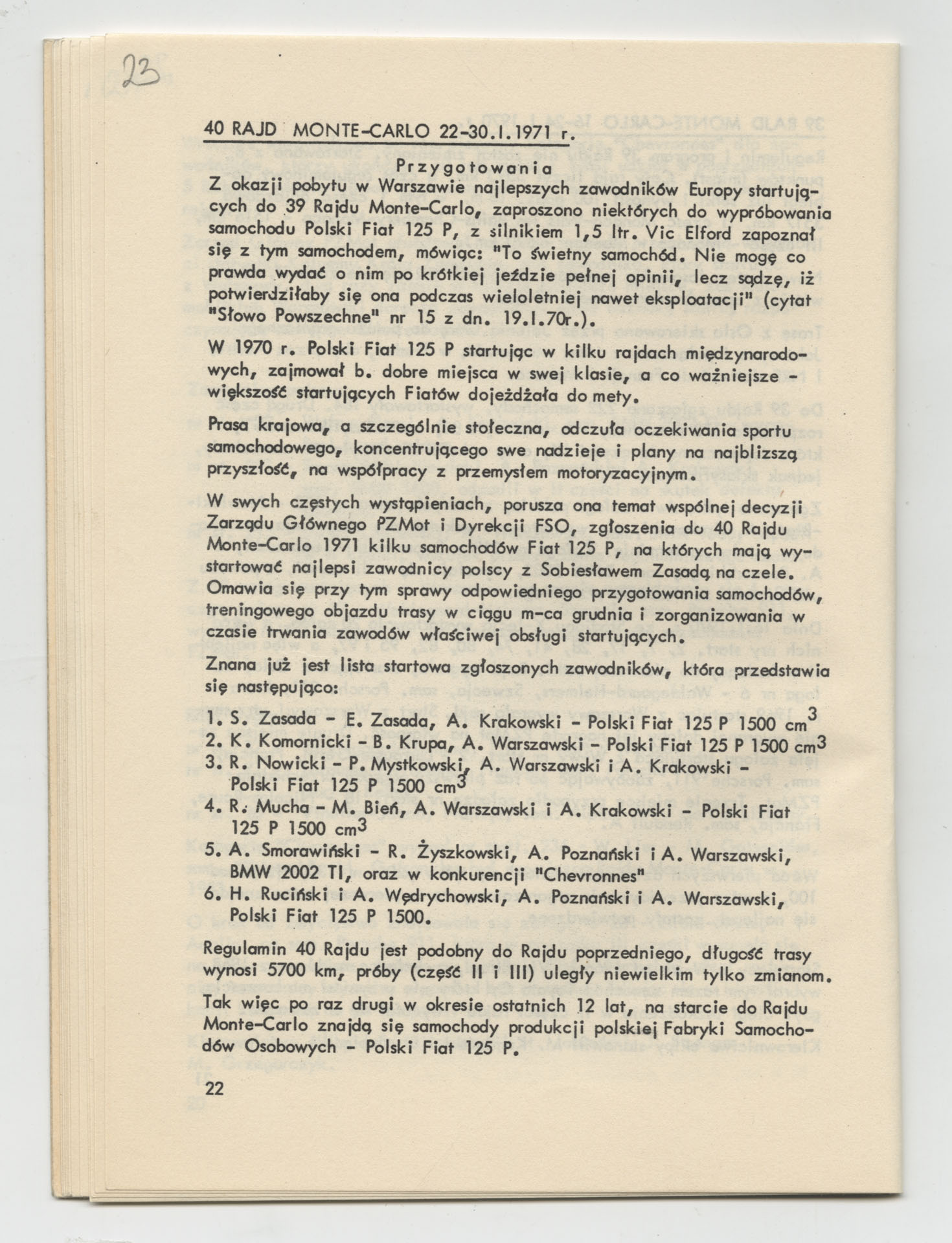 Wydruk z magazynem “Perspektywy” odnoszący się do filmu Krzysztofa Kieślowskiego “Przed rajdem” (1971) wyprodukowanego przez Wytwórnię Filmów Dokumentalnych. Zdjęcia do tego filmu realizowali Piotr Kwiatkowski i Jacek Petrycki. Film stanowi relację z przygotowań czołowego polskiego automobilisty Krzysztofa Komornickiego do udziału w rajdzie Monte Carlo 1971.