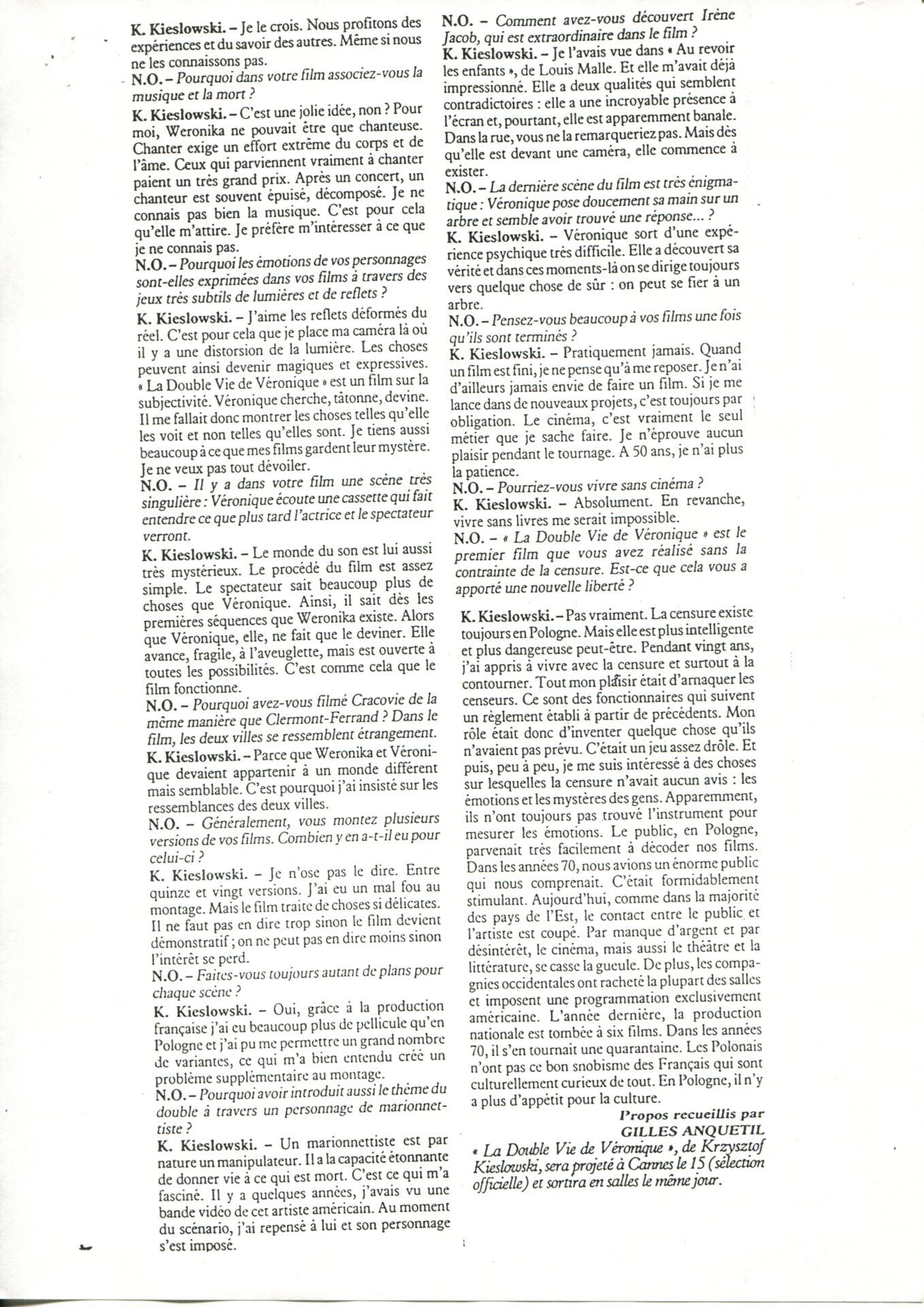 Artykuł prasowy z gazety francuskiej ” Le Nouvel Observateur/Special Cannes” zatytułowany “Le maitre du myster”.