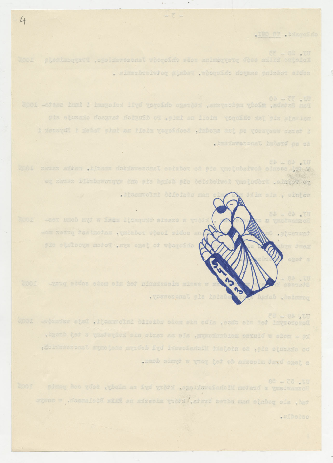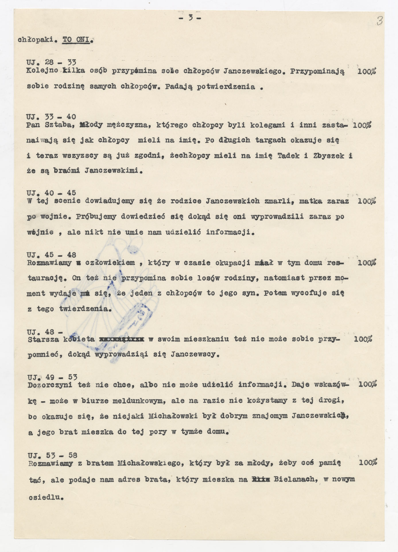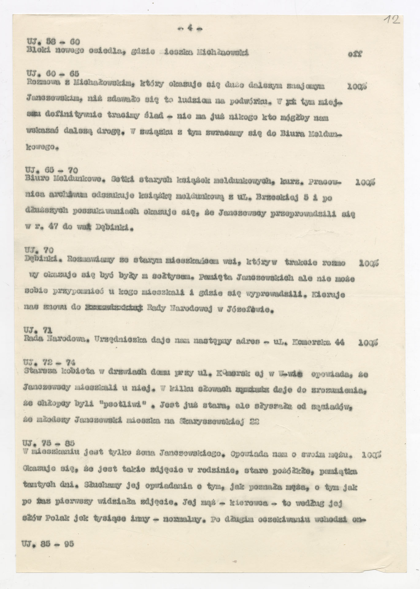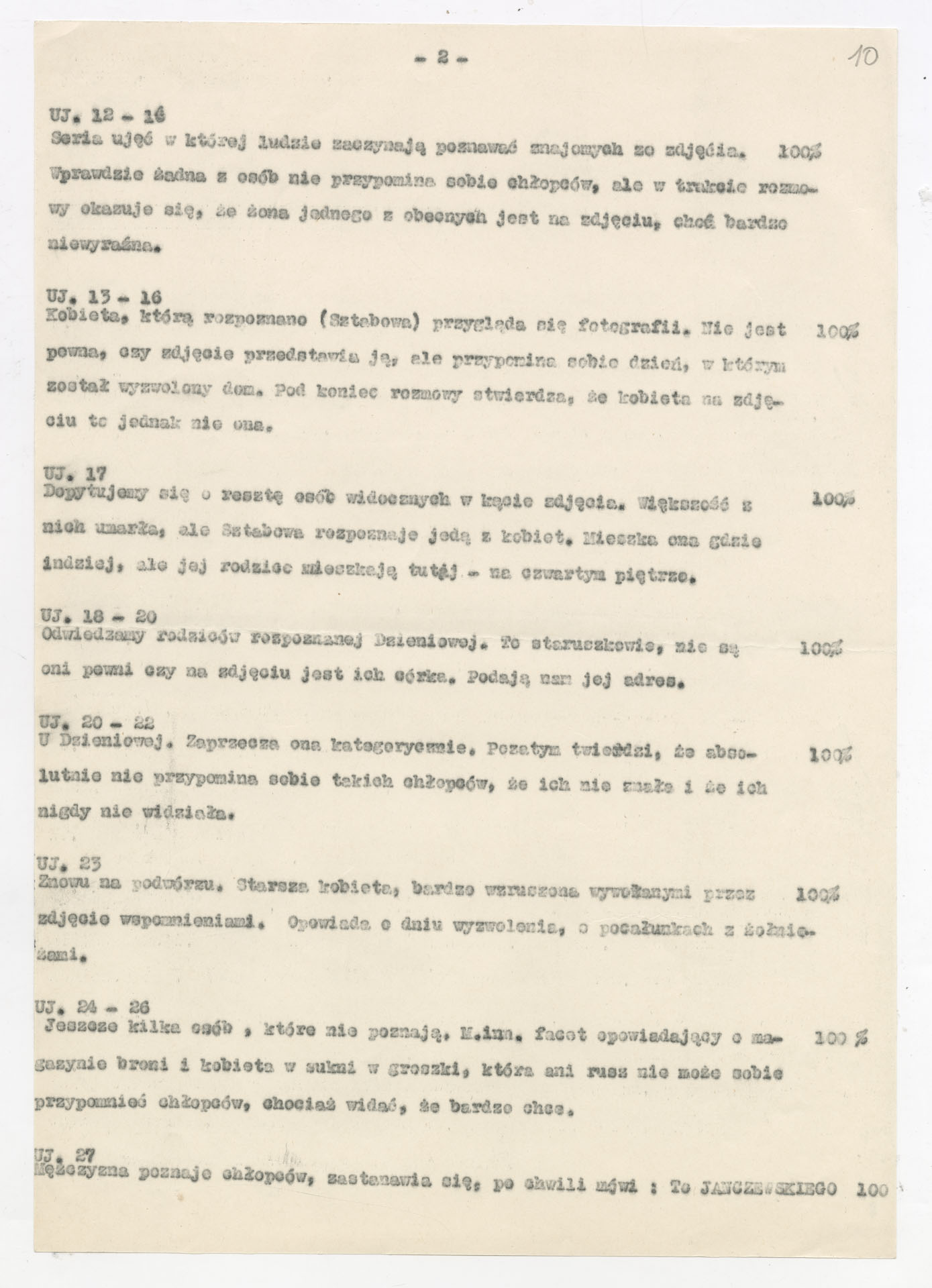 Maszynopis z planem montażowym do filmu Krzysztofa Kieślowskiego “Zdjęcie” (1968) zrealizowanego dla Telewizji Polskiej wyprodukowanego przez Zakład Produkcji Filmów Telewizyjnych. Dokument ma postać szczegółowego rozpisania kolejnych ujęć z podziałem na części. Opisuje przebieg filmu od reprodukcji fotografii dwóch chłopców i opowieści autora zdjęcia, Józefa Rybickiego, przez wędrówkę ekipy po podwórku przy ul. Brzeskiej 5, rozmowy z mieszkańcami, kwerendę w biurze meldunkowym, aż po odnalezienie braci Janczewskich i ich współczesne życie. Przy każdym ujęciu zaznaczono rodzaj planu, obecność komentarza lub dźwięku “100%”, muzykę oraz funkcję dramaturgiczną. W końcowej części zapisano również projekty plansz czołówkowych i napisów końcowych.