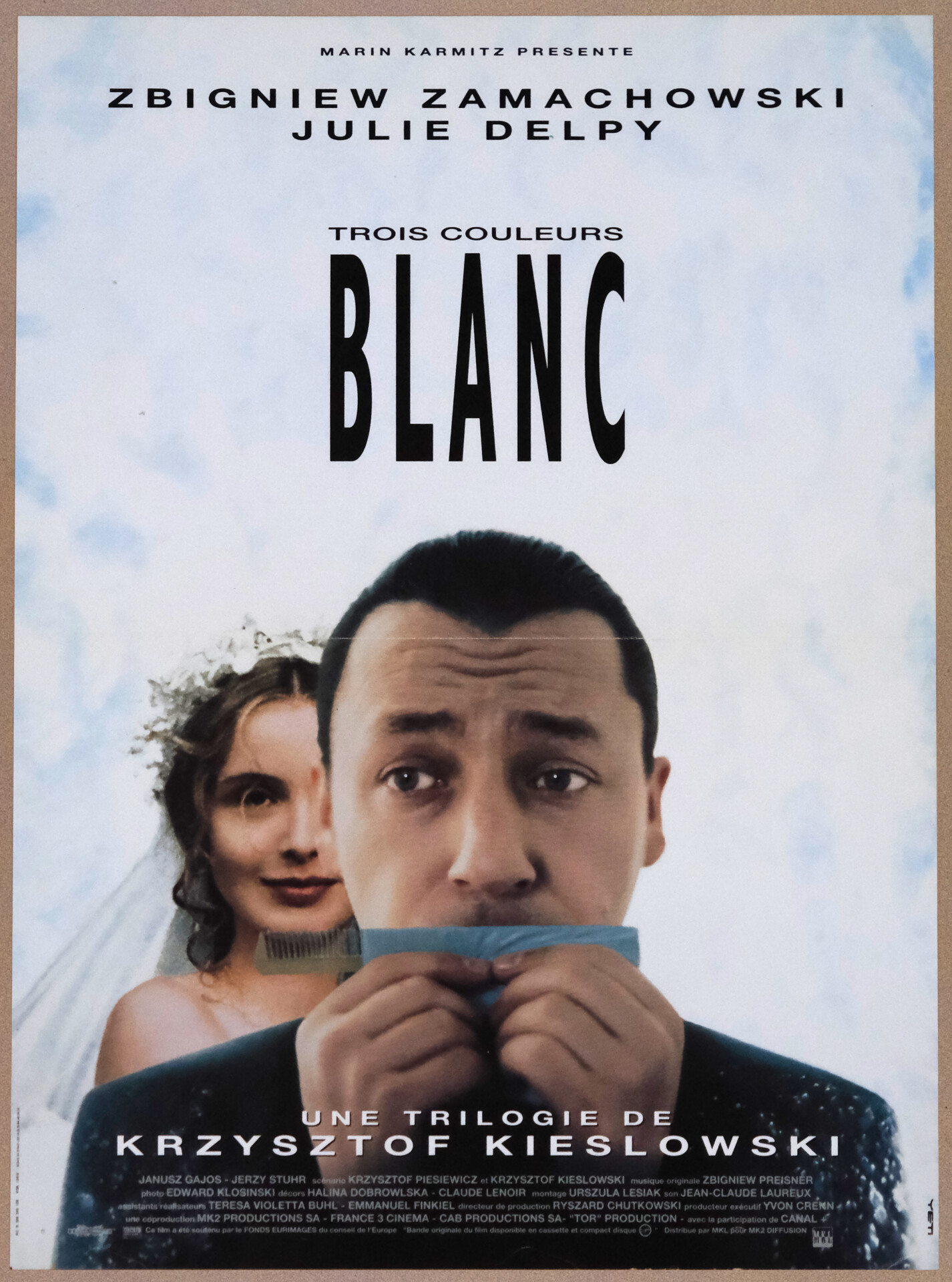 Plakat do filmu fabularnego “Trzy kolory. Biały”.