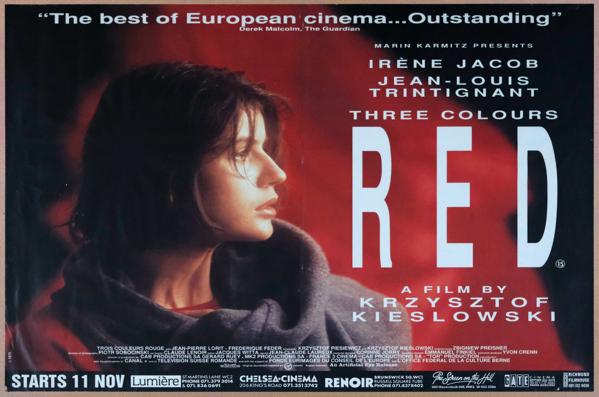 Plakat do filmu fabularnego “Trzy kolory. Czerwony”.