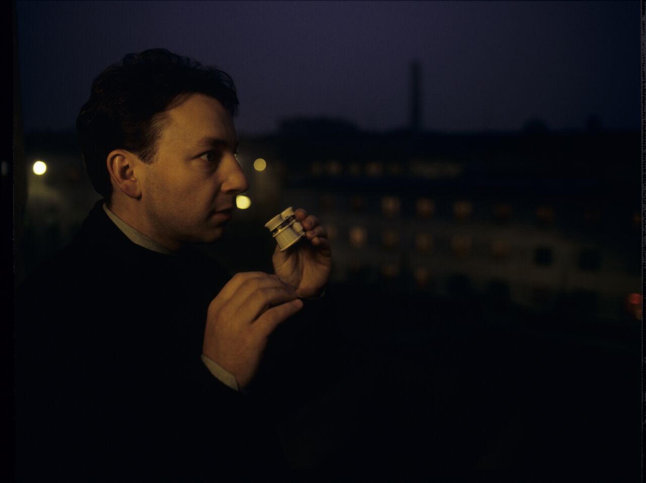 Karol (Zbigniew Zamachowski) obserwuje przez lornetkę widoczną w oknie więzienia sylwetkę swojej byłej żony Dominique.