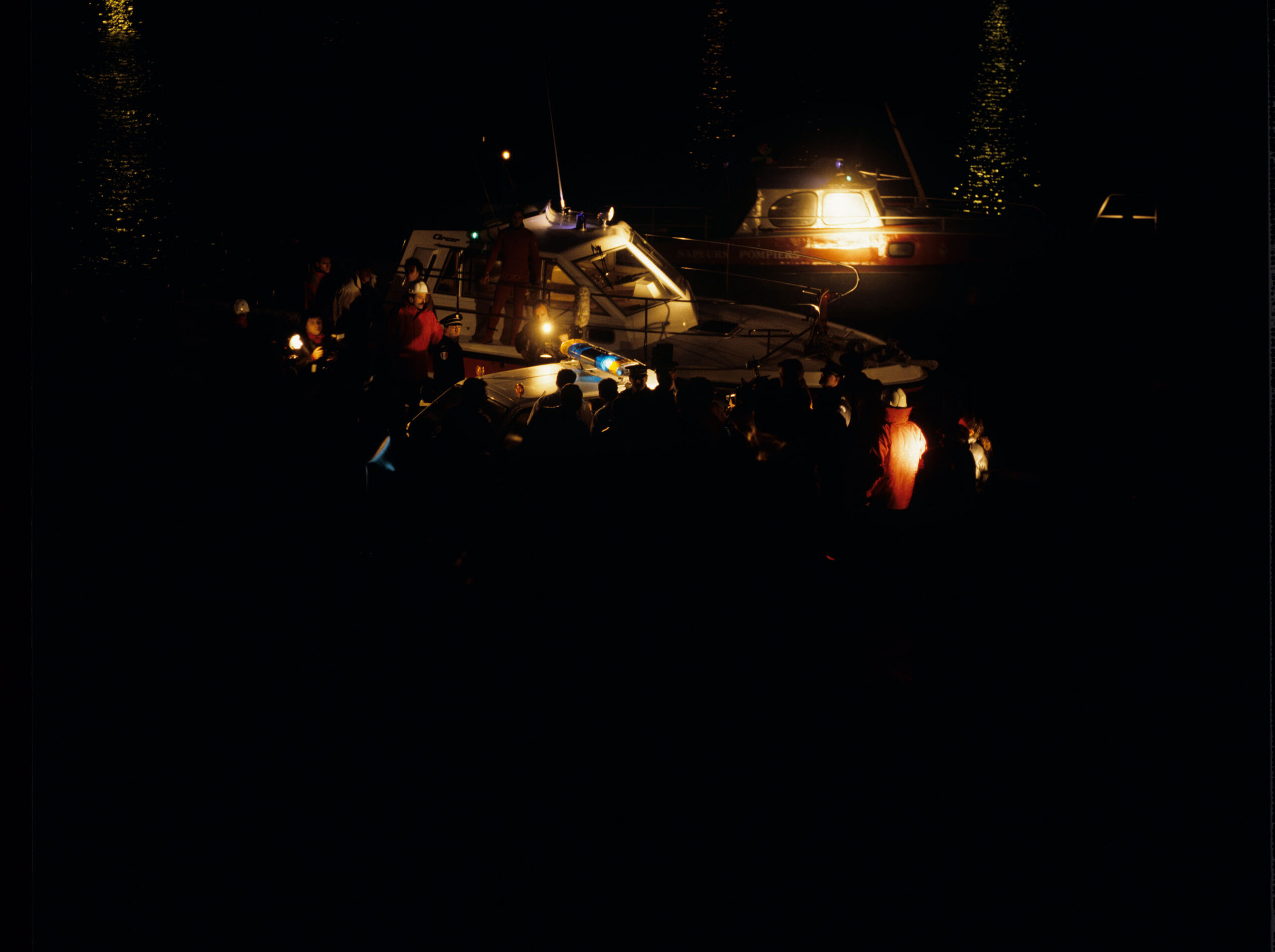 Ekipa na planie filmowym podczas kręcenia sceny akcji ratunkoej po katastrofie promu płynacego do Anglii.