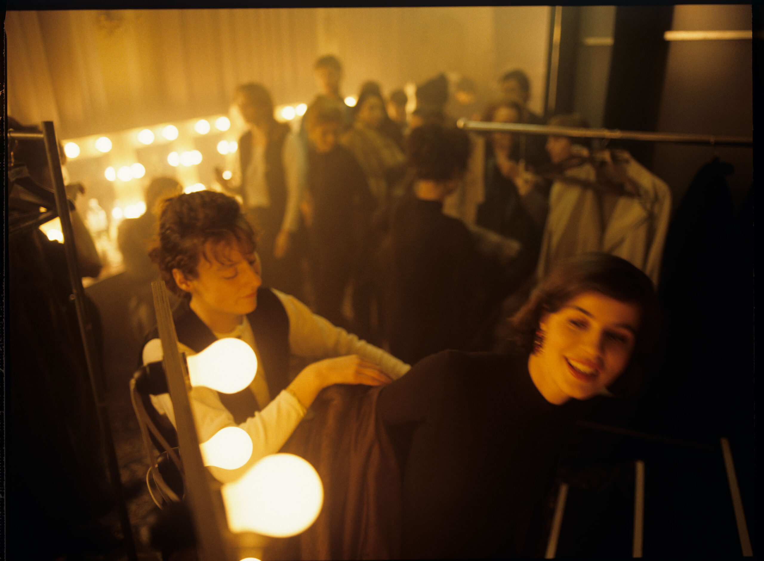 Fotos przedstawiający Valentine (Irene Jacob) przygotowującą się do pokazu mody