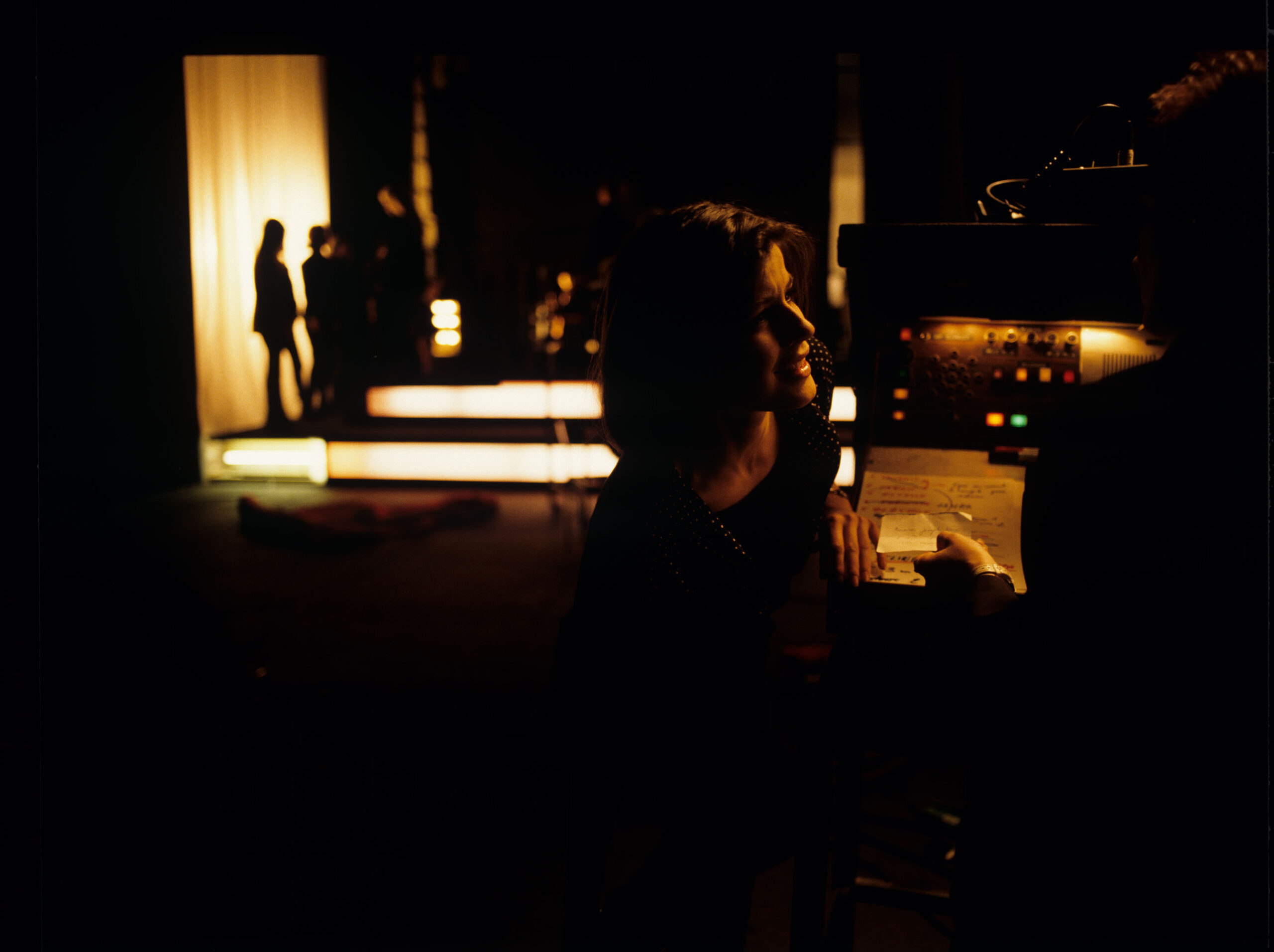 Irene Jacob (aktorka odtwarzająca rolę Valentine) podczas przerwy między zdjęciami w teatrze.