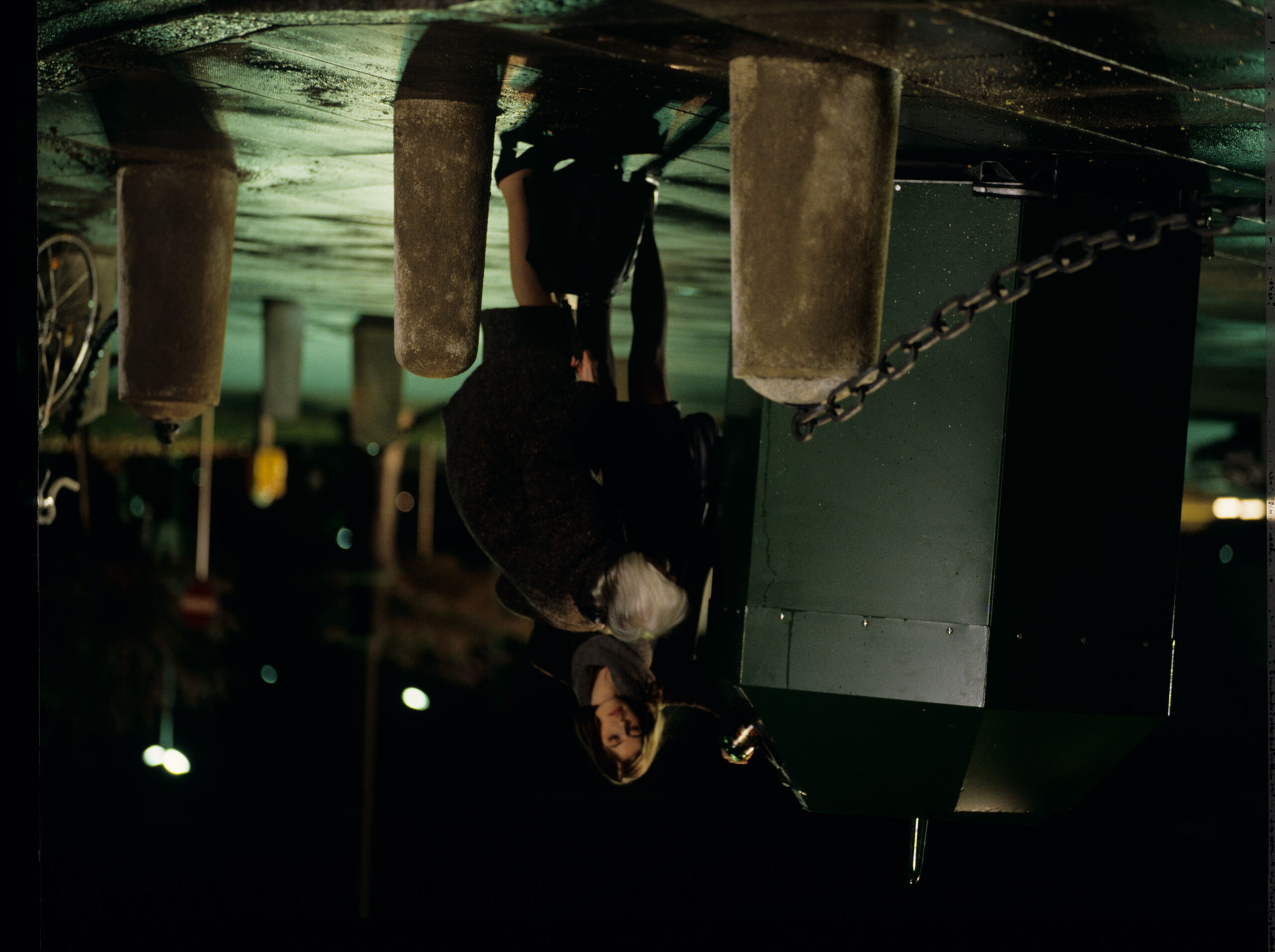 Valentaine (Irene Jacob) pomaga starszej kobiecie wrzucić butelke do pojemnika na surowce wtórne. Podobne sceny wystepują także w pozostałych częściach tryptyku, jednak tylko Valentine nie pozostaje obojętna wobec zmagań kobiety