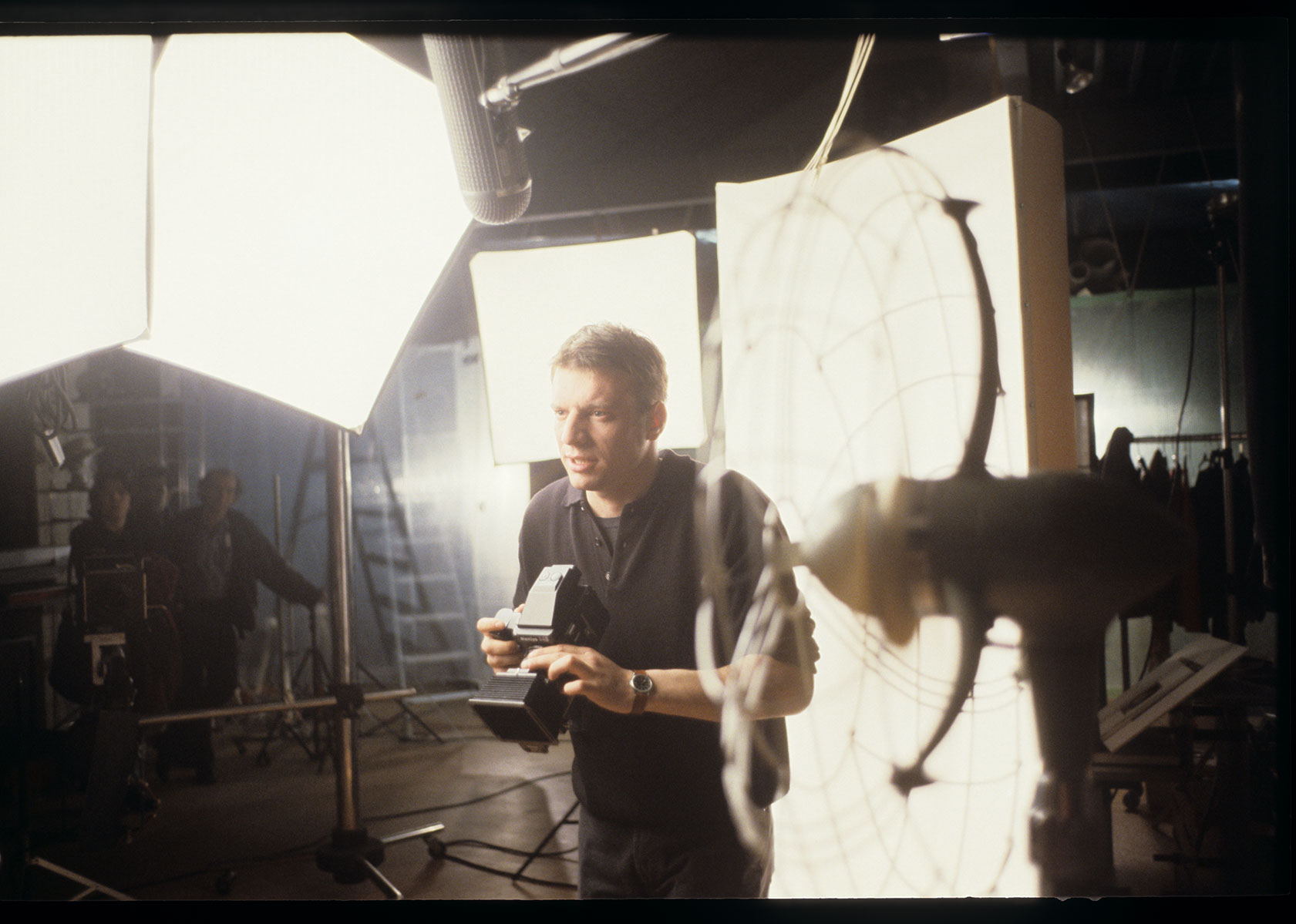 Plan zdjęciowy podczas kręcenia sceny sesji fotograficznej Valentine. Na zdjęciu odtwarzający rolę fotografa Samuel Le Bihan.