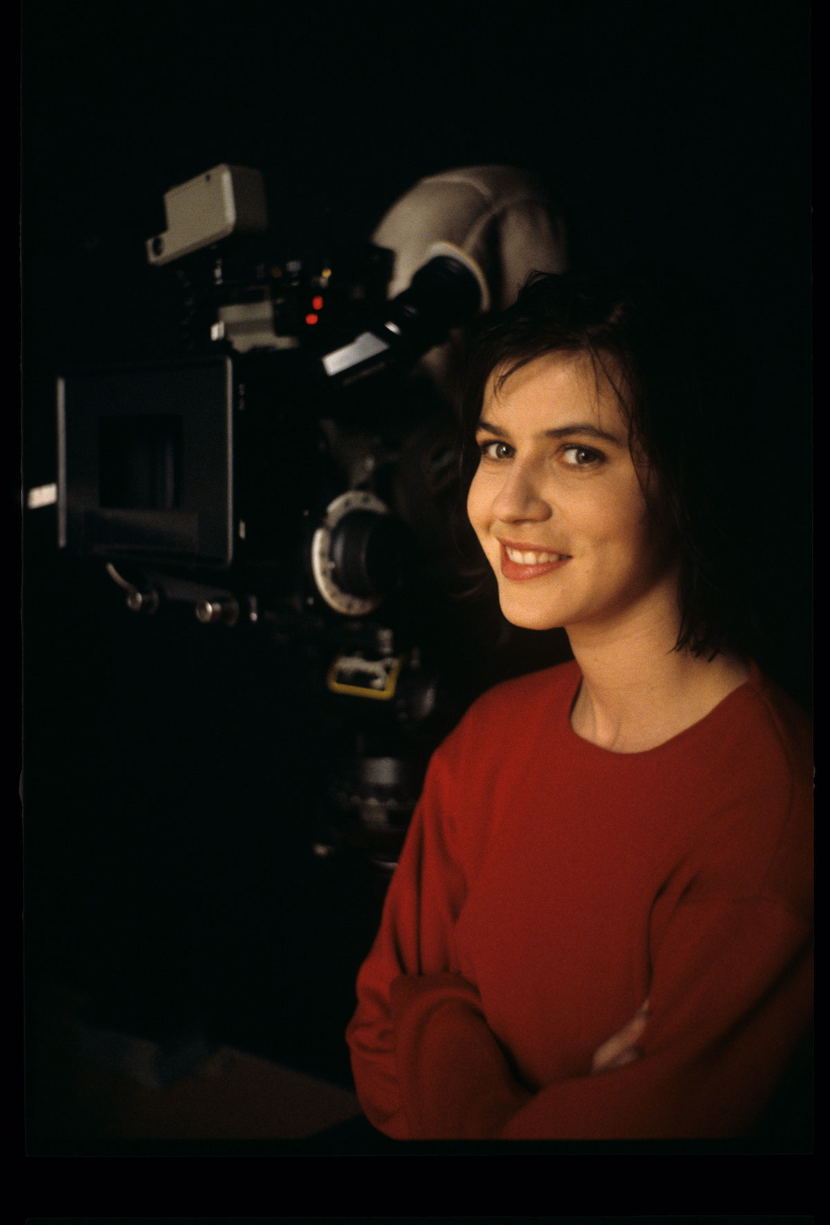 Irene Jacob jako Valentine na planie zdjciowym podczas kręcenia sceny sesji fotograficznej do kampanii reklamowej.