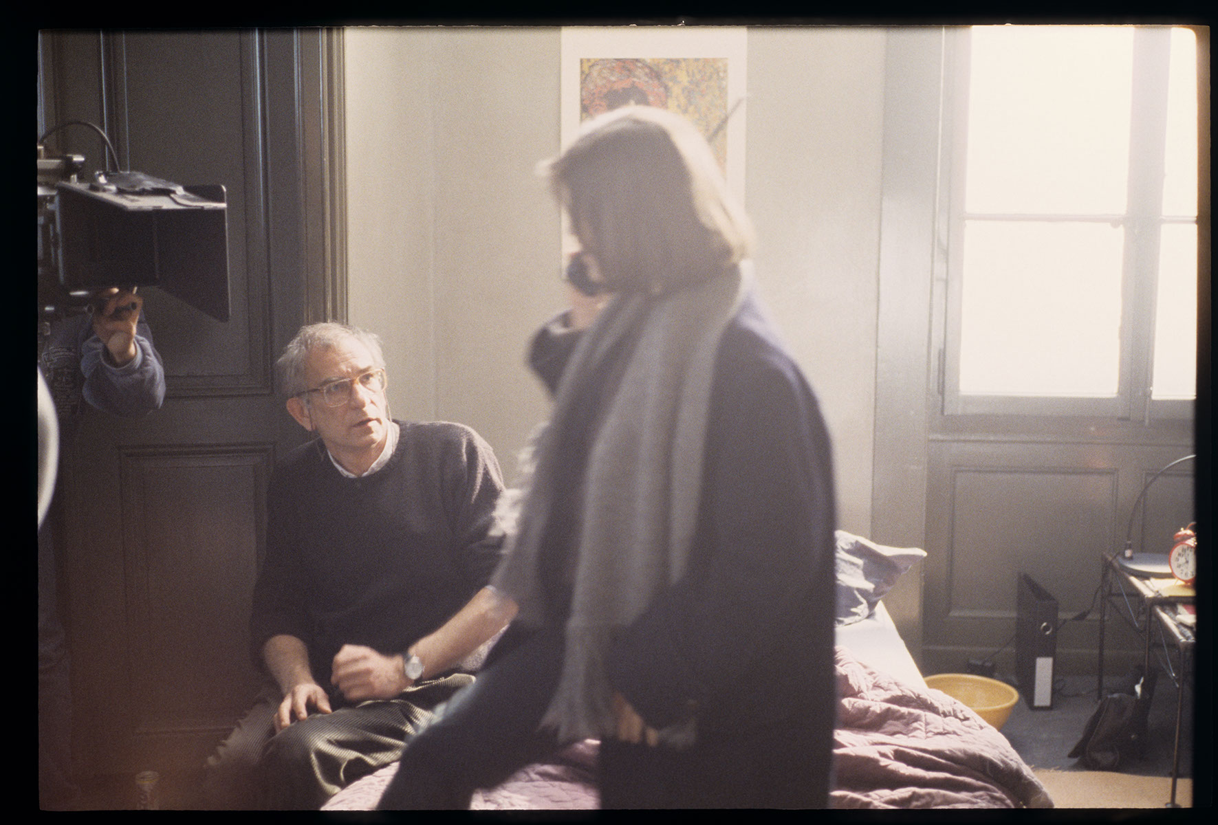 Krzysztof Kieślowski (reżyser) i Irene Jacob (aktorka) na planie zdjęciowym w mieszkaniu Valentine