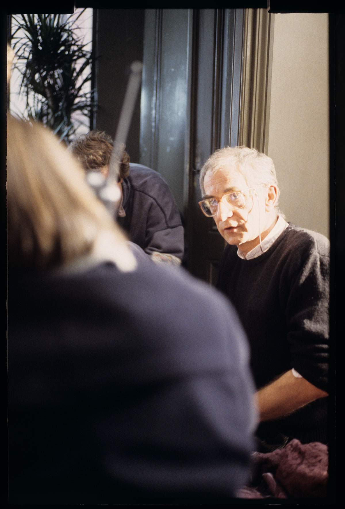 Krzysztof Kieślowski (reżyser) i Irene Jacob (aktorka) na planie zdjęciowym w mieszkaniu Valentine