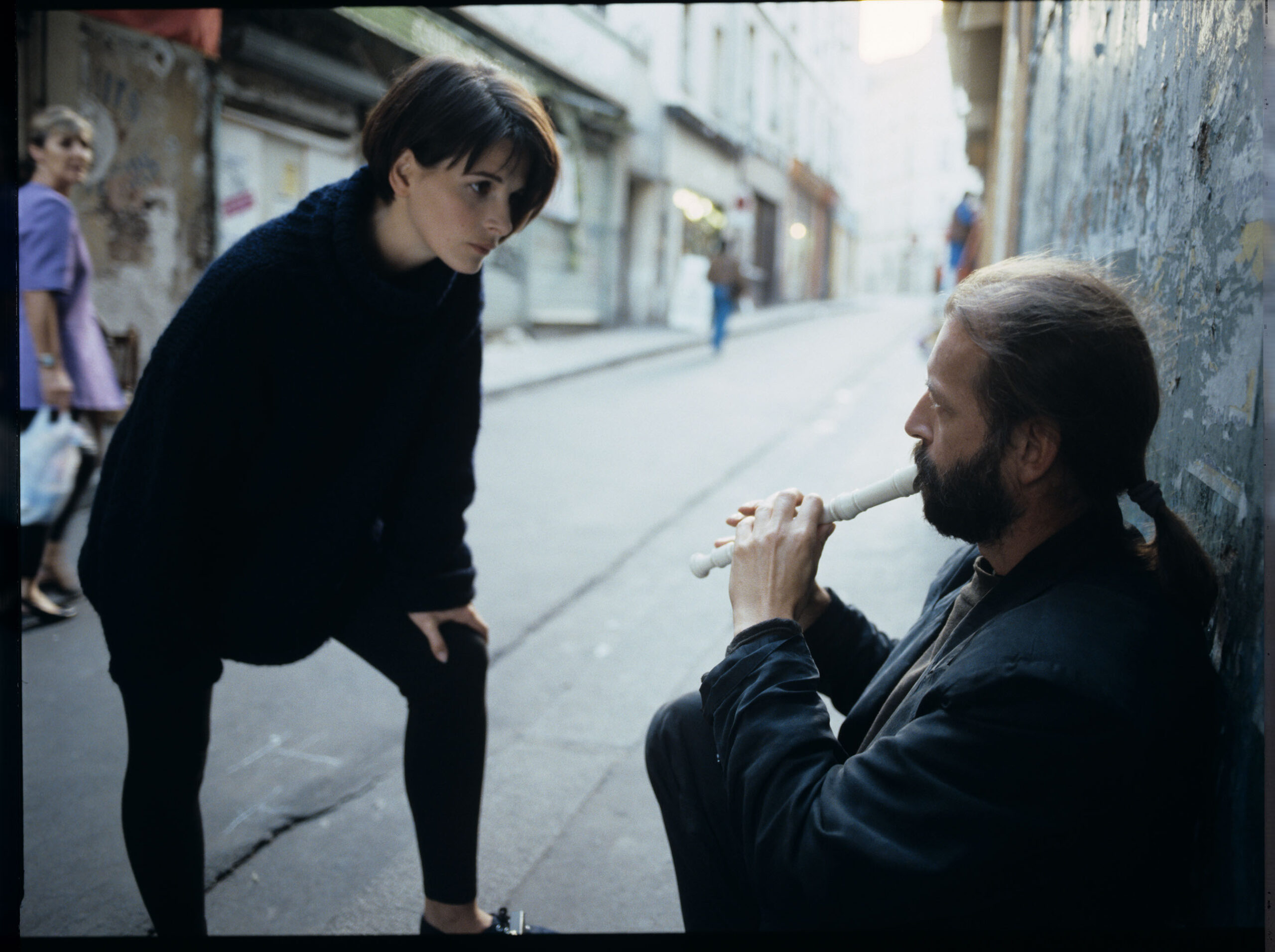 Julie (Juliette Binoche) rozmawia z ulicznym flecistą (w tej roli Jacek Ostaszewski – polski kompozytor i muzyk jazzowy).