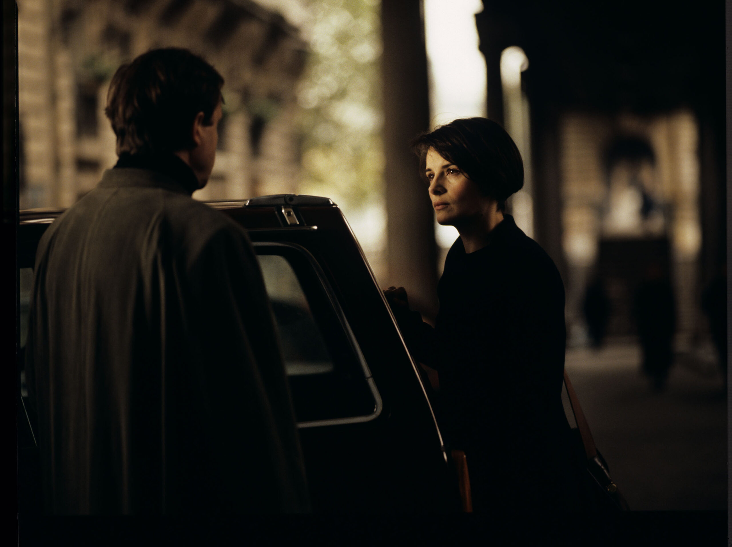 Julie (Juliette Binoche) rozmawia z Olivierem (Benoit Regent) o wywiadzie, jaki Olivier udzielił dziennikarce w programie telewizyjnym oraz o wyrażeniu przez niego chęci dokończenia oratorium muzycznego zmarłego tragicznie męża Julie.