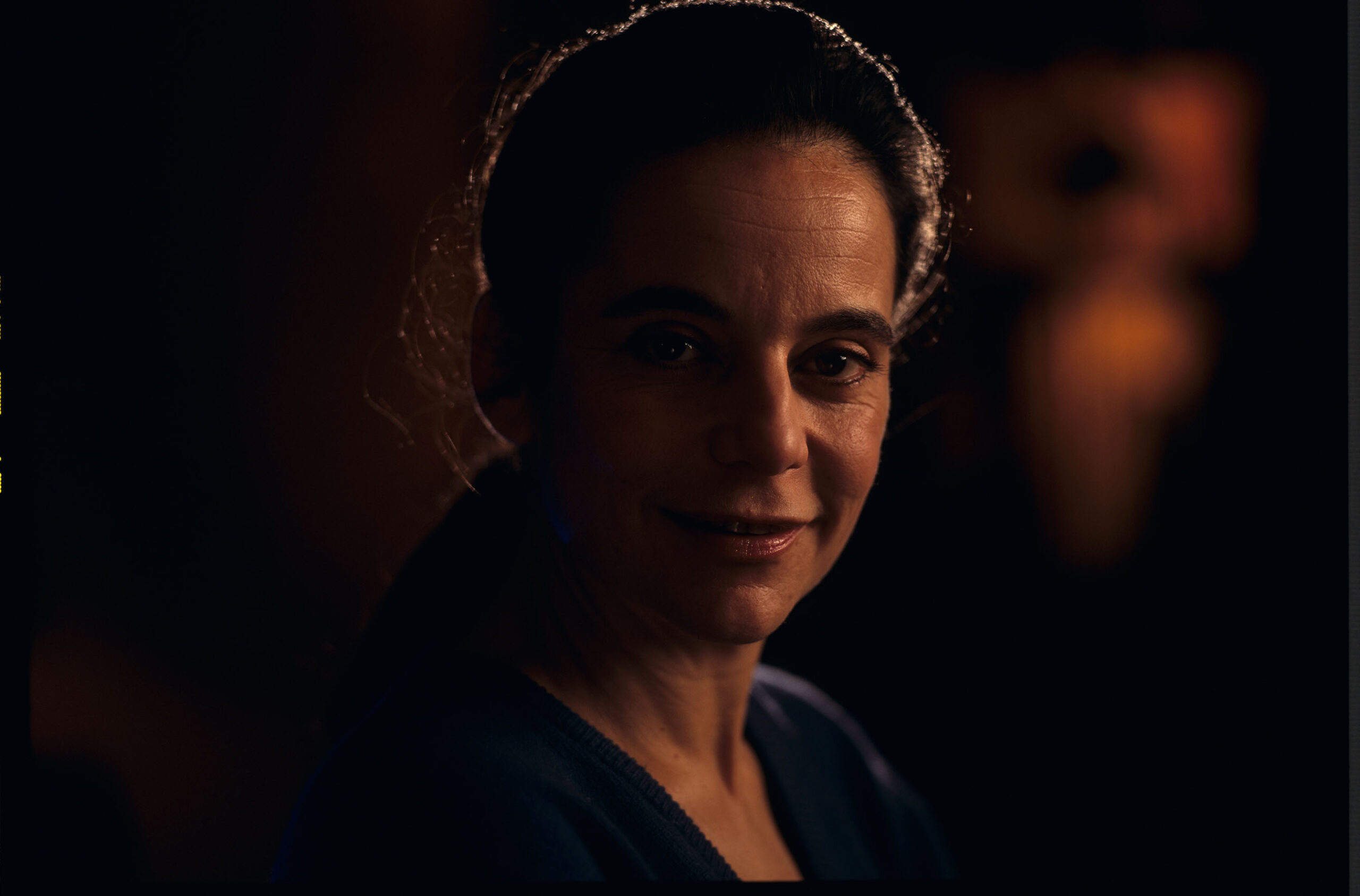 Caroline Eliacheff, żona Marina Karmitza, założyciela studia filmowego MK2 oraz sieci kin studyjnych, producenta trylogii “Trzy kolory”. Zdjęcie wykonane w czasie realizacji filmu “Trzy kolory. Niebieski”.