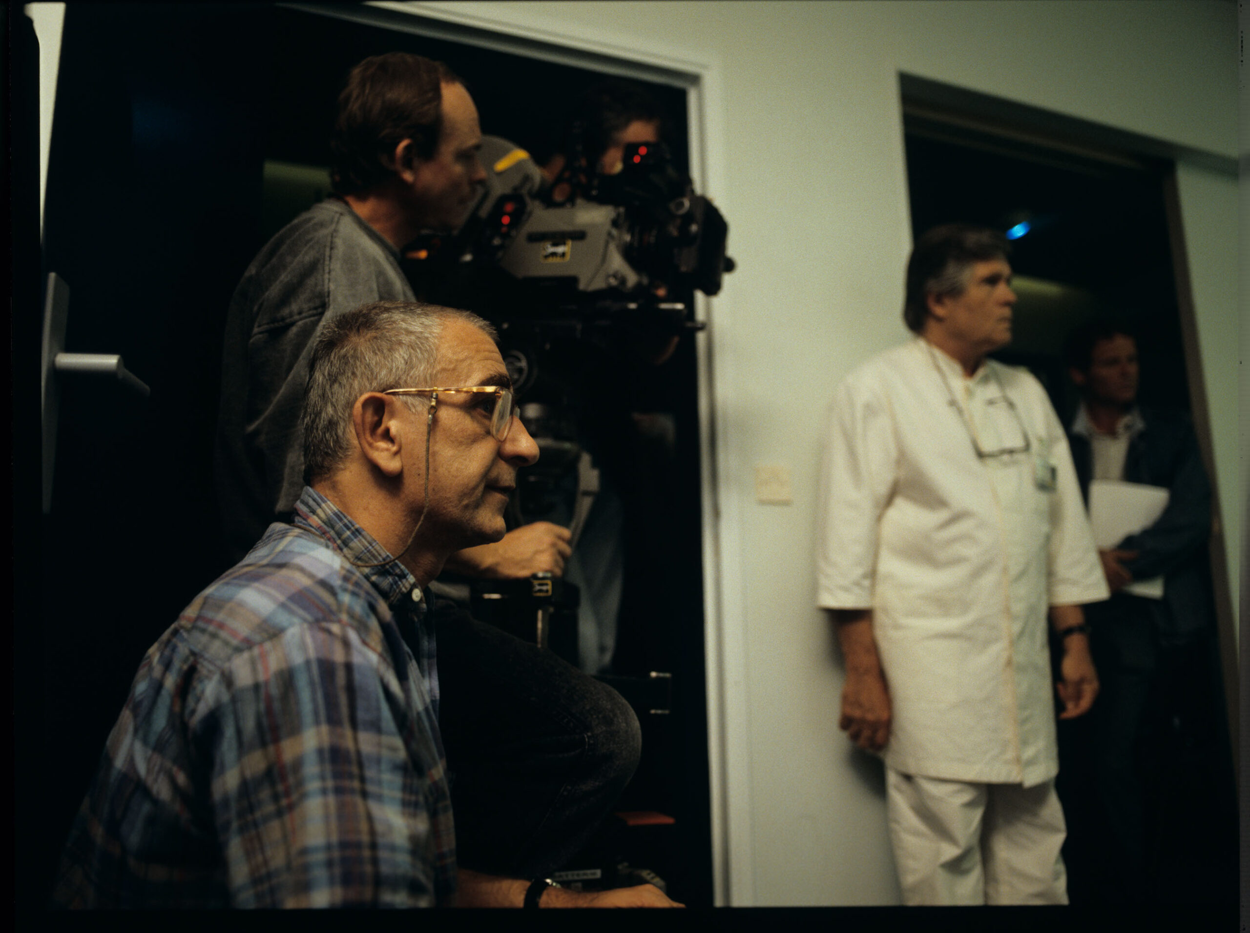 Kręcenie sceny w szpitalu. Na zdjęciu Krzysztof Kieślowski (reżyser), Henryk Jedynak (asystent operatora), Claude Duneton (aktor, odtwórca roli lekarza), Roman Gren (tłumacz).