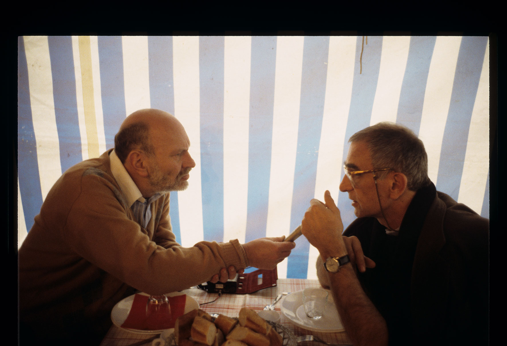 Krzysztof Kieślowski (reżyser) udziela wywiadu dziennikarzowi.
