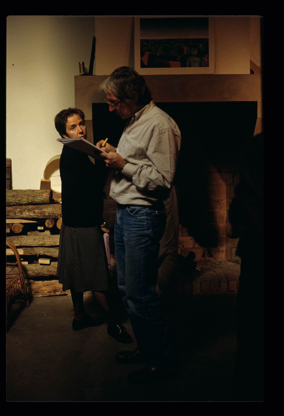 Sekretarka planu Genevieve Dufour i szef ekipy dźwiękowej Jean-Claude Laureux ustalają szczegóły pracy na planie zdjęciowym w mieszkaniu Oliviera.