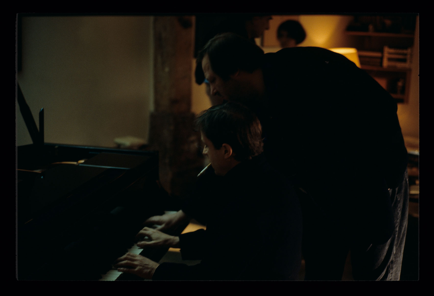 Plan zdjęciowy w mieszkaniu Oliviera. Zbigniew Preisner (kompozytor muzyki do filmu) udziela wskazówek Benoitowi Regentowi (odtwórcy roli Oliviera) grającemu na fortepianie.
