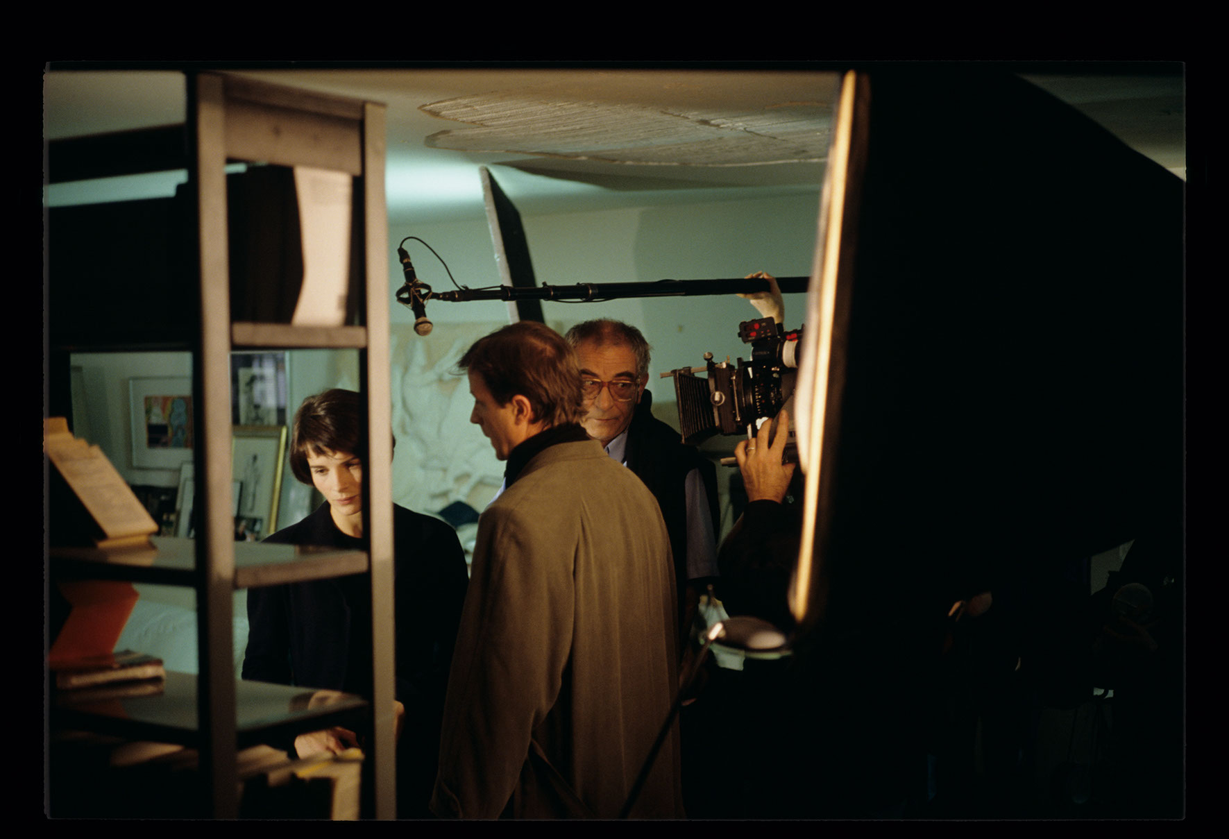 Nagrywanie sceny rozmowy Julie i Oliviera. Na zdjęciu aktorzy Juliette Binoche i Benoit Regent oraz reżyser Krzysztof Kieślowski.