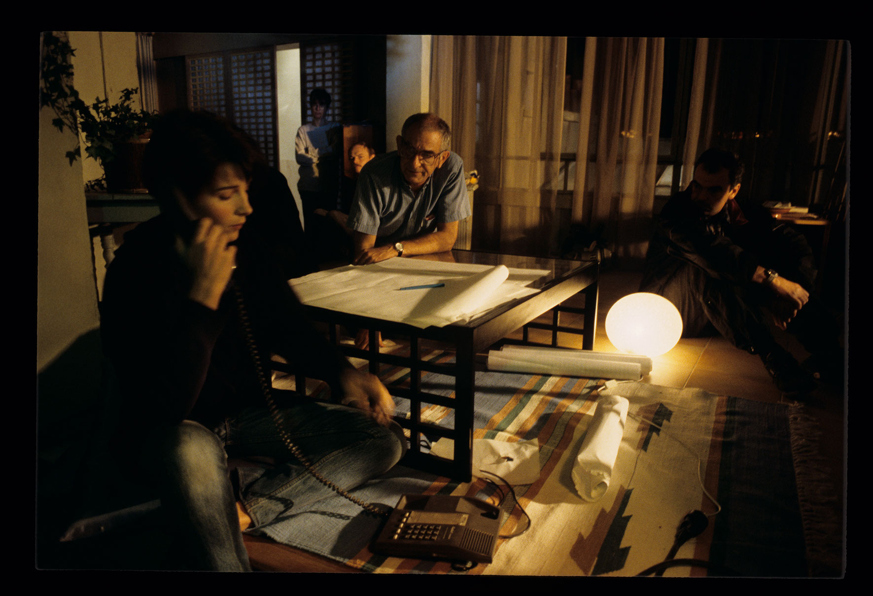 Kręcenie sceny ukończenia przez Julie kompozycji jej zmarłego tragicznie męża na koncert z okazji zjednoczenia Europy. Na zdjęciu aktorka Juliette Binoche (jako Julie), Krzysztof Kieślowski (reżyser), Zbigniew Preisner (kompozytor muzyki do filmu), Genevieve Dufour (sekretarka planu), Henryk Jedynak (współpraca operatorska).