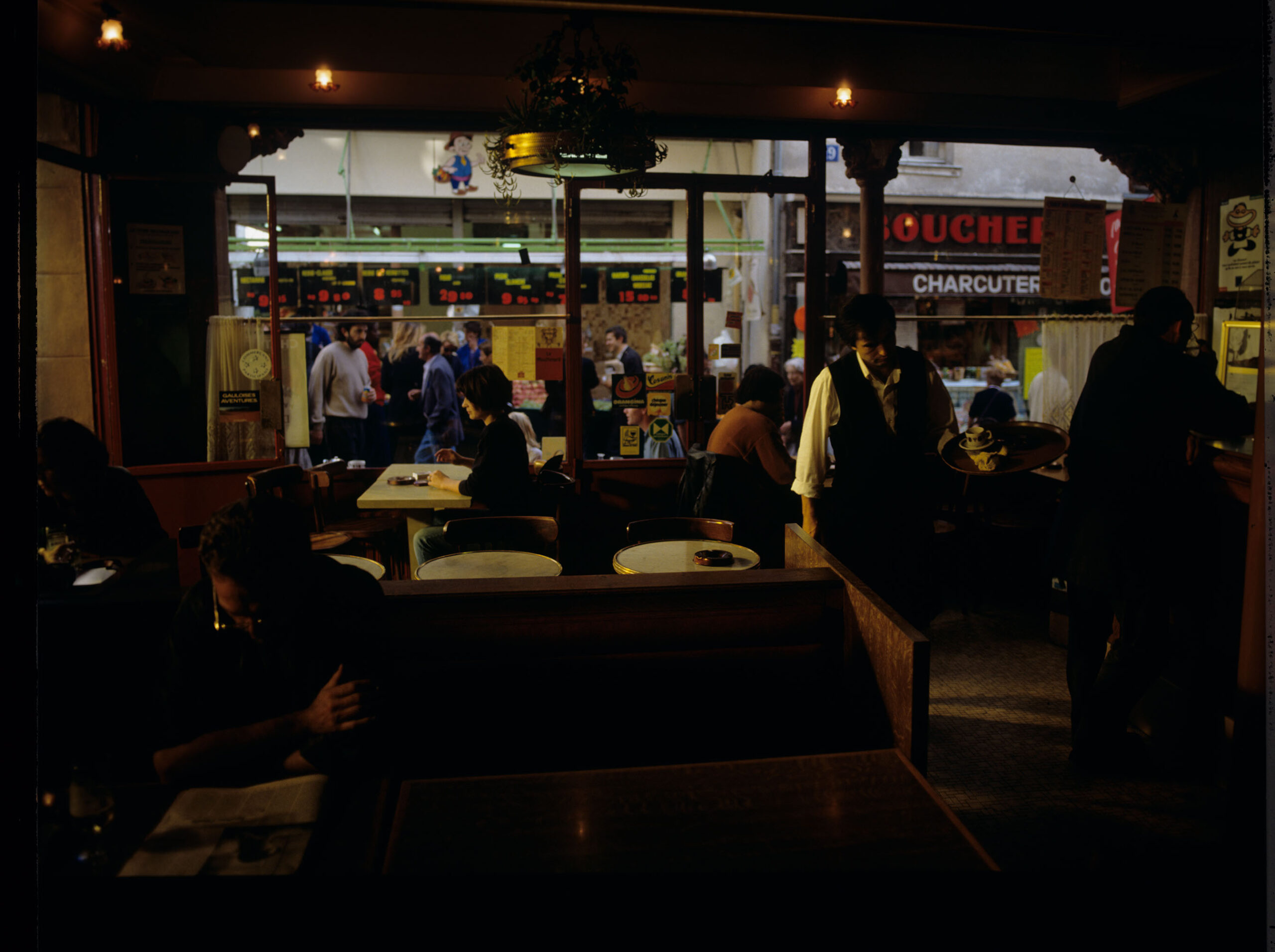 Julie (Juliette Binoche) w kawiarni, w której pojawia się codziennie, odkąd przeprowadziła się do Paryża.