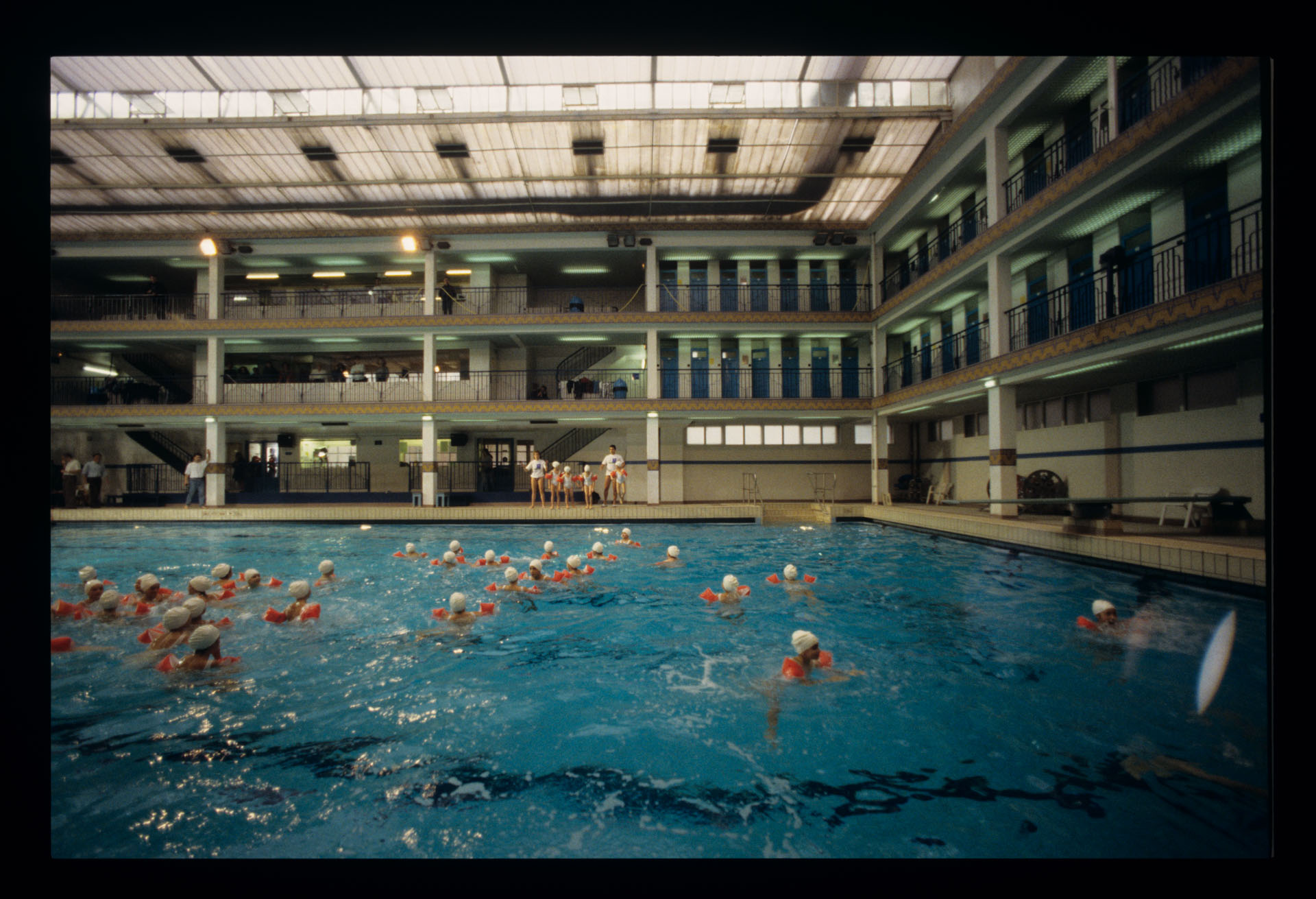 Grupa dzieci na basenie Piscine Pontoise w Paryżu, gdzie Julie, główna bohaterka filmu, systematycznie pływa.