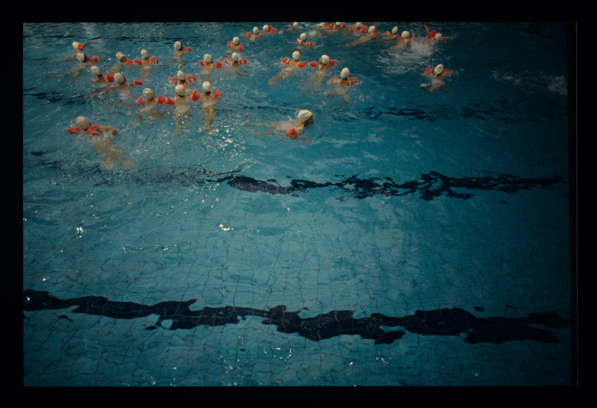 Grupa dzieci na basenie Piscine Pontoise w Paryżu, gdzie Julie, główna bohaterka filmu, systematycznie pływa.