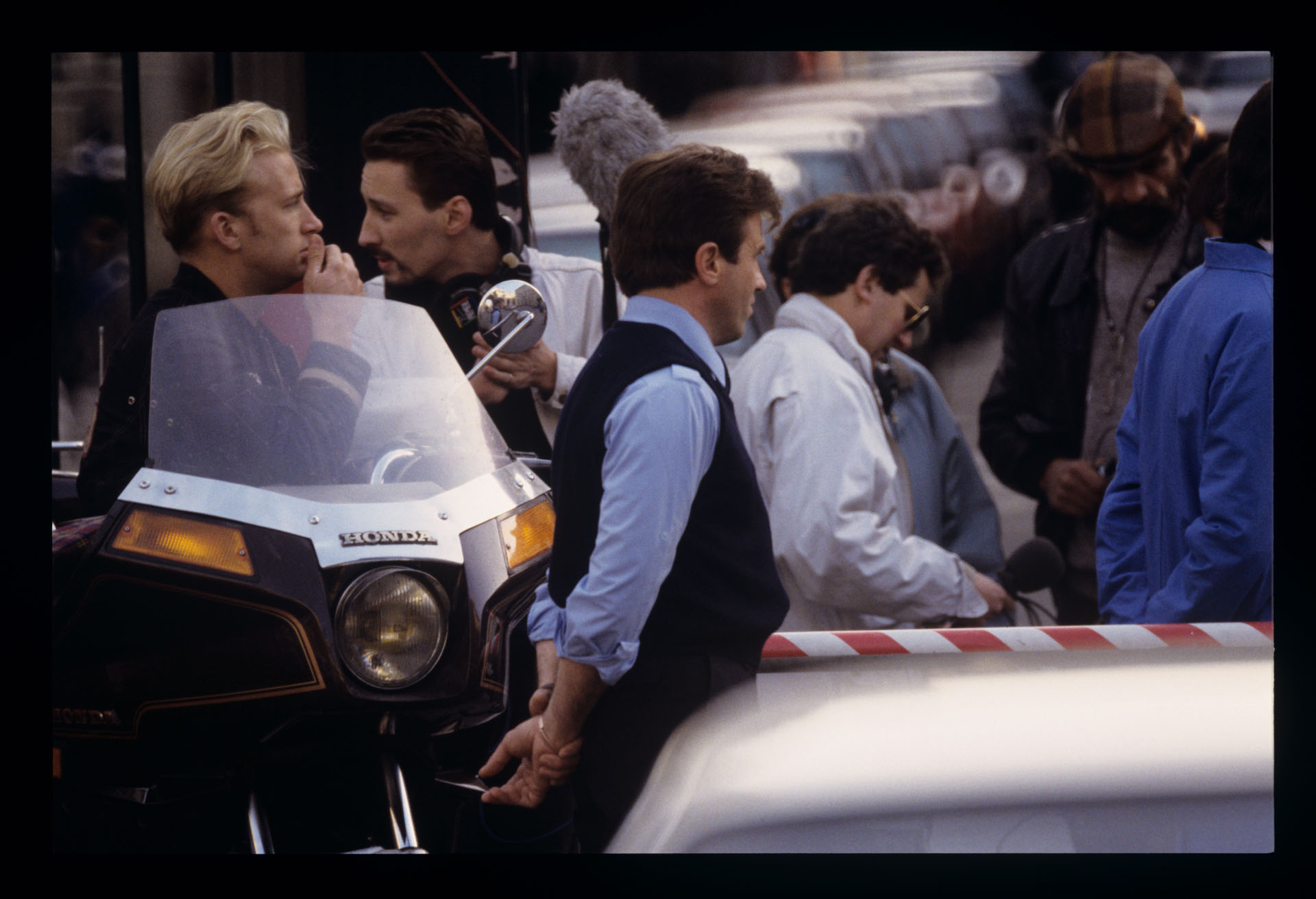 Grupa dziennikarzy oczekujących na rozmowę z reżyserem Krzysztofem Kieślowskim.