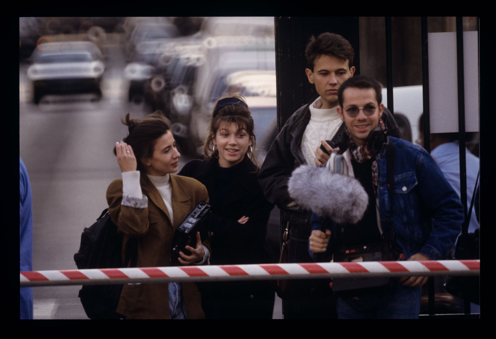 Grupa dziennikarzy oczekujących na rozmowę z reżyserem Krzysztofem Kieślowskim.