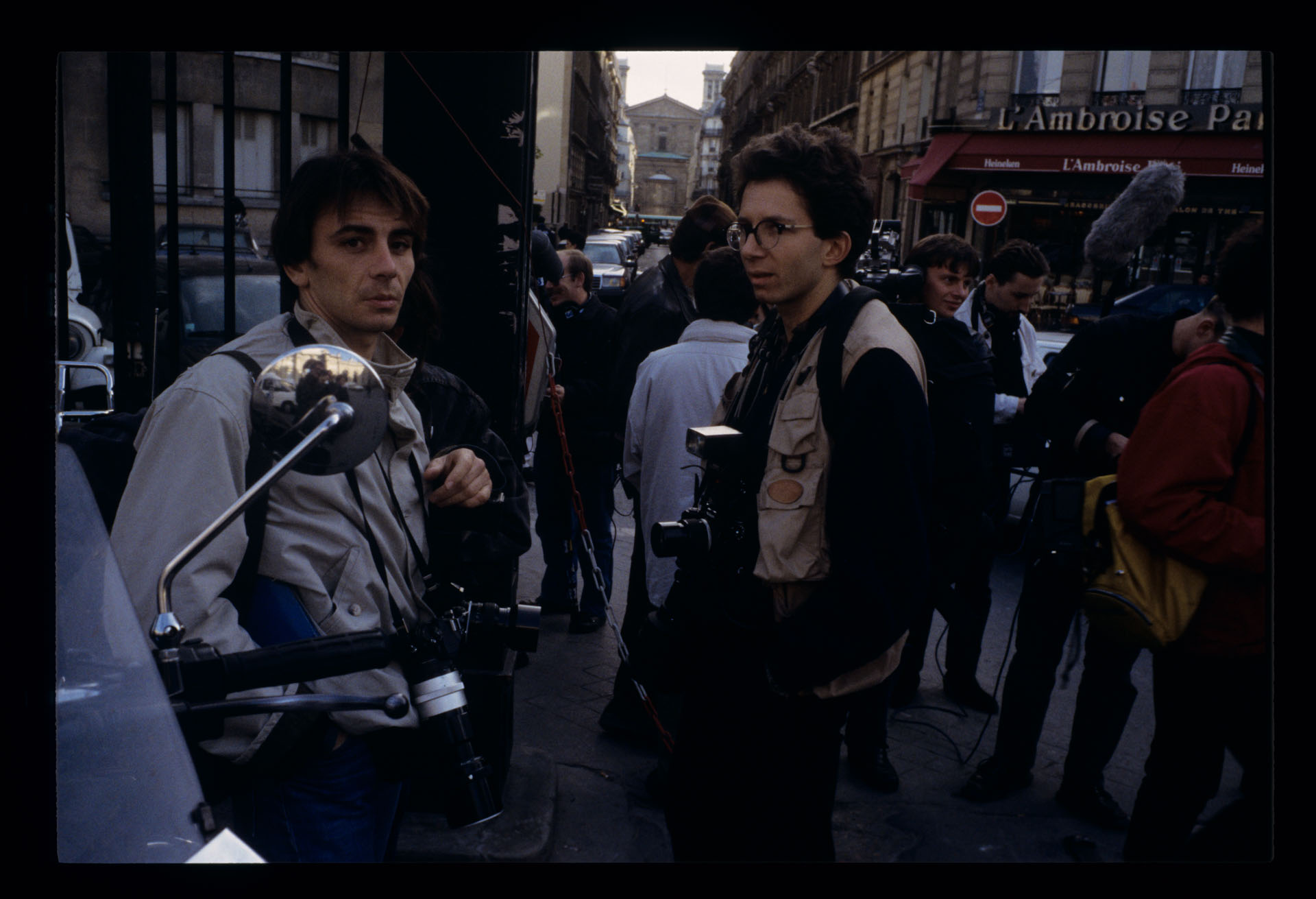 Grupa dziennikarzy oczekujących na rozmowę z reżyserem Krzysztofem Kieślowskim.
