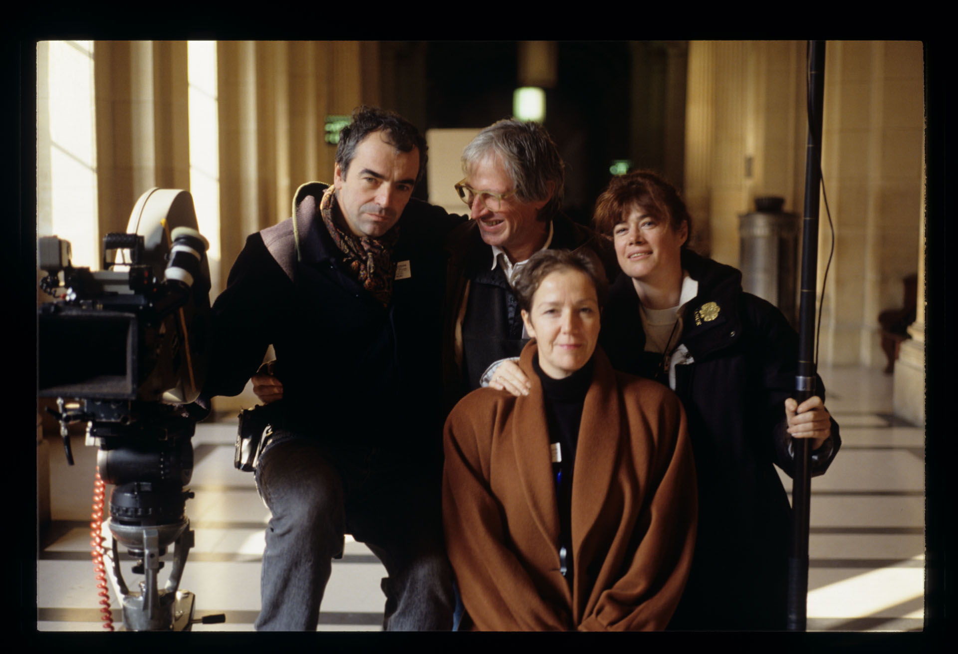 Sławomir Idziak (operator), Jean-Claude Laureux i Brigitte Taillandier (dźwiękowcy) oraz sekretarka planu Genevieve Dufour w gmachu paryskiego sądu