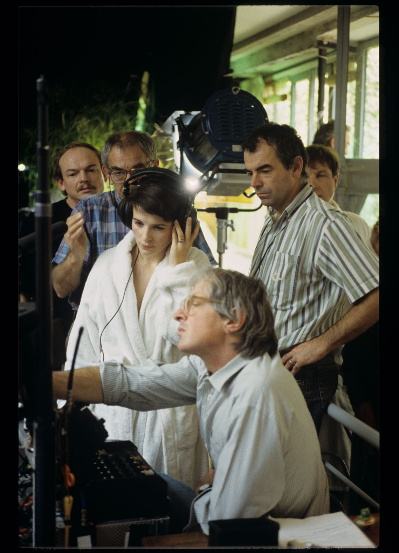 Juliette Binoche (odtwórczyni roli Julie), Krzysztof Kieślowski (reżyser), Slawomir Idziak (operator), Henryk Jedynak (asystent operatora) oraz Jean-Claude Laureux (edytor dźwięku) analizują wcześniej nakręconą scenę.