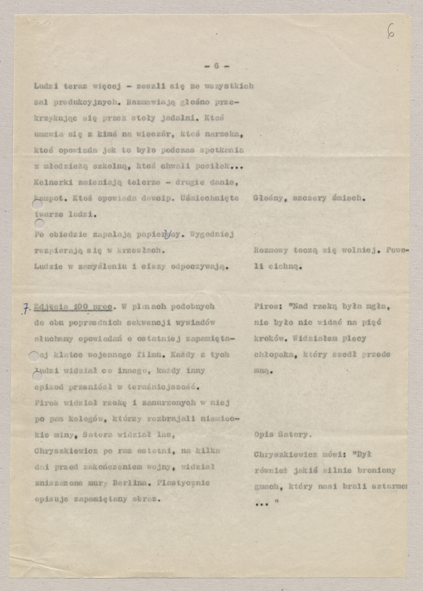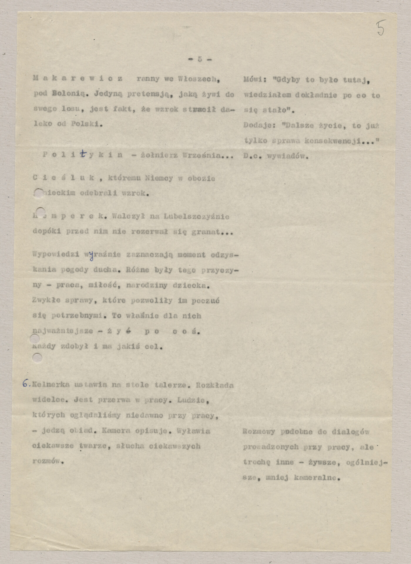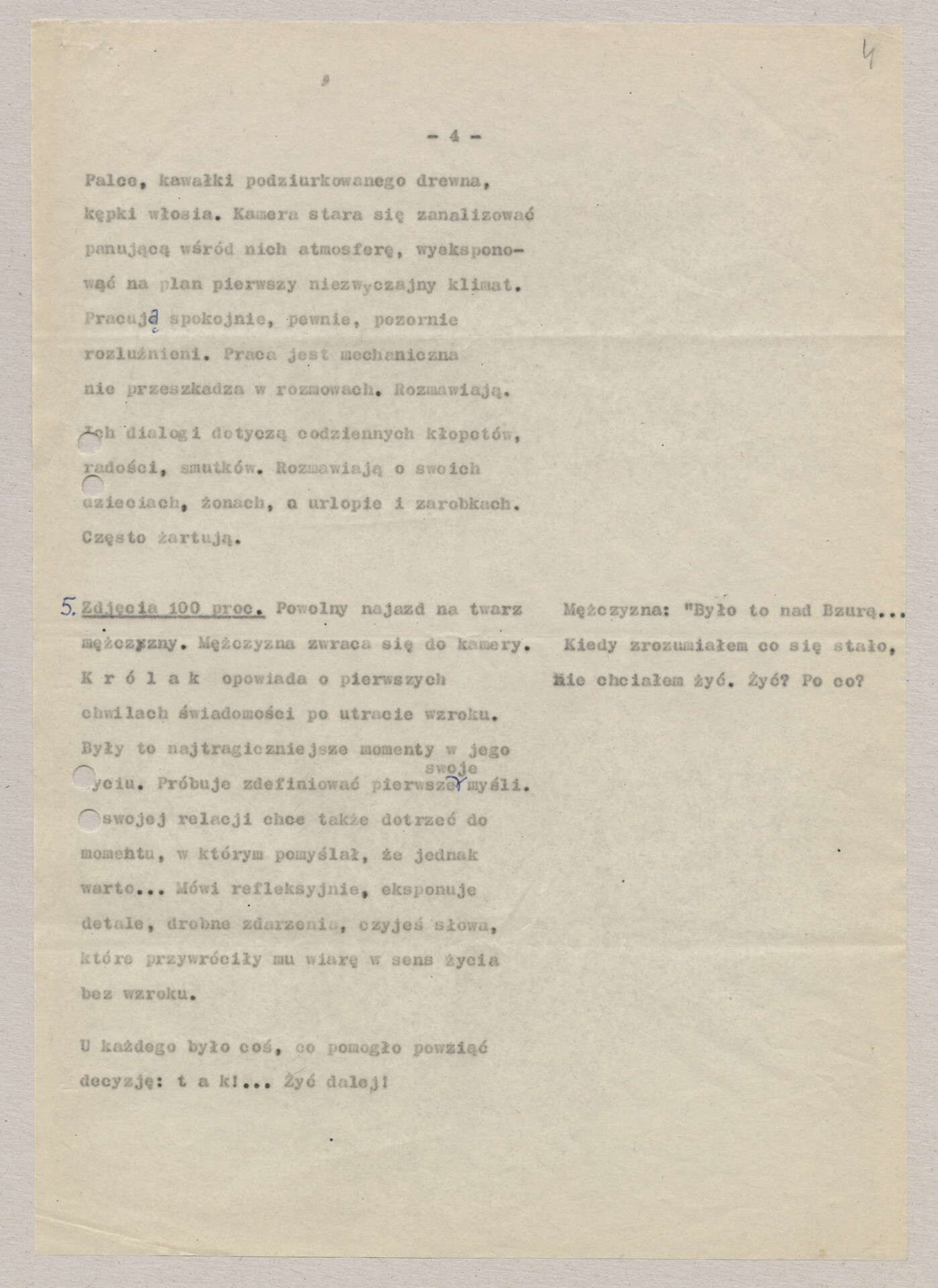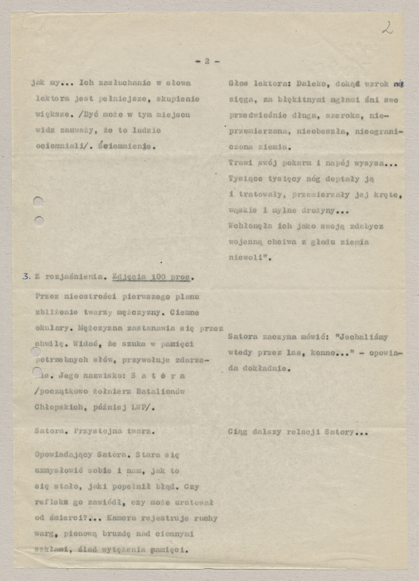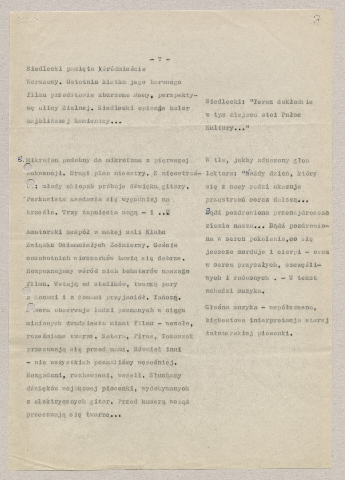 A typescript copy with the script for Krzysztof Kieślowski’s film “I was a soldier” (1970). Before the film had this title, the work was carried out under the working titles “One world for all” and “The Blind”. The film was made together with Andrzej Titkow, a colleague of the director from the Film School in Łódź. Production took place outside the parent Documentary Film Studio, at the “Czołówka” Film Studio. Hand-signed document.