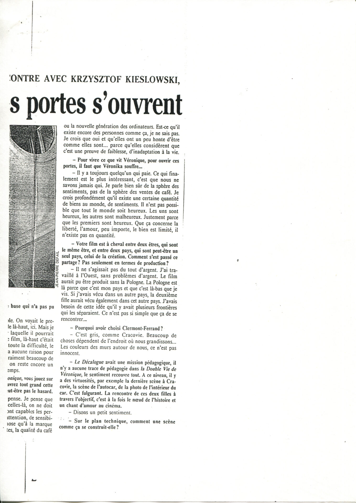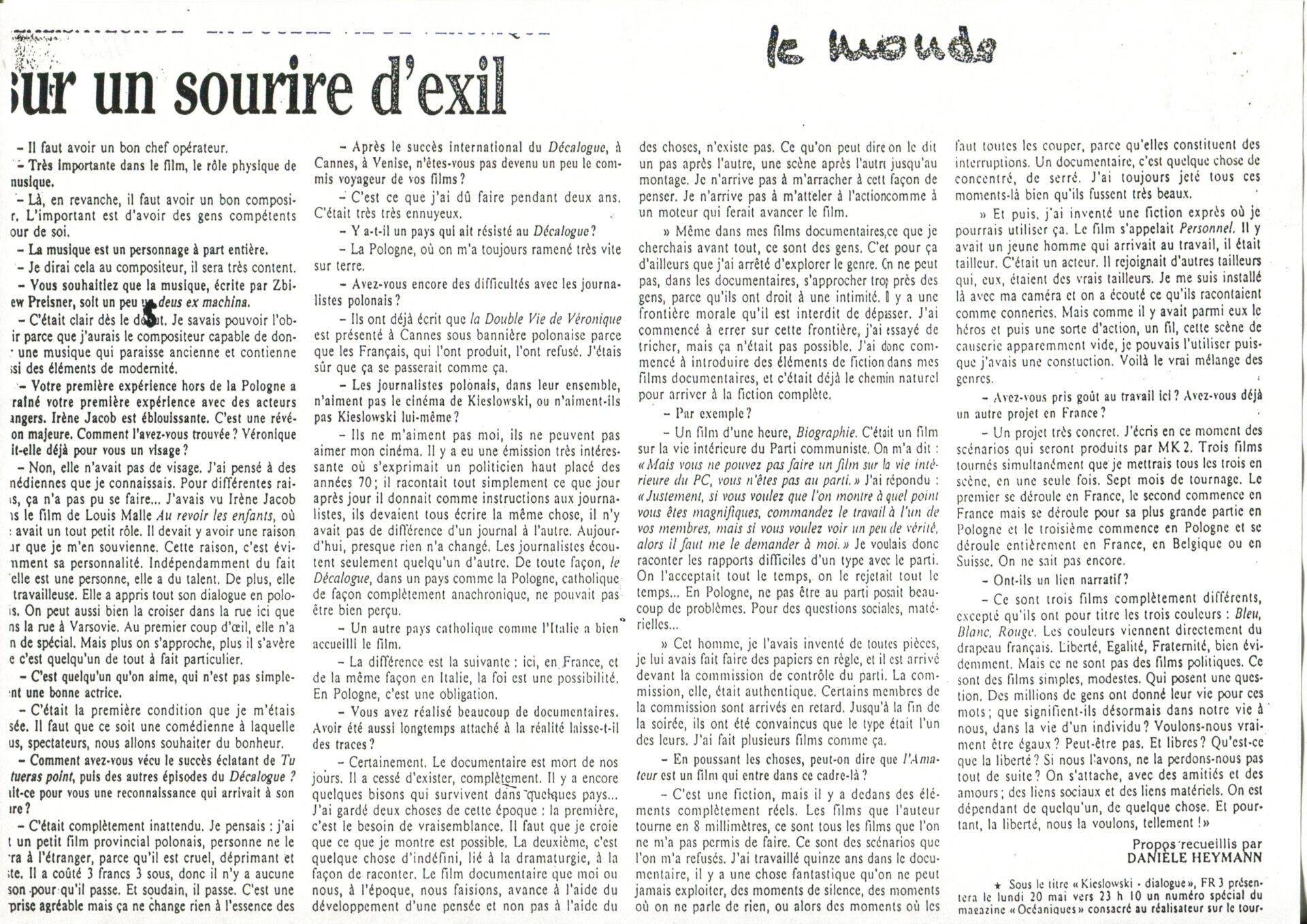 Press article from the French newspaper “Le Monde” entitled “Les portes s’ouvrent sur un sourire d’exil”.