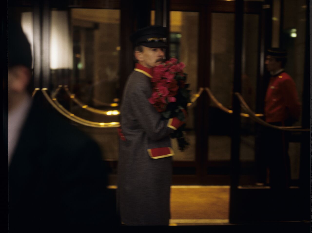 Karol (Zbigniew Zamachowski) runs out of the hotel, leaving a bouquet of flowers for the porter. The scene did not appear in the film.