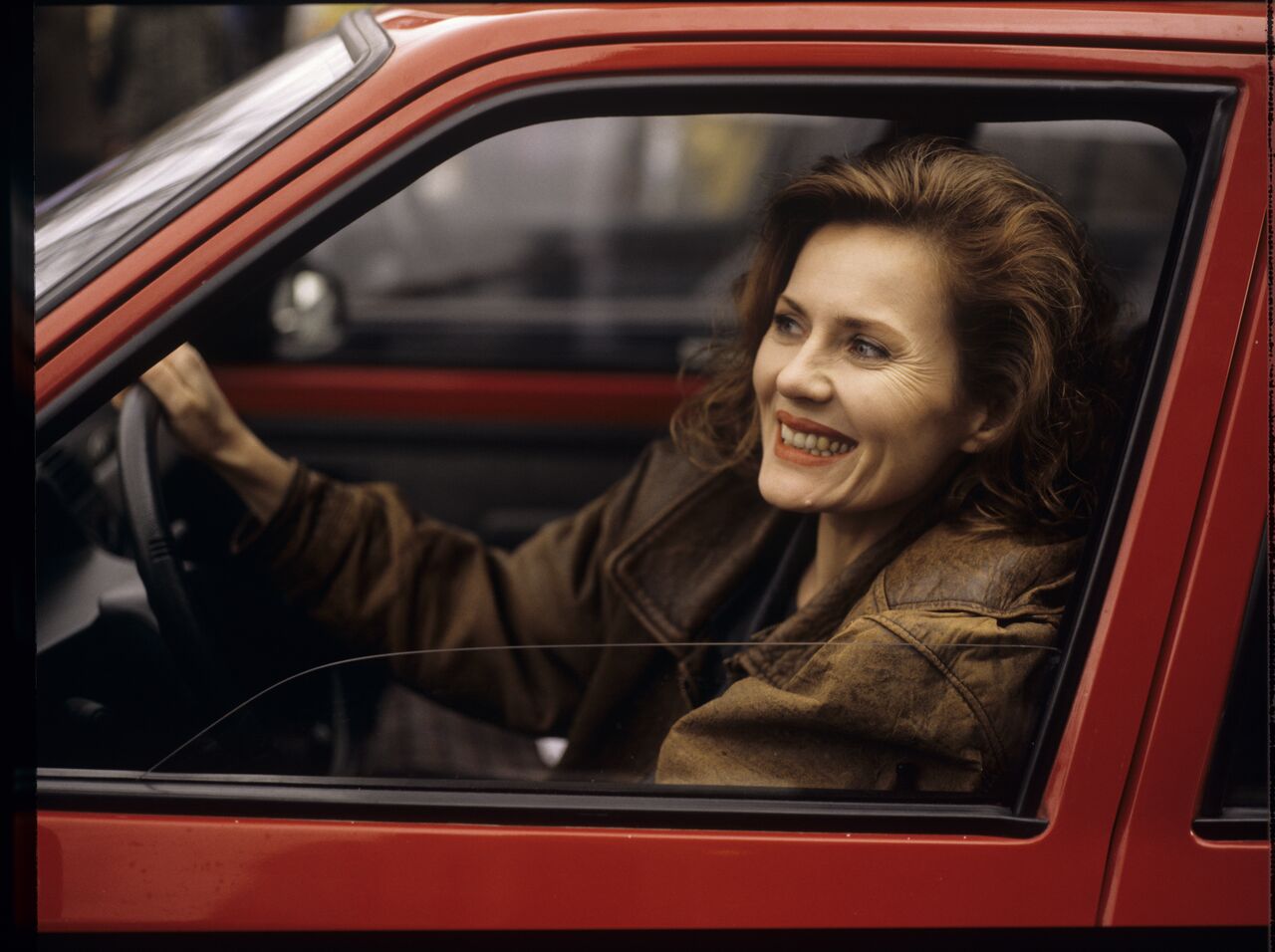 “Blonde” (Grażyna Szapołowska) in the car that Karol stopped. The scene did not appear in the movie.