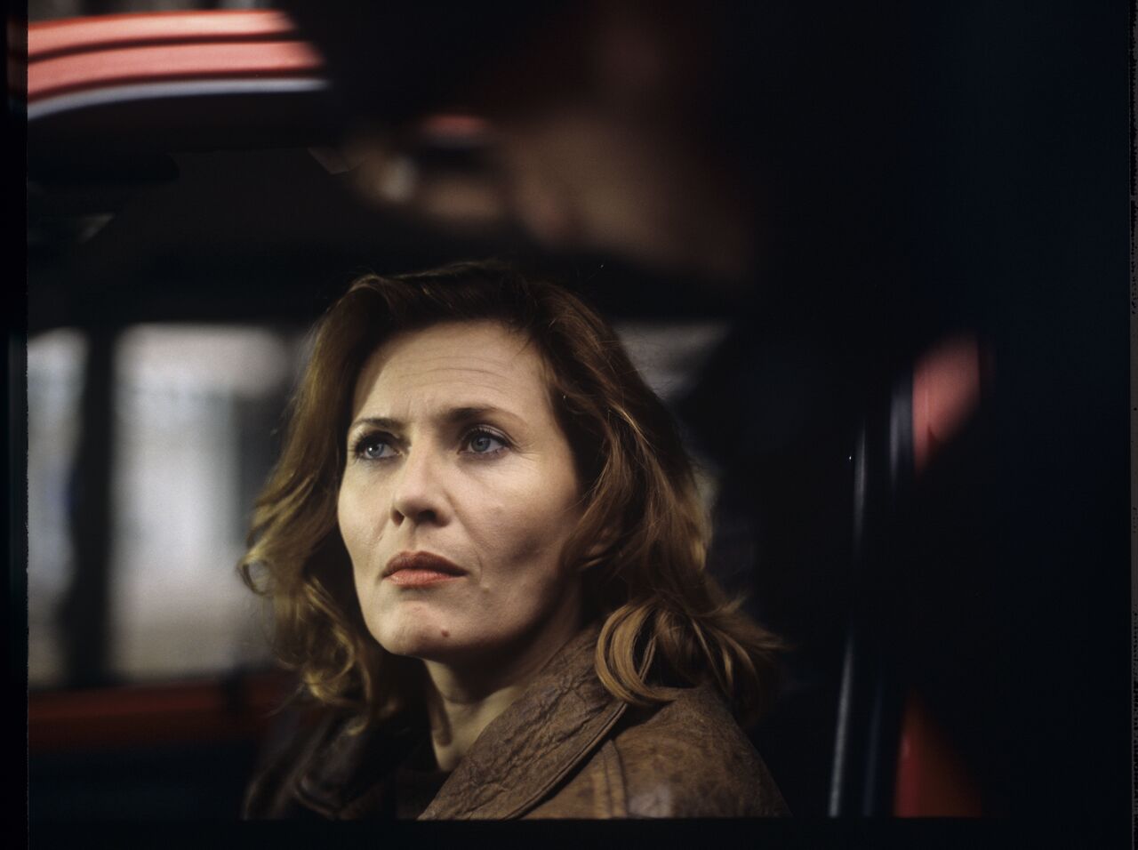 “Blonde” (Grażyna Szapołowska) in the car that Karol stopped. The scene did not appear in the movie.